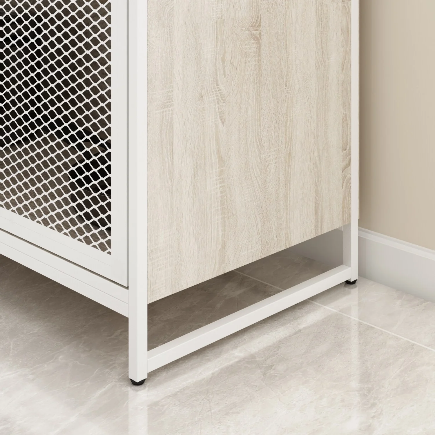 White and Natural Wood 2-Door Wine Cabinet - 30.9" H x 18.9" W x 13" D