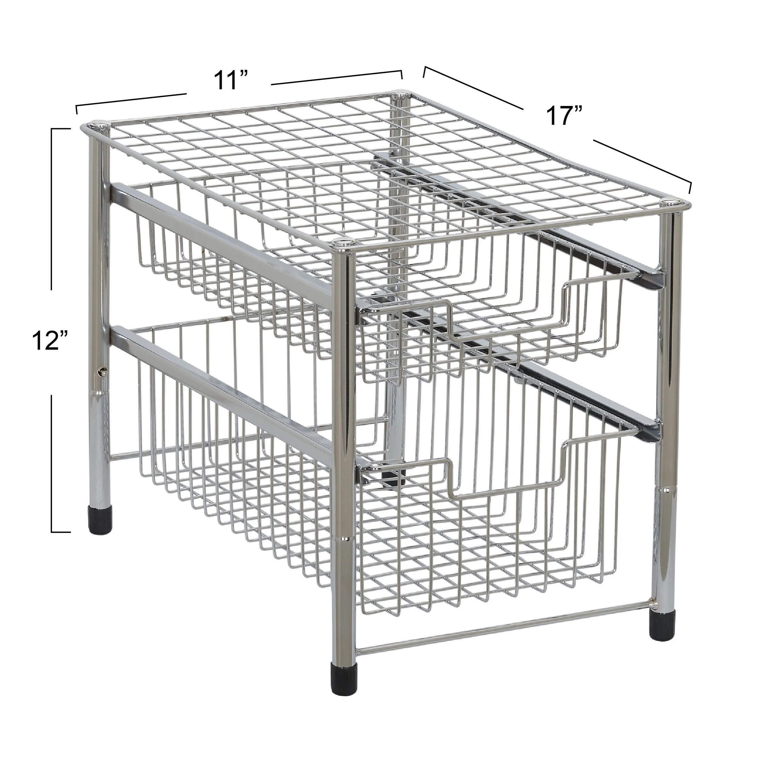 Household Essentials Silver Free Standing Double Pull Out Cabinet Organizer Shelf