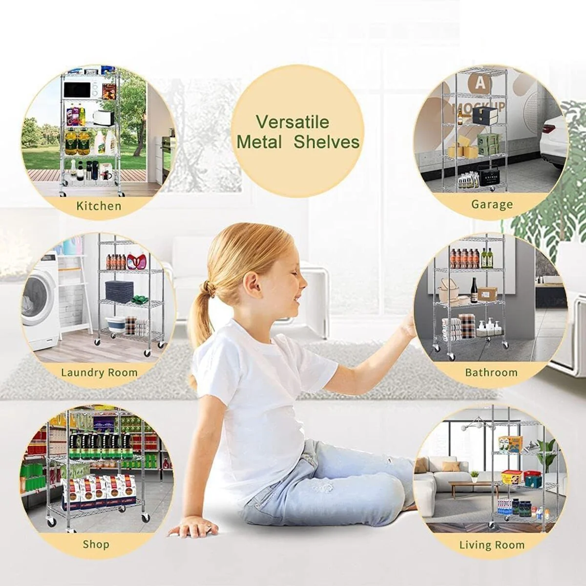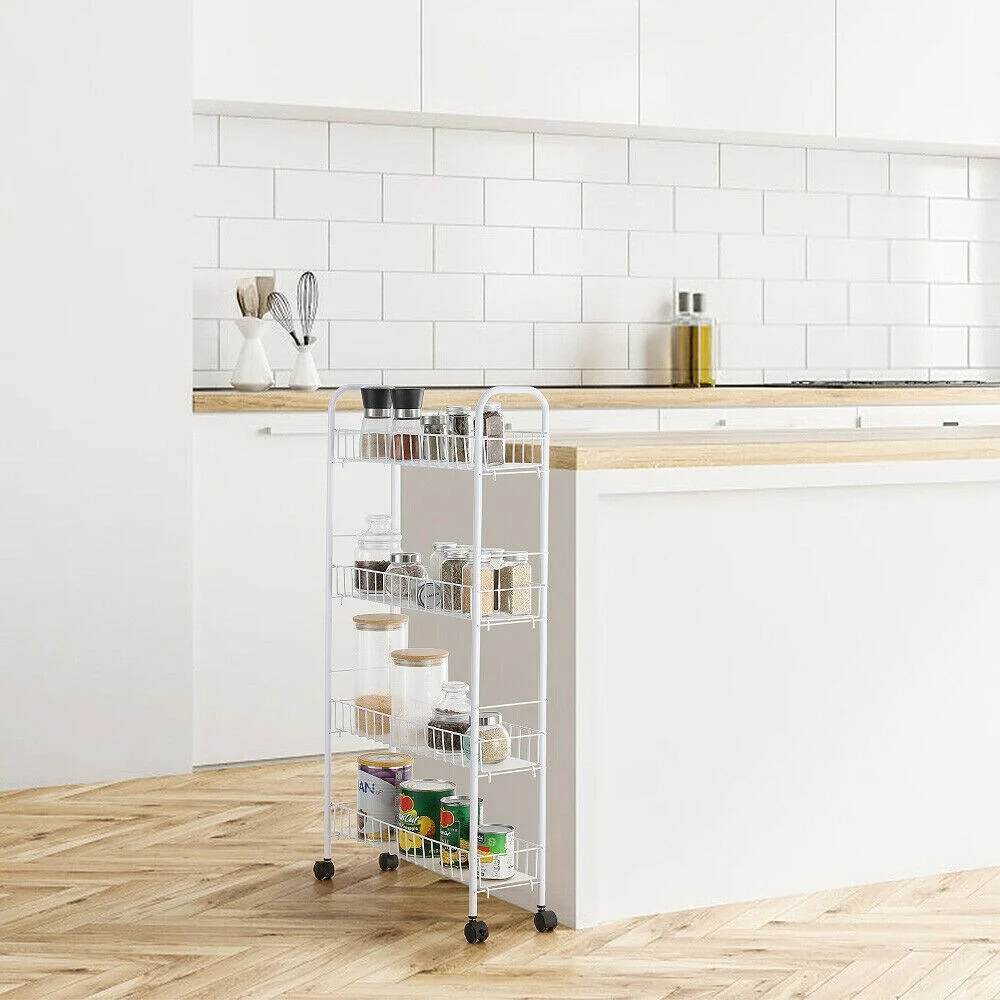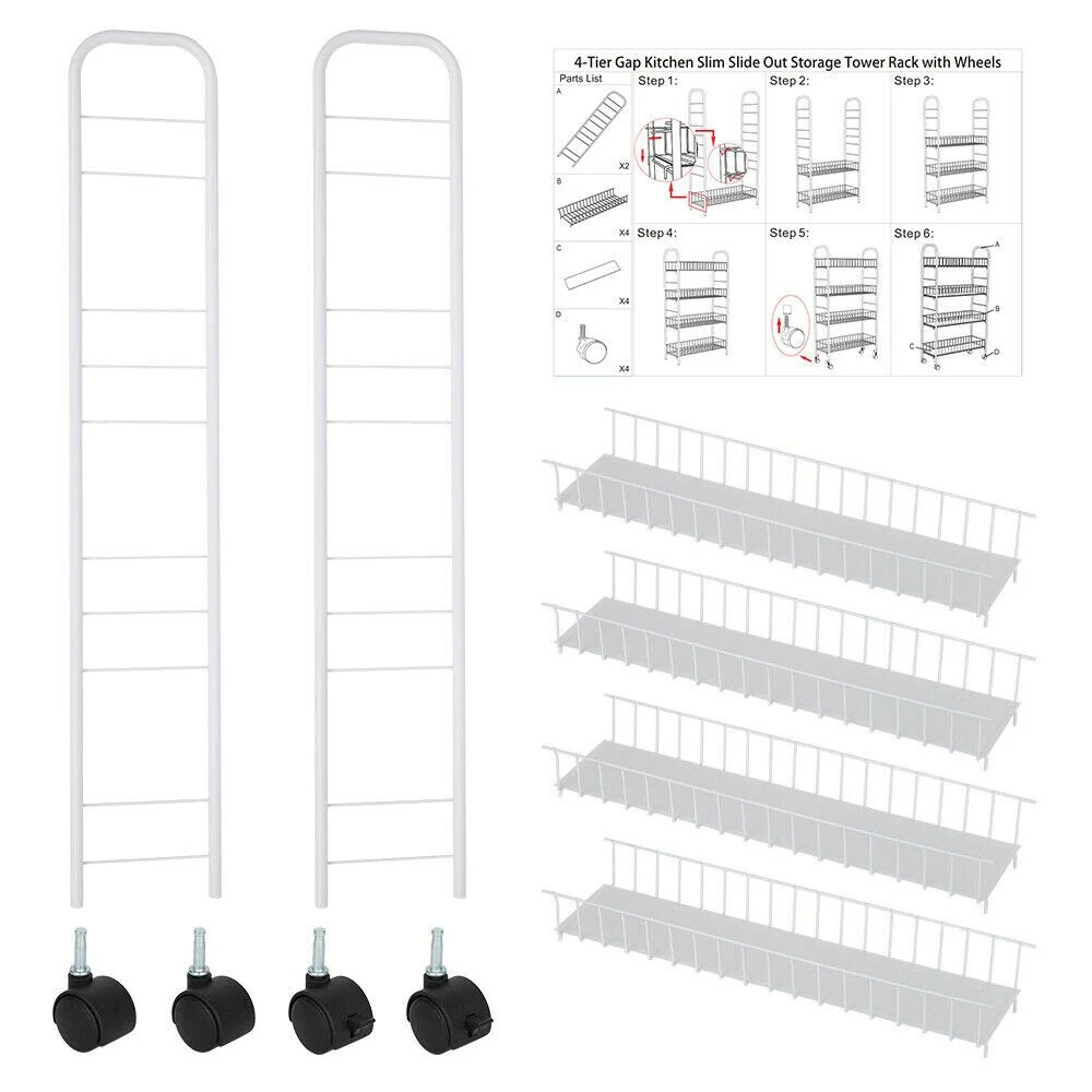 4 Tier Slim Slide Out Storage Rack with Wheels Storage Basket, White