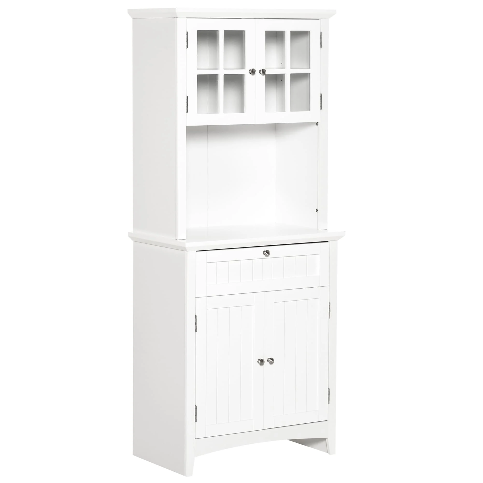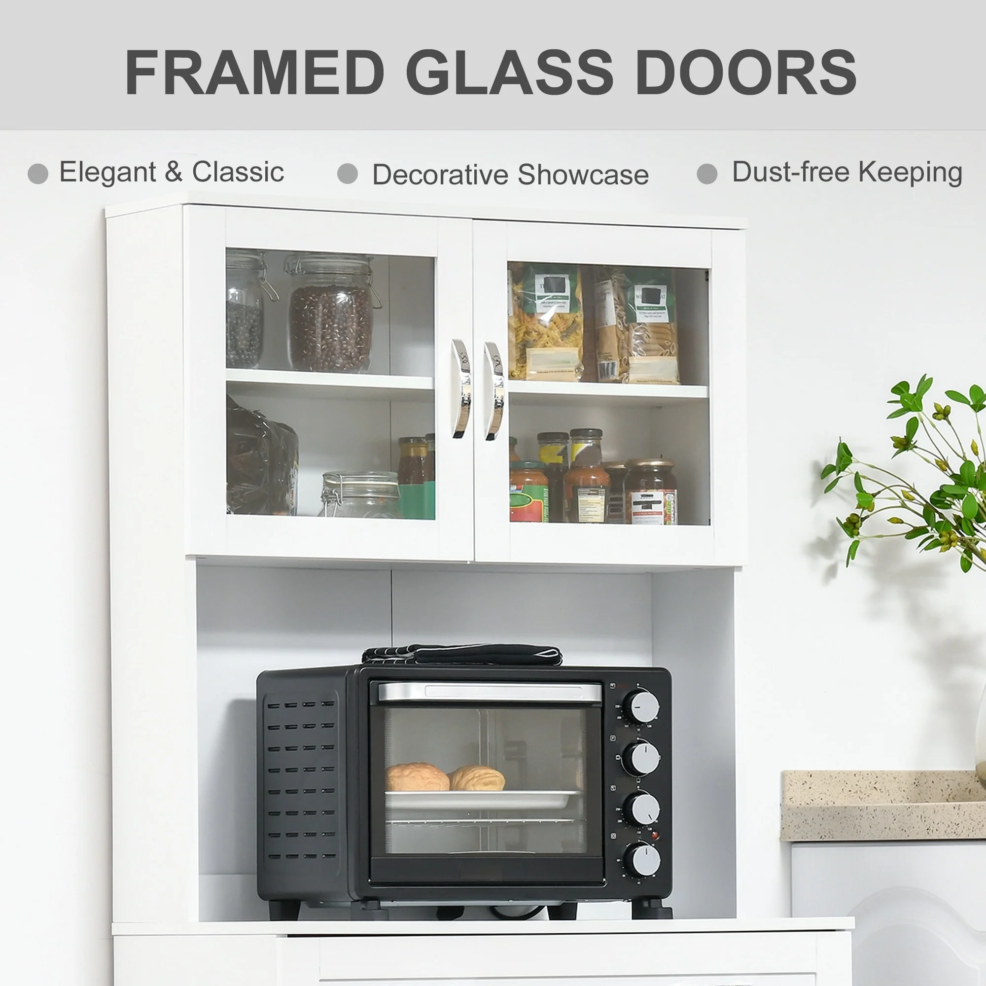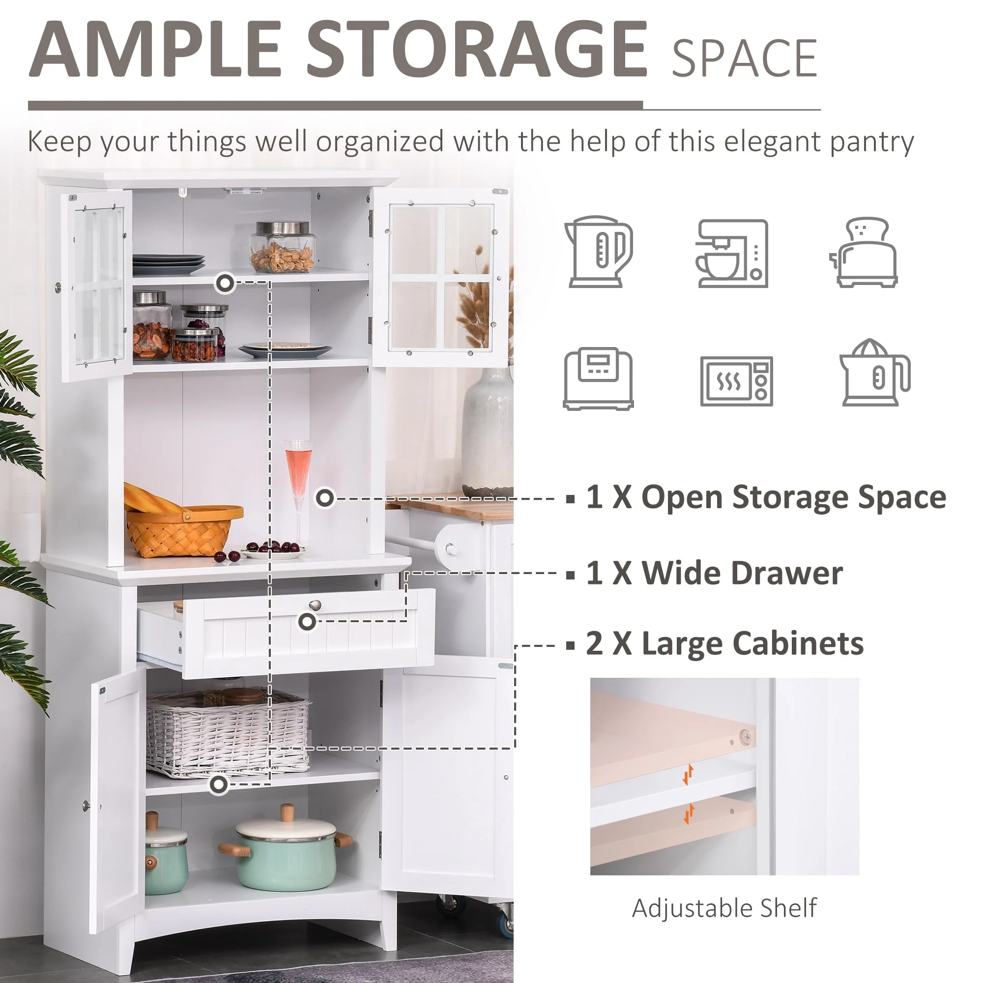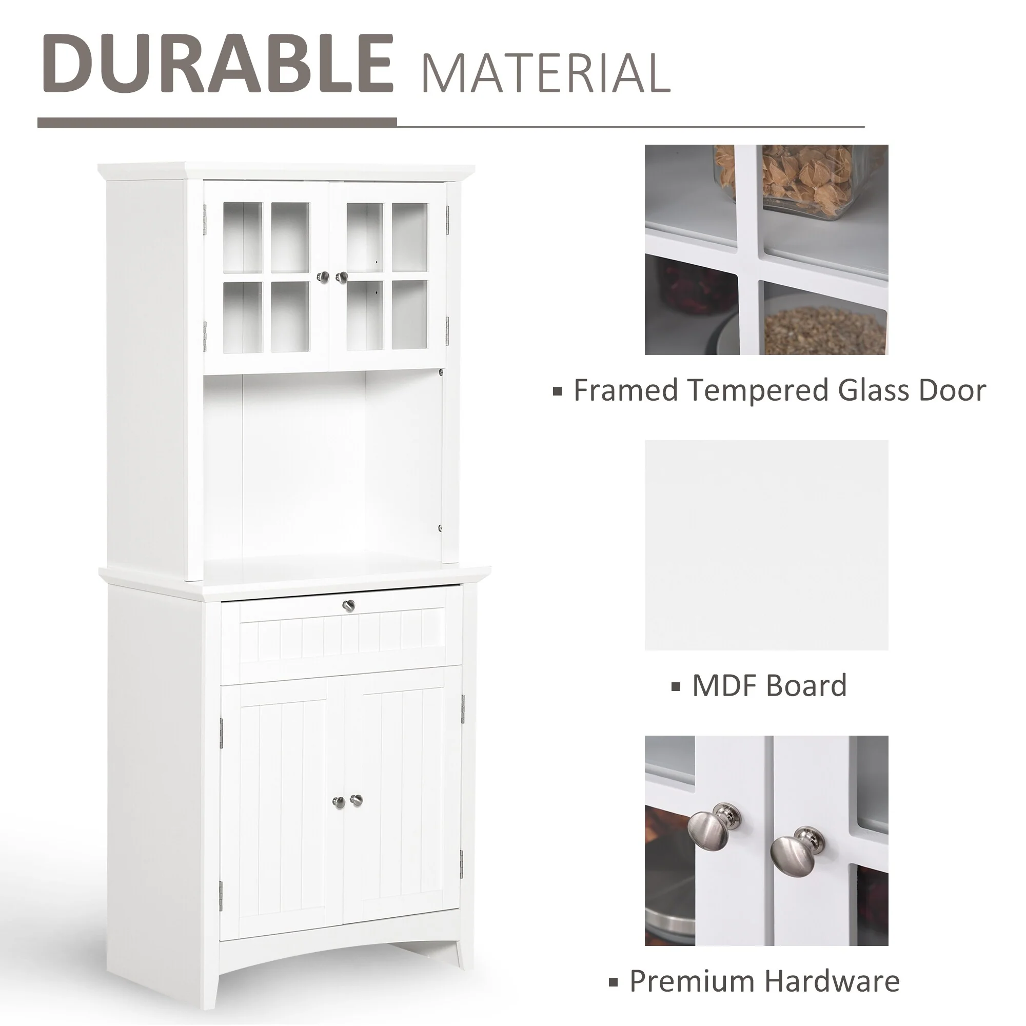 HOMCOM Modern Kitchen Pantry with Buffet Cabinet, Cupboard with Framed Glass Doors and Shelves, White
