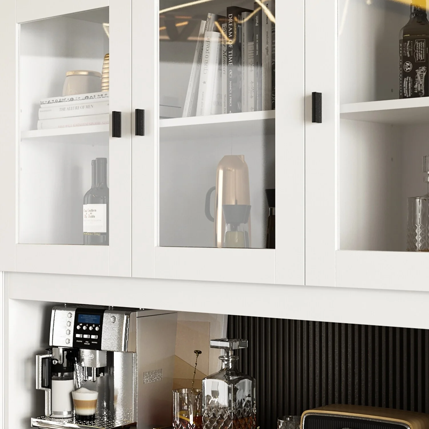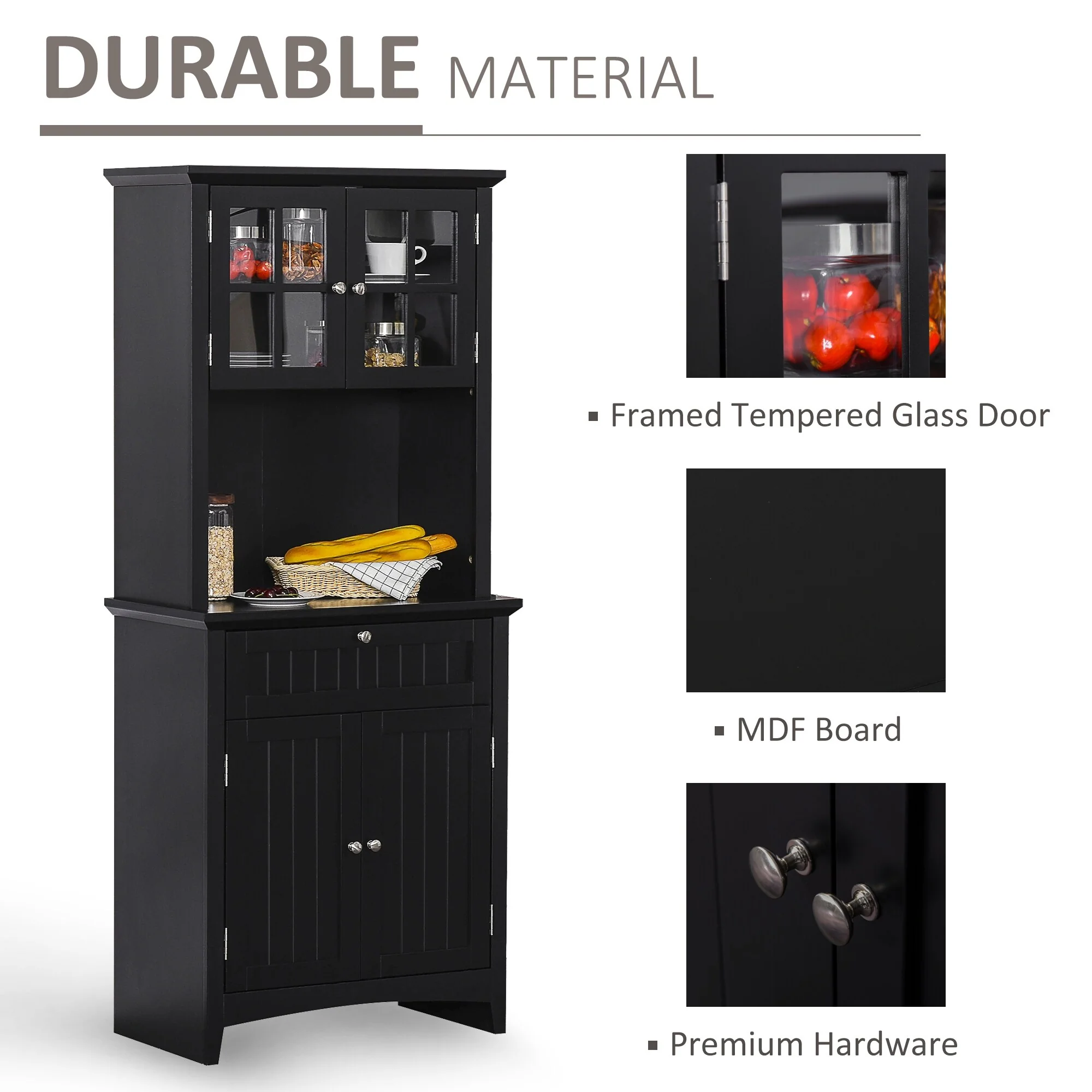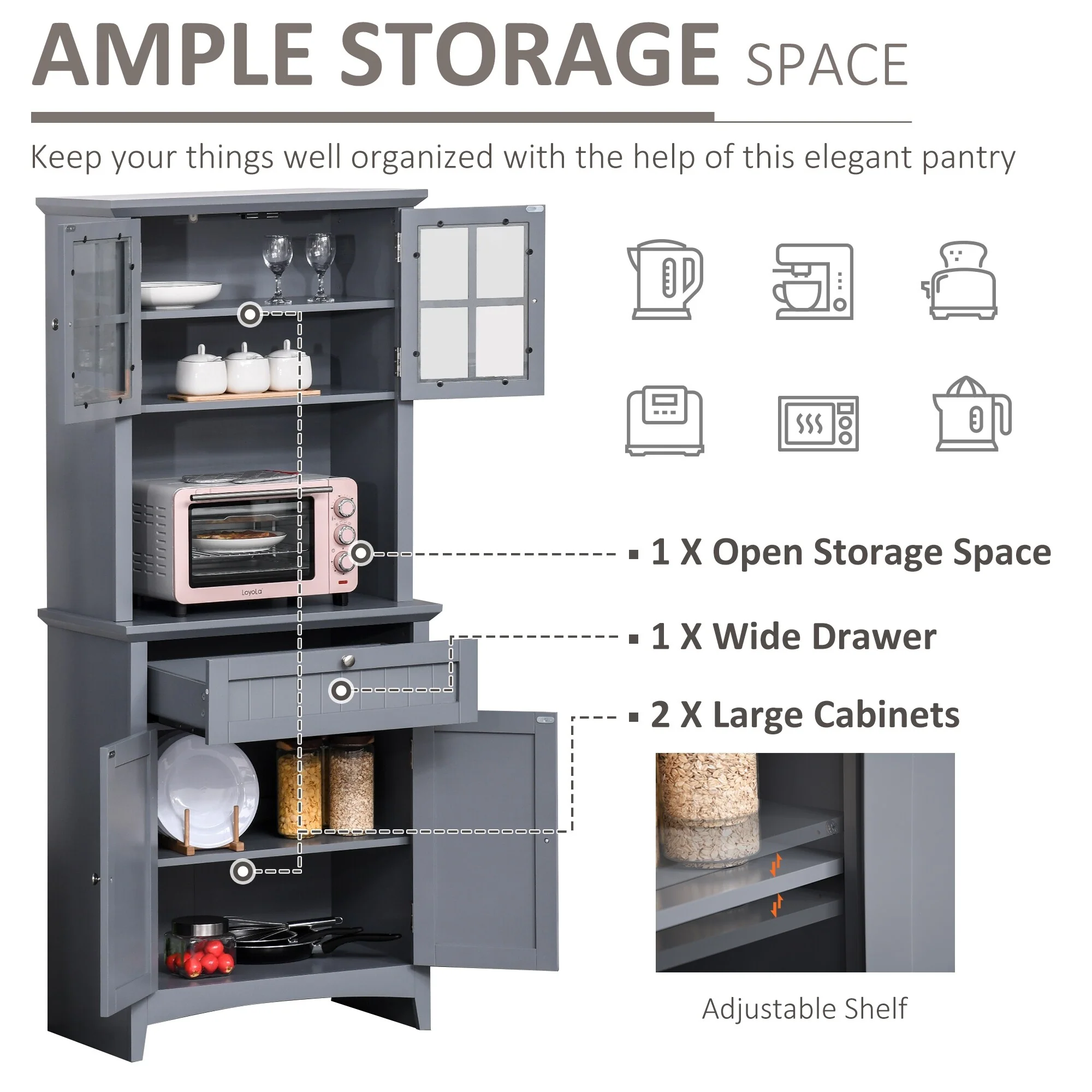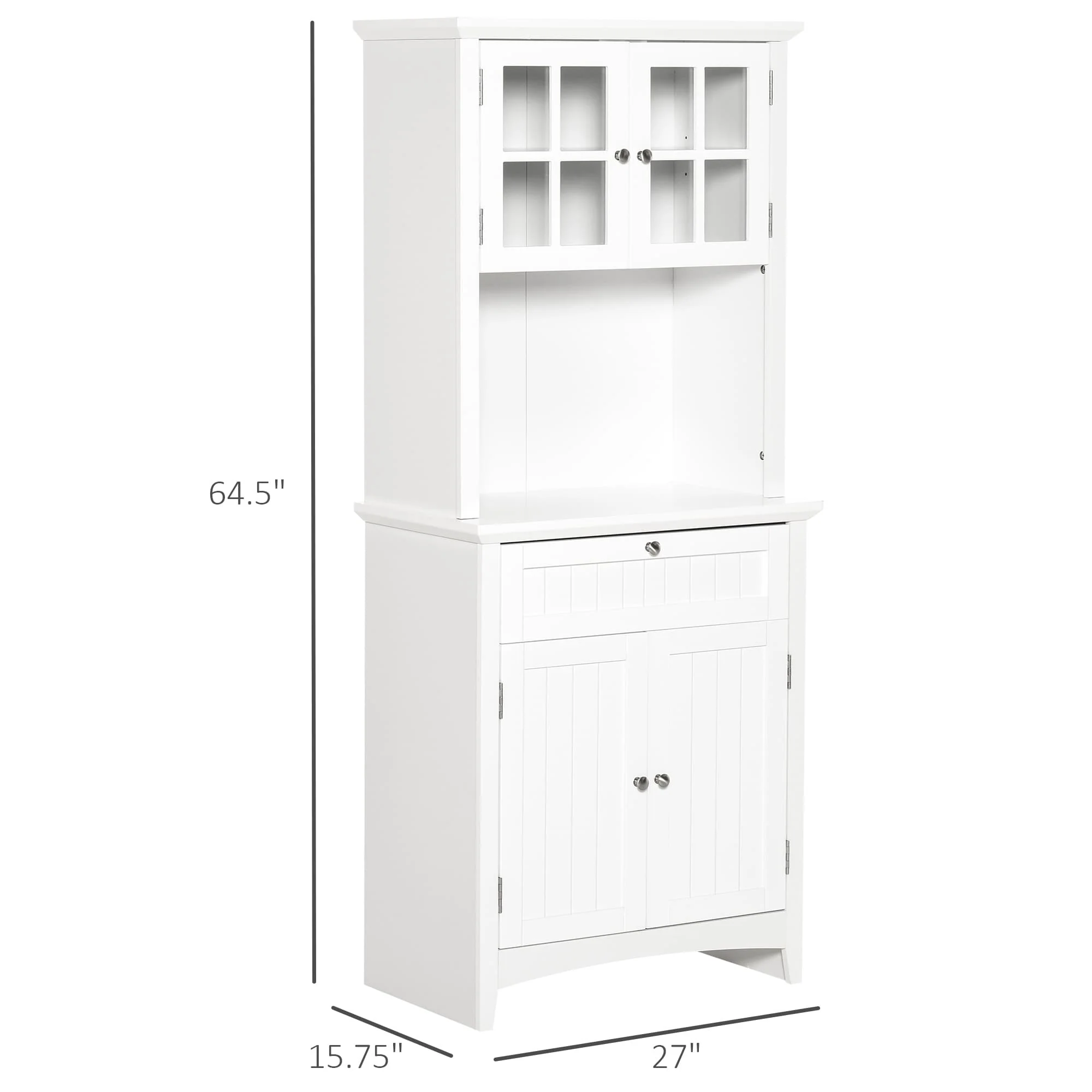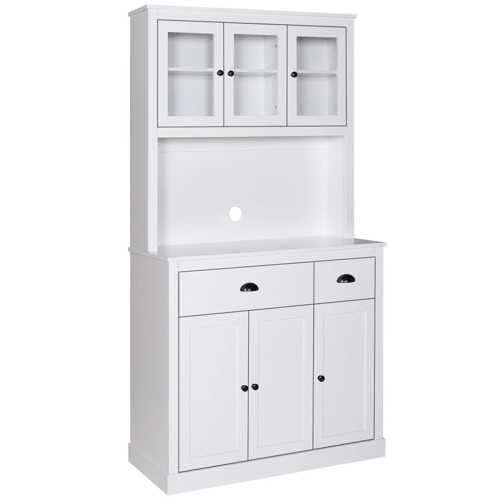 HOMCOM Modern Kitchen Pantry with Buffet Cabinet, Cupboard with Framed Glass Doors and Shelves, White