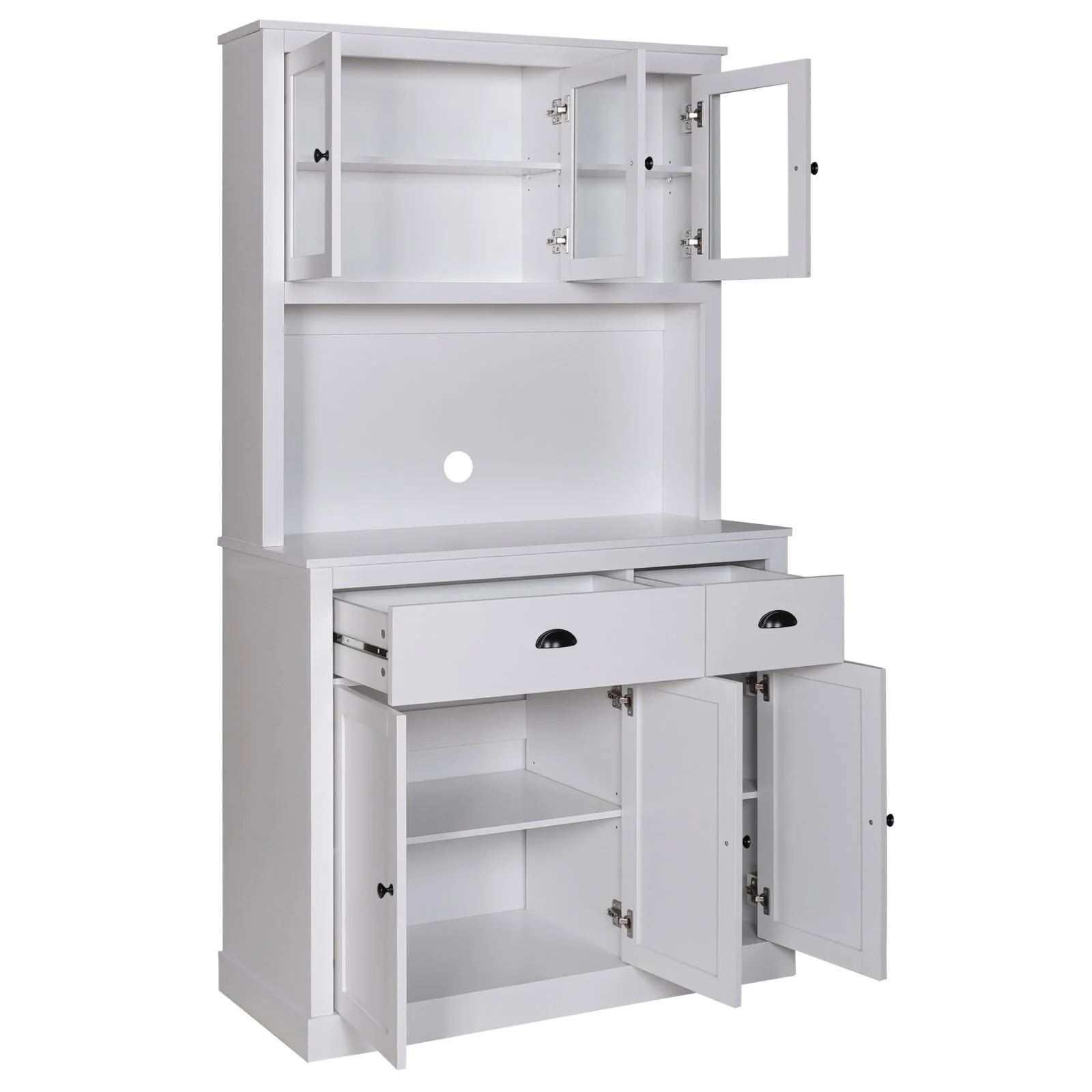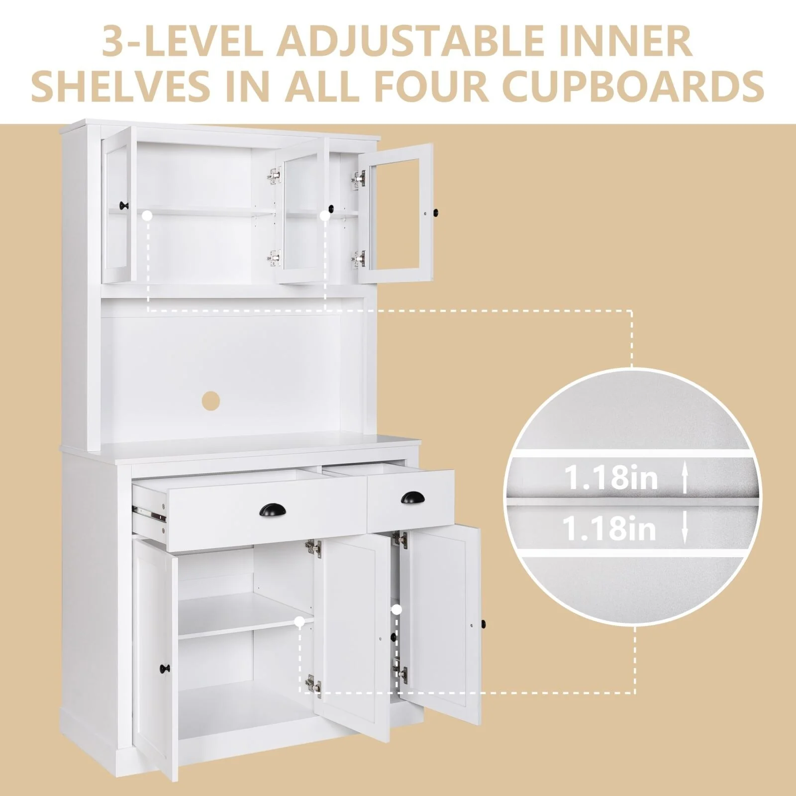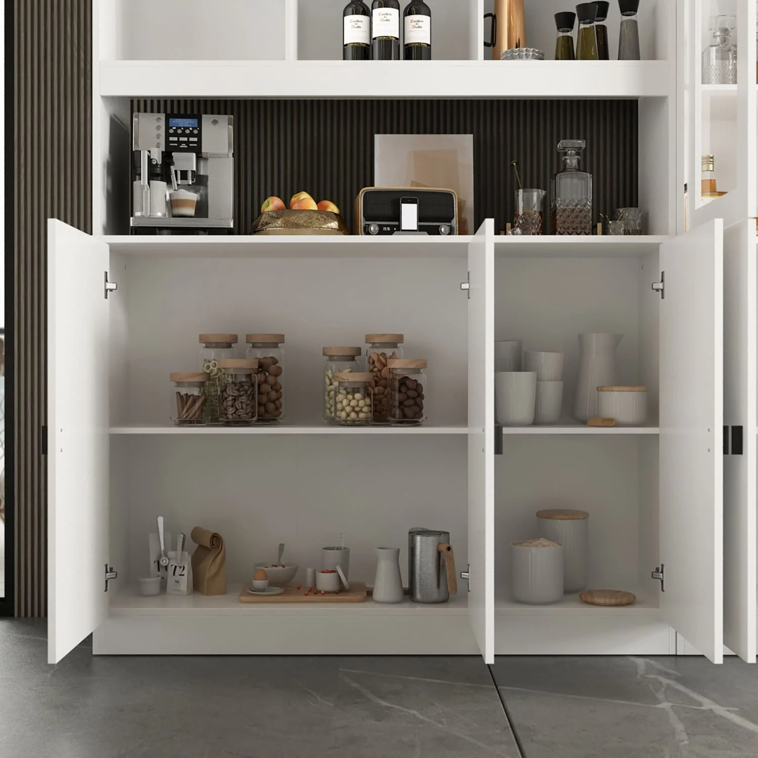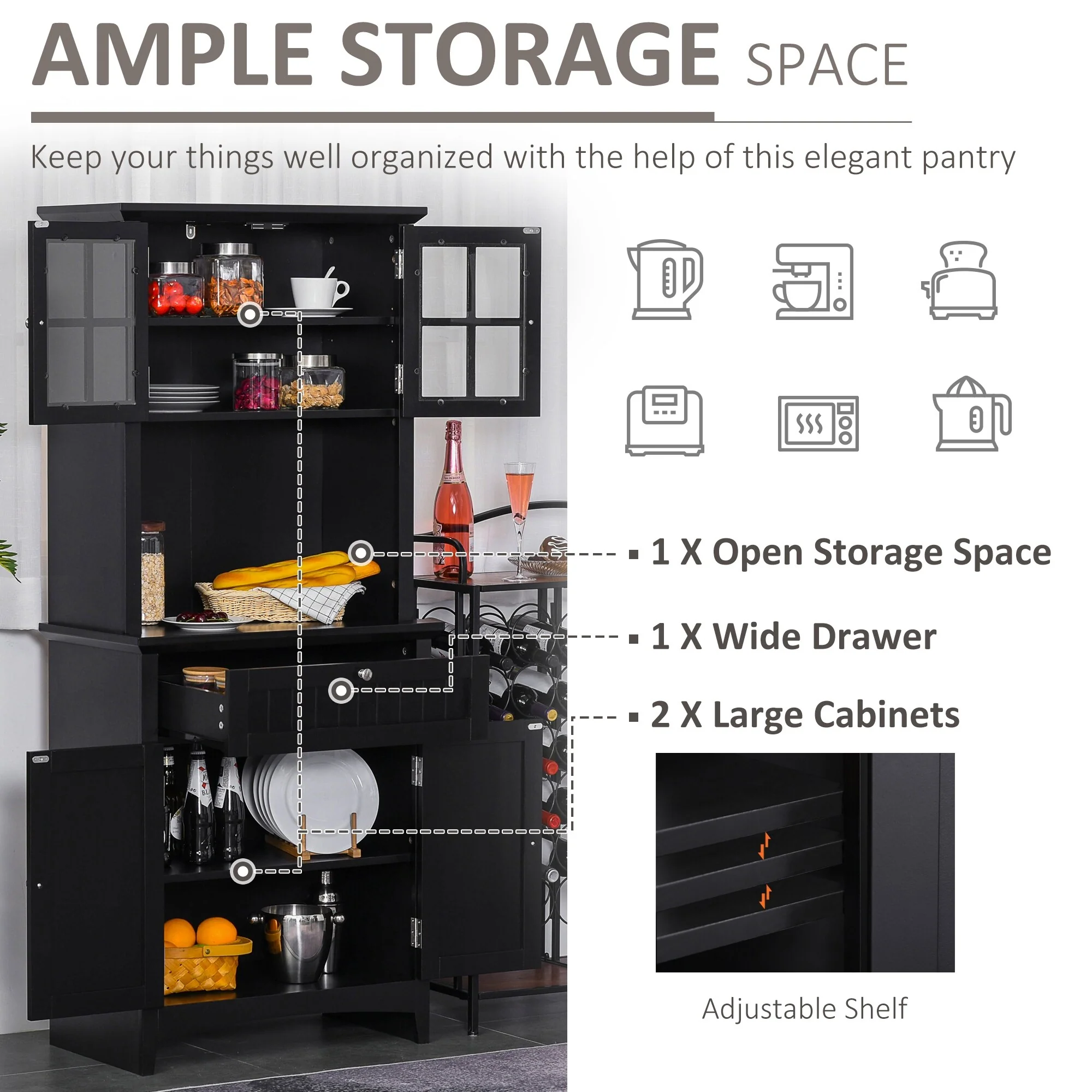 HOMCOM Modern Kitchen Pantry with Buffet Cabinet, Cupboard with Framed Glass Doors and Shelves, White