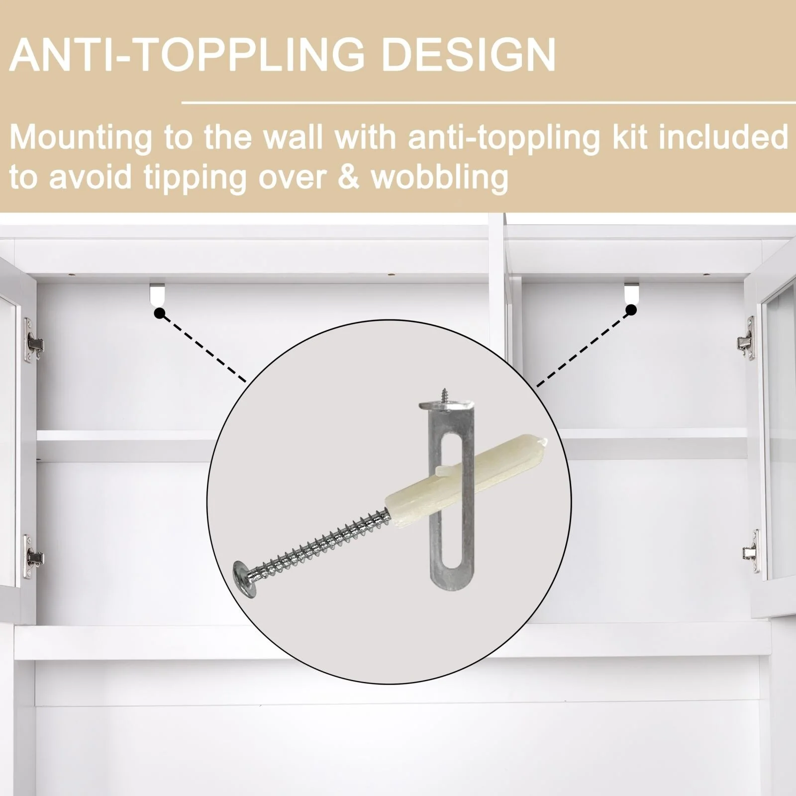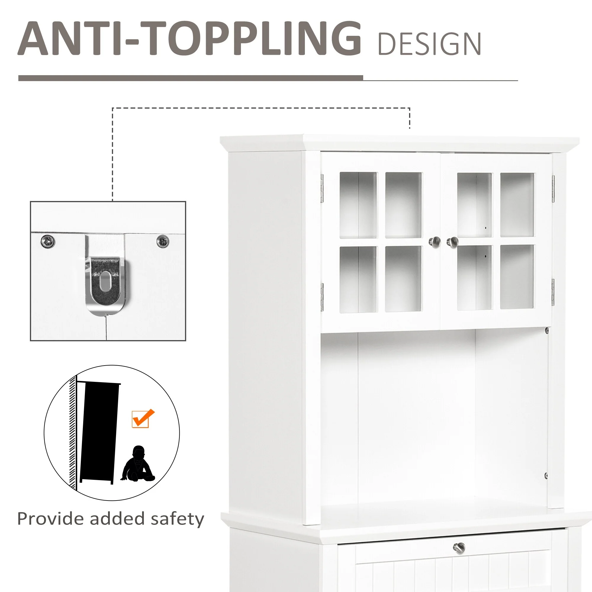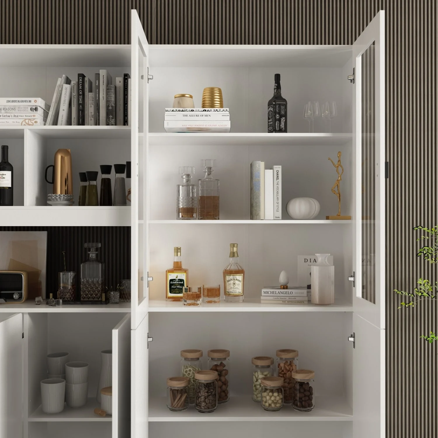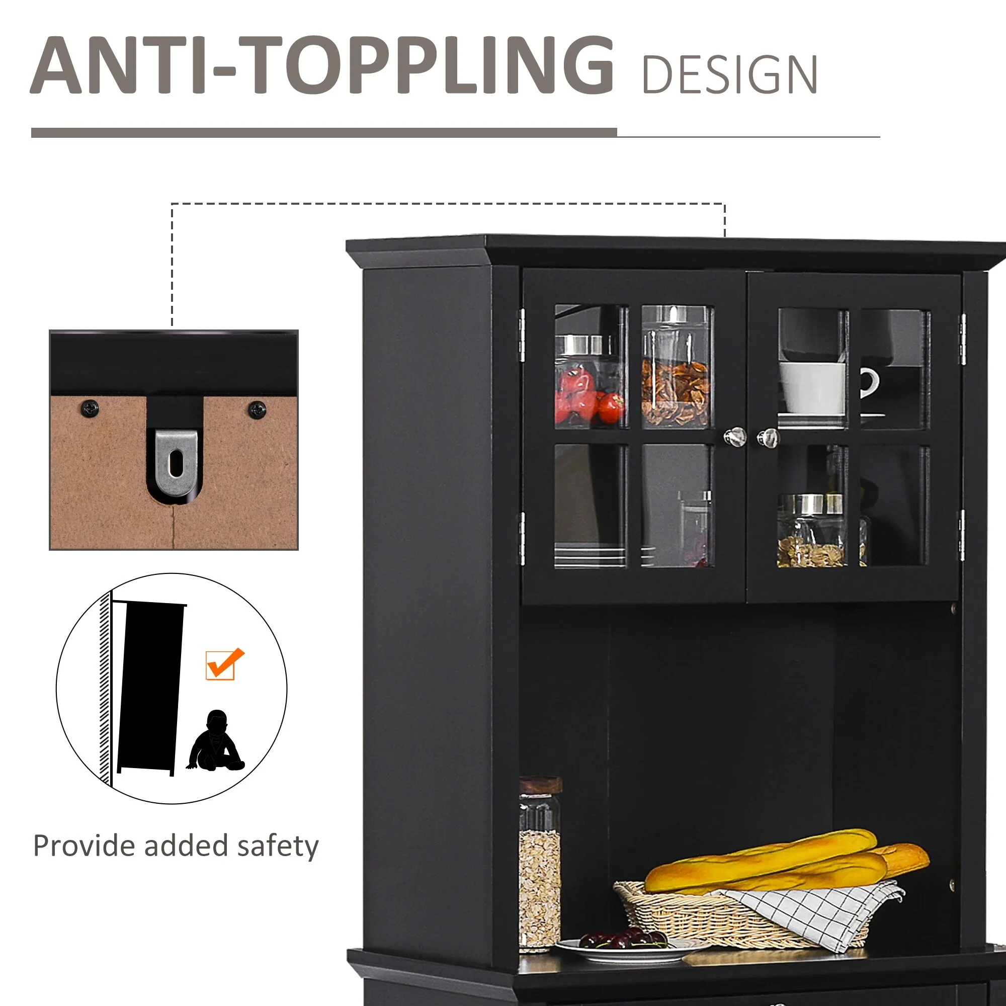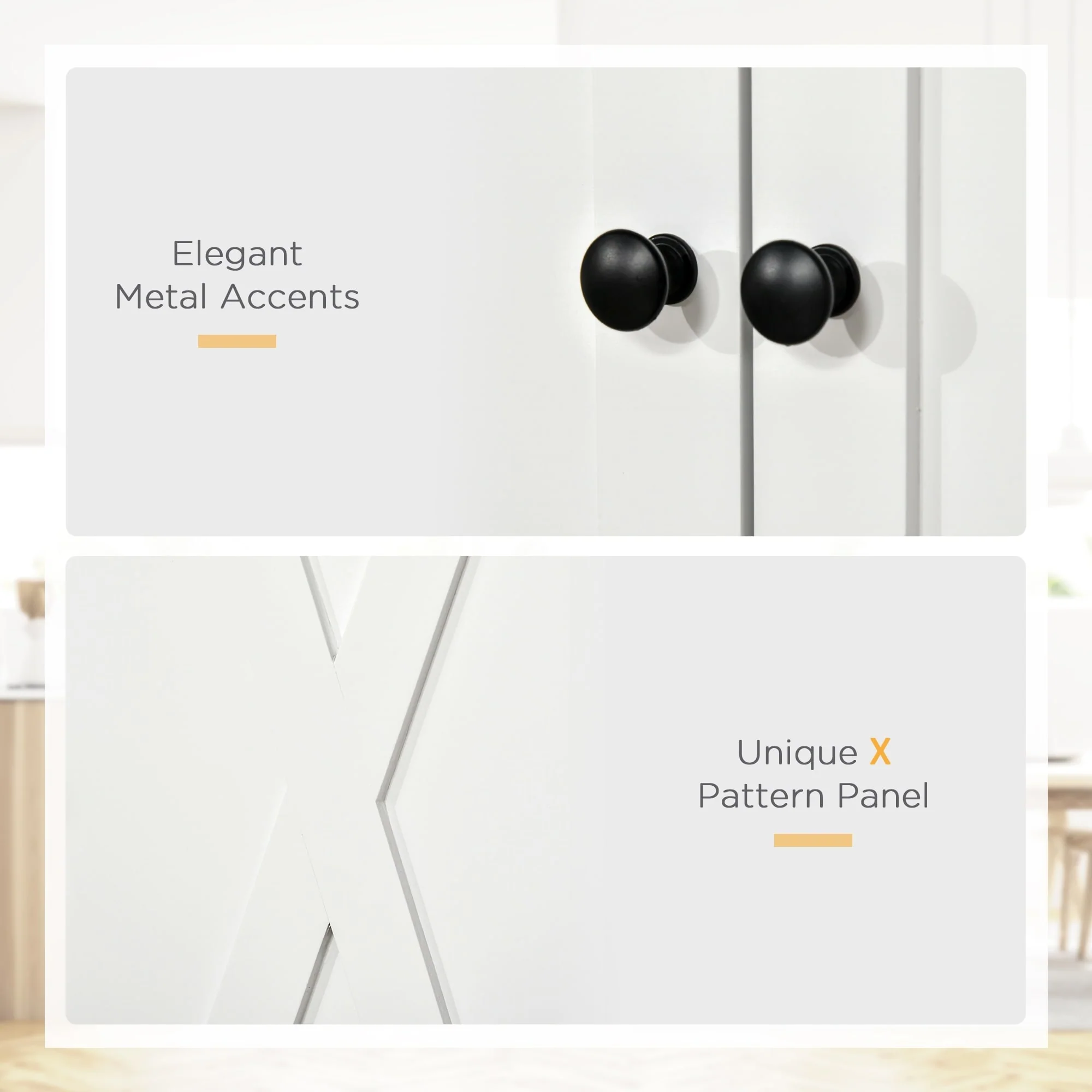HOMCOM Modern Kitchen Pantry with Buffet Cabinet, Cupboard with Framed Glass Doors and Shelves, White