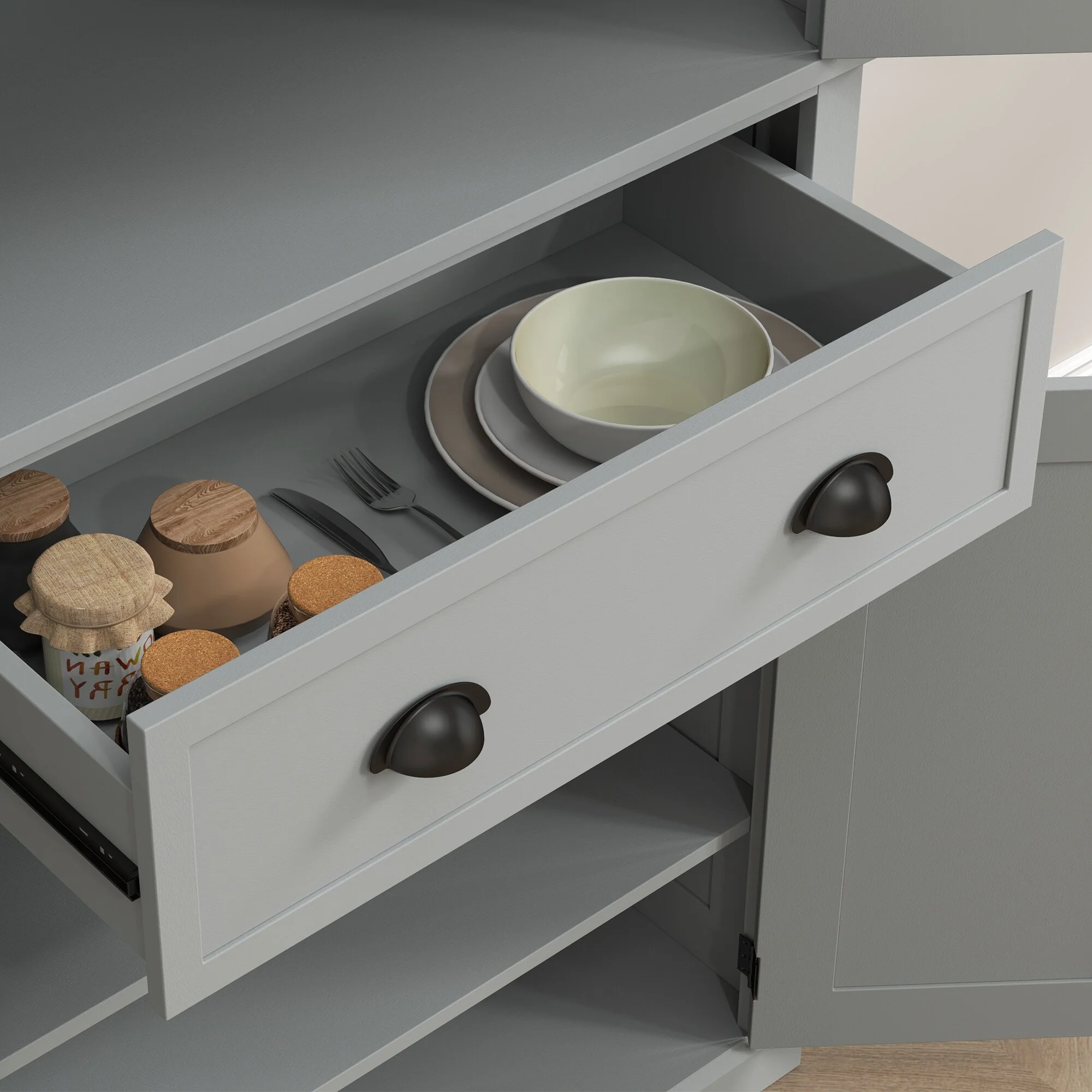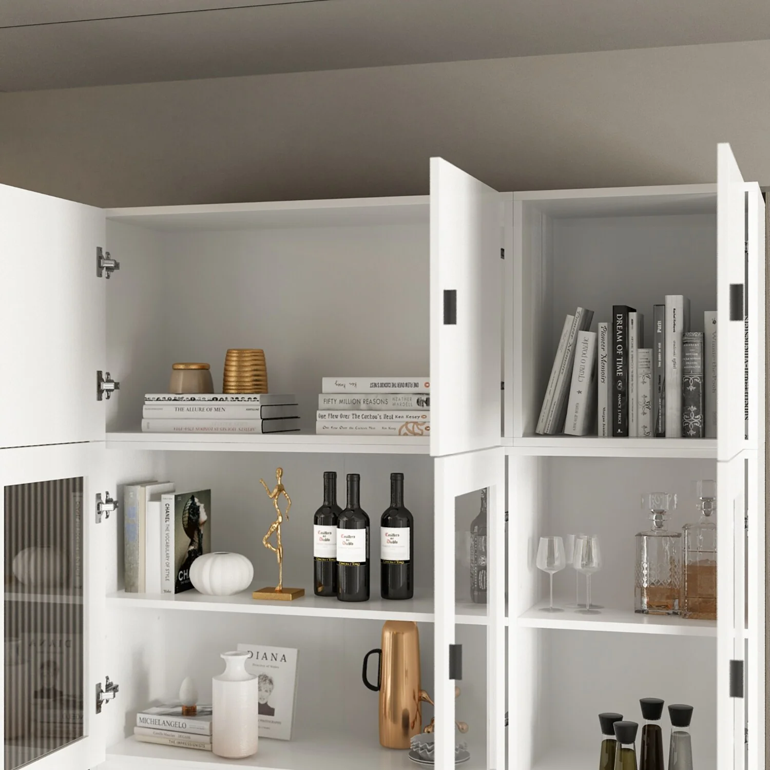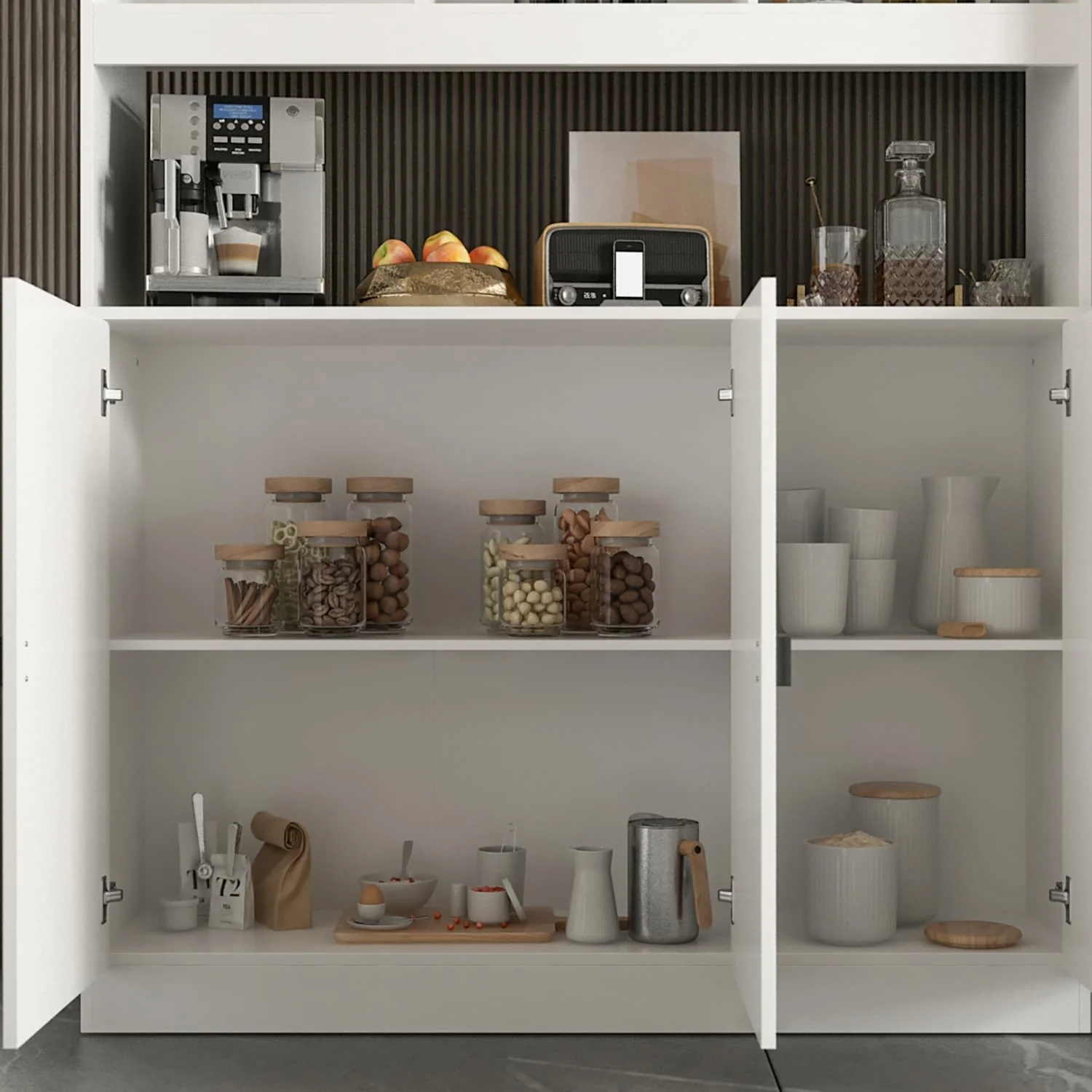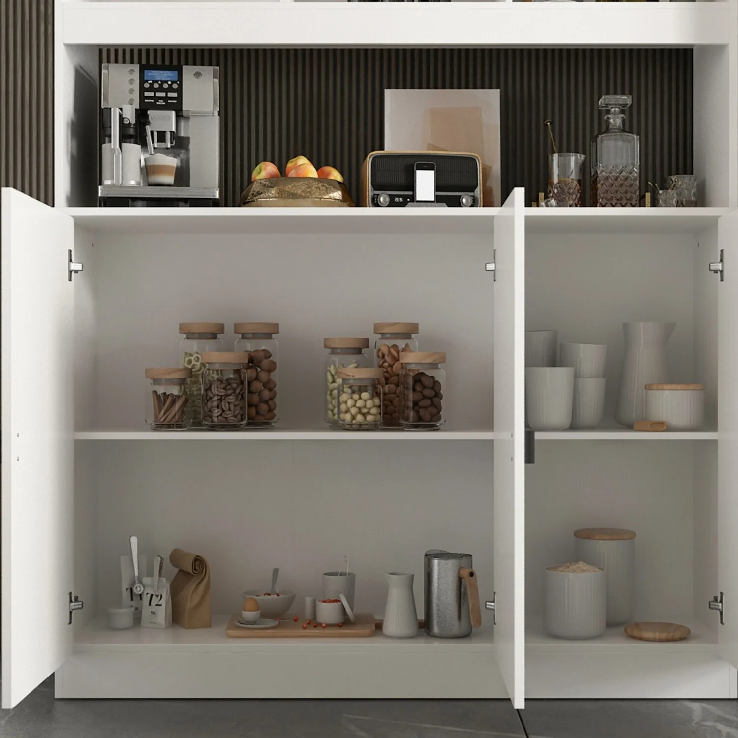HOMCOM Modern Kitchen Pantry with Buffet Cabinet, Cupboard with Framed Glass Doors and Shelves, White