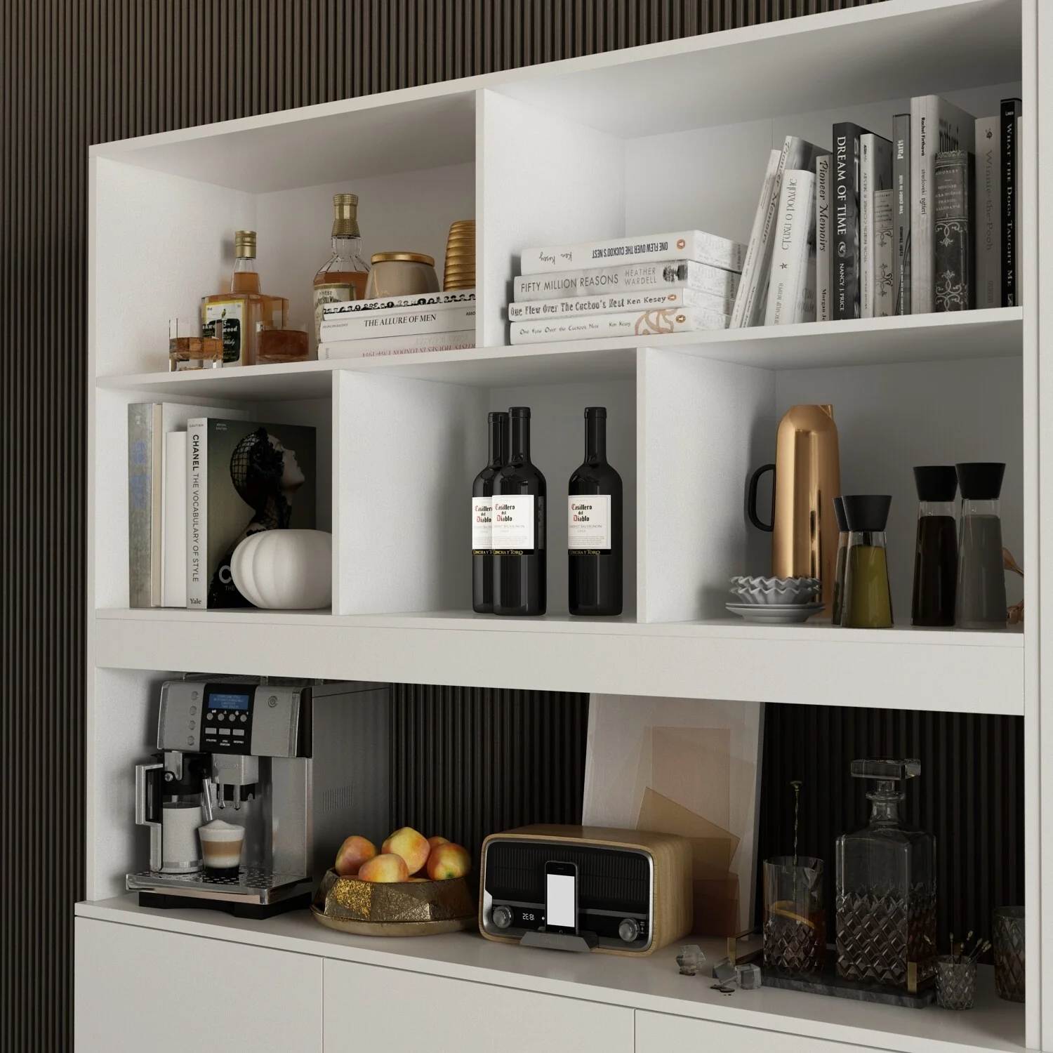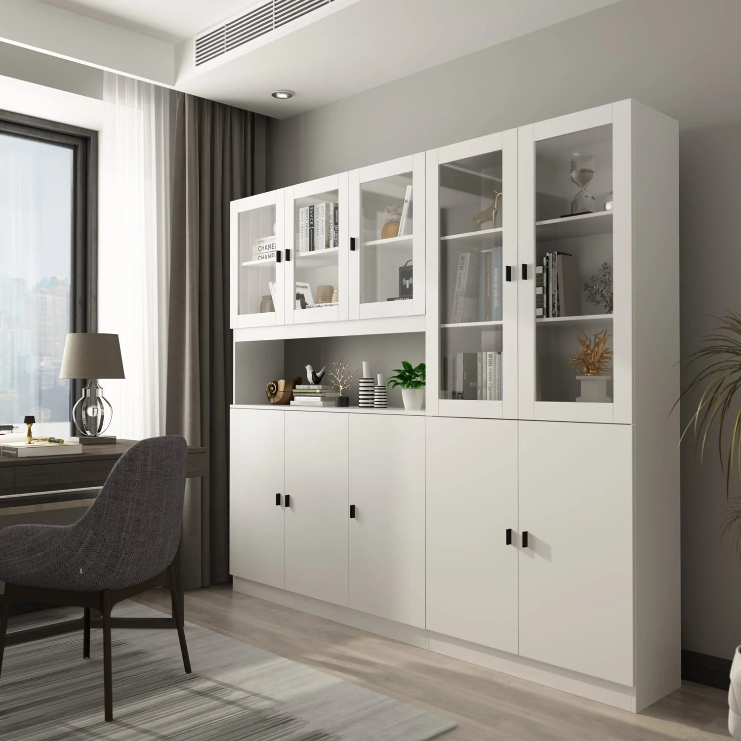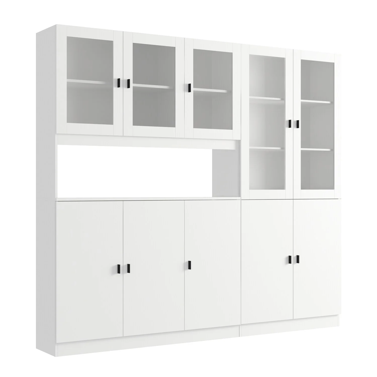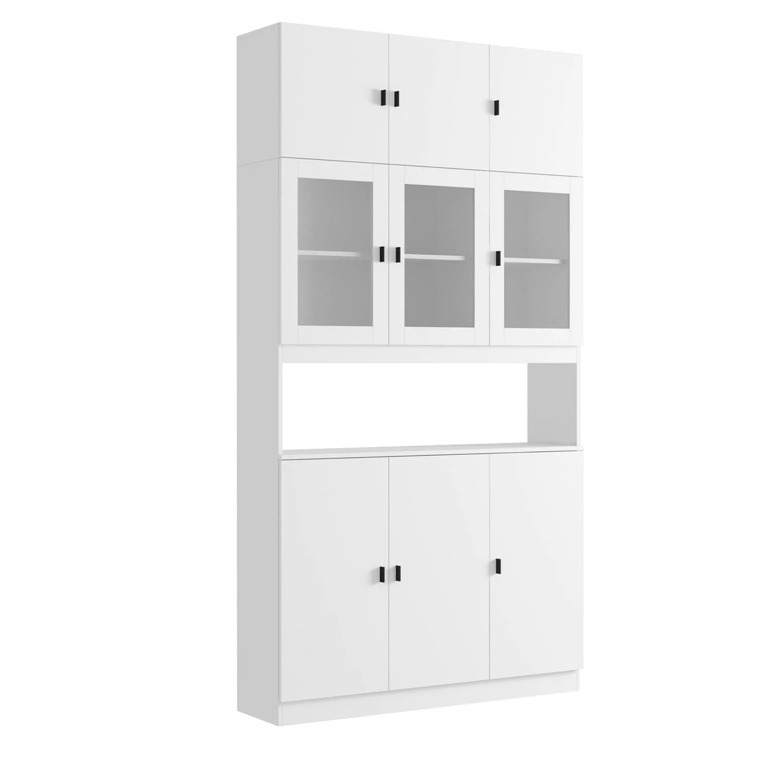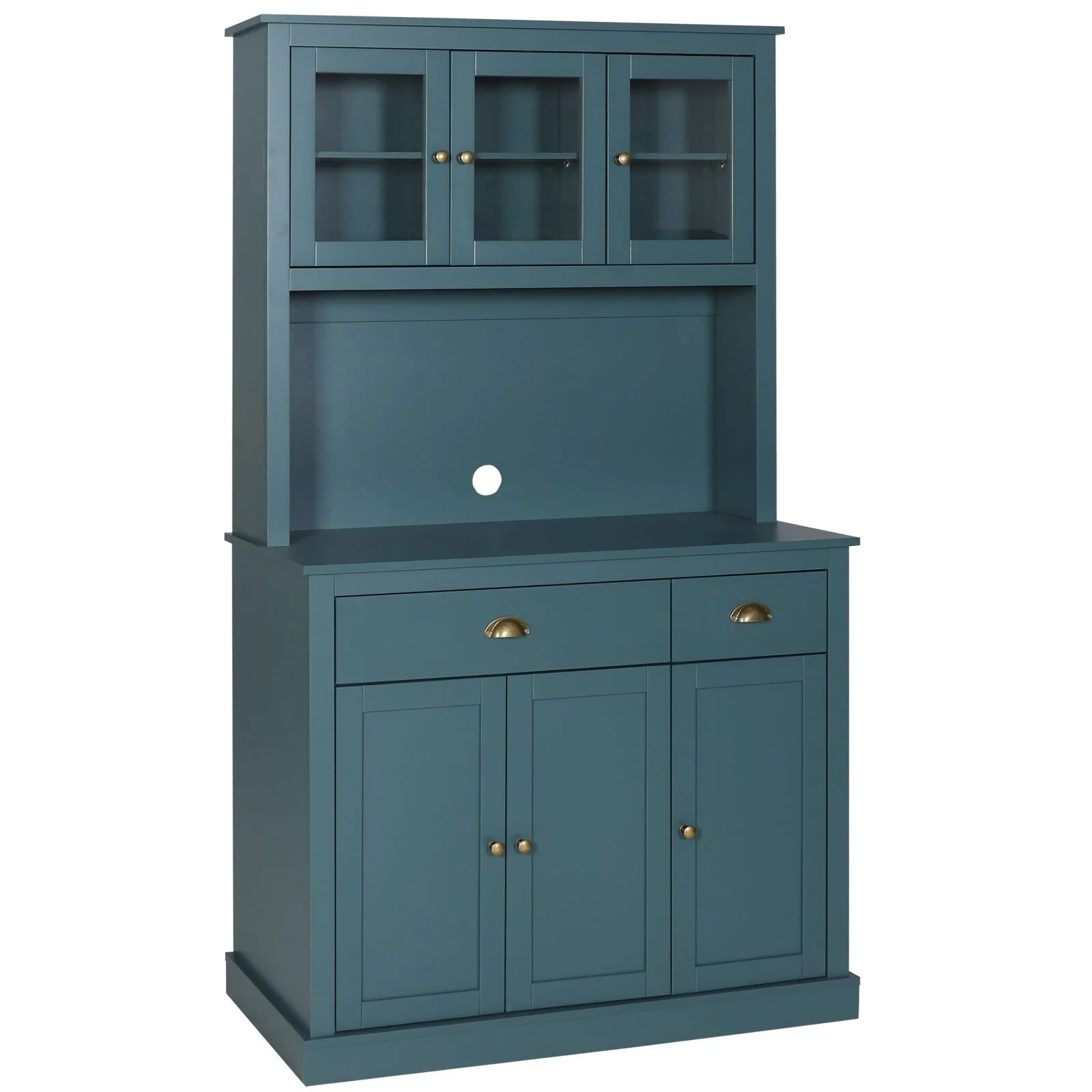 HOMCOM Modern Kitchen Pantry with Buffet Cabinet, Cupboard with Framed Glass Doors and Shelves, White