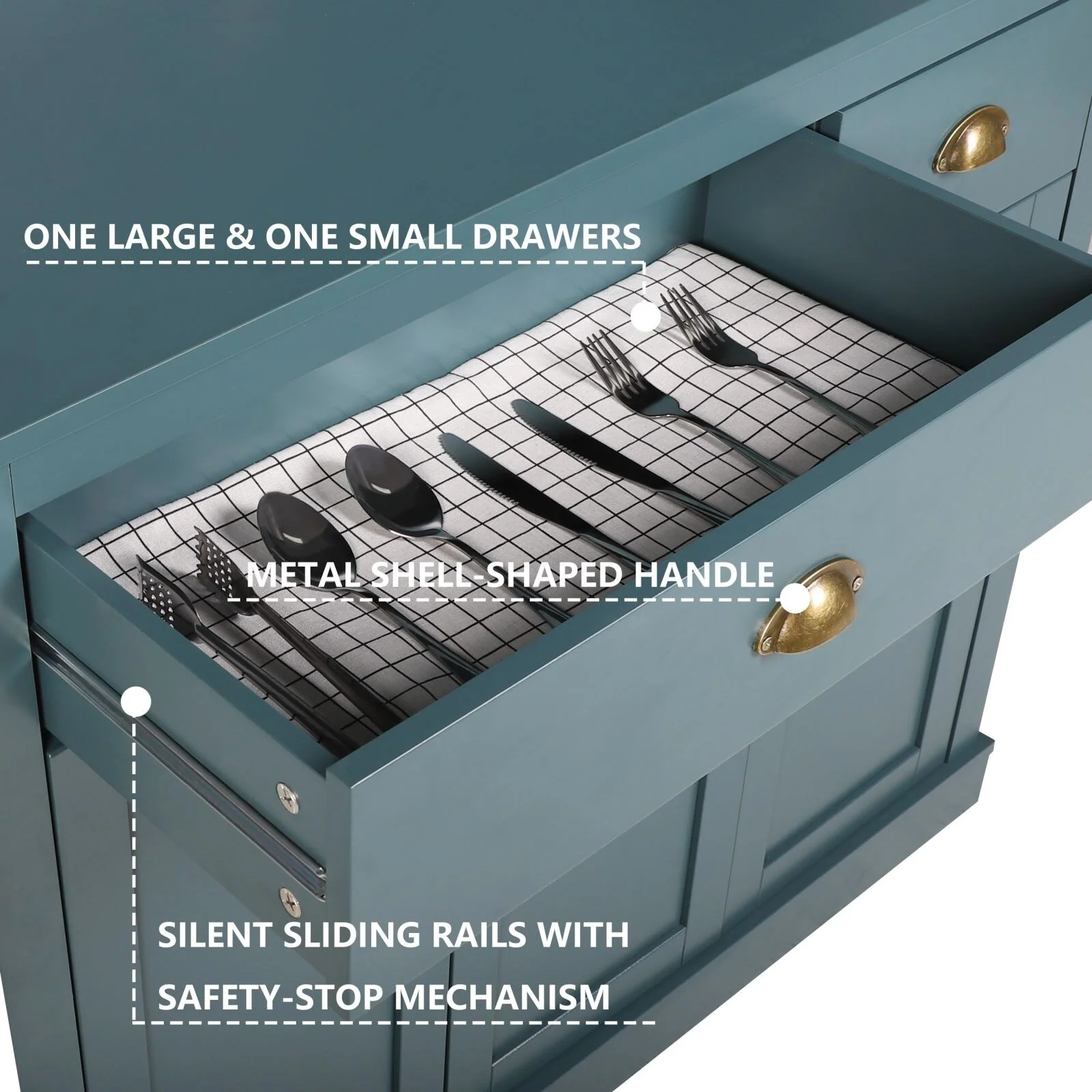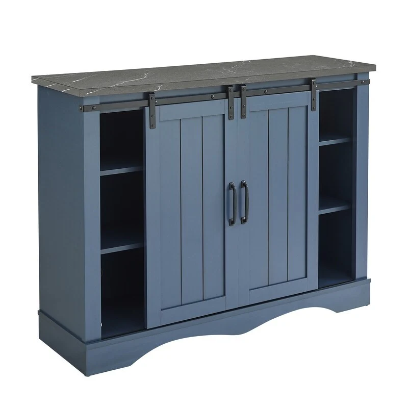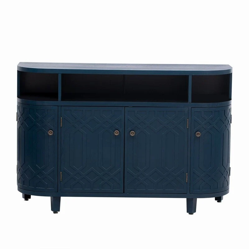 Roomfitters Handcrafted Premium Grain Panels,Rattan Sideboard Buffet Cabinet, Accent Storage Cabinet, Navy Blue - N/A