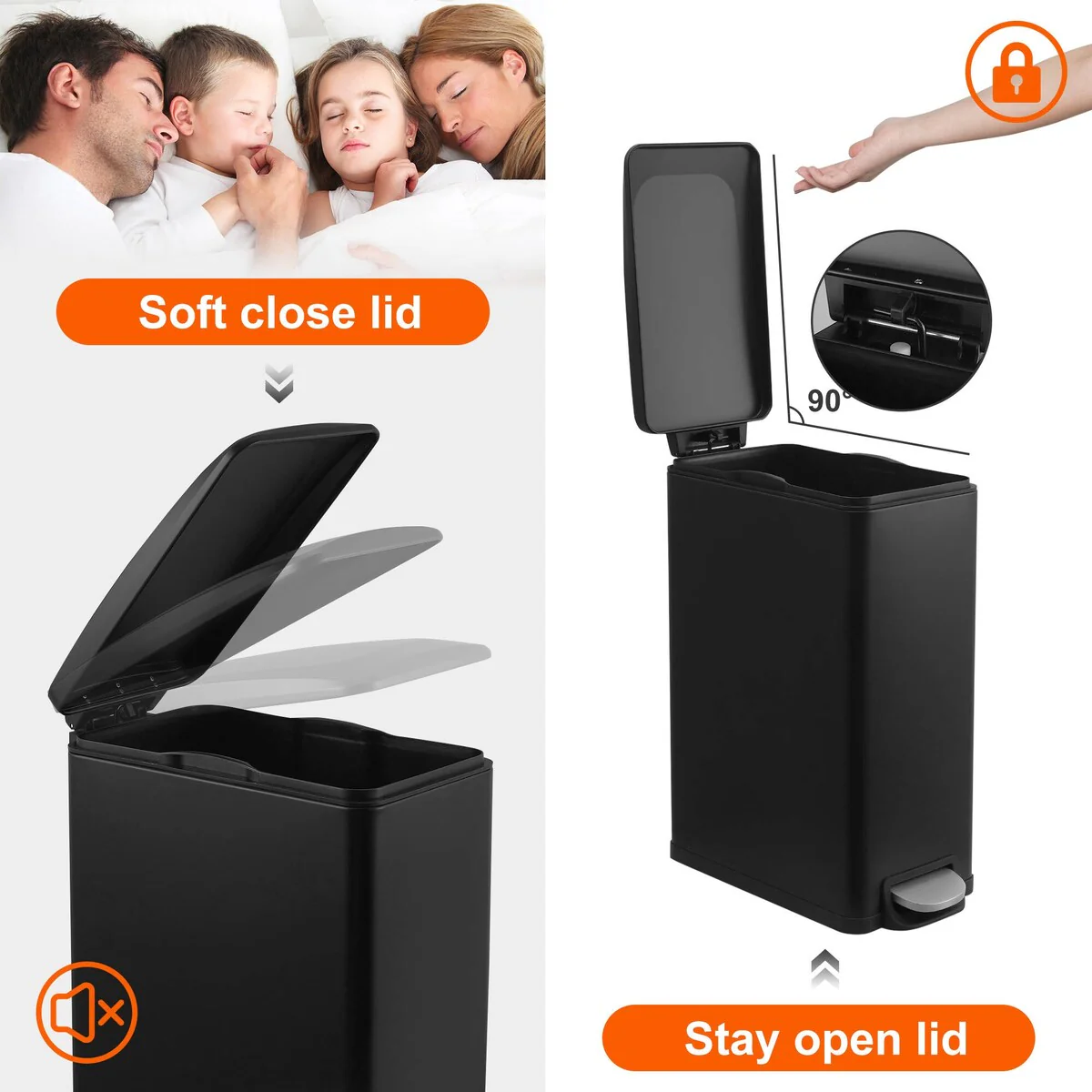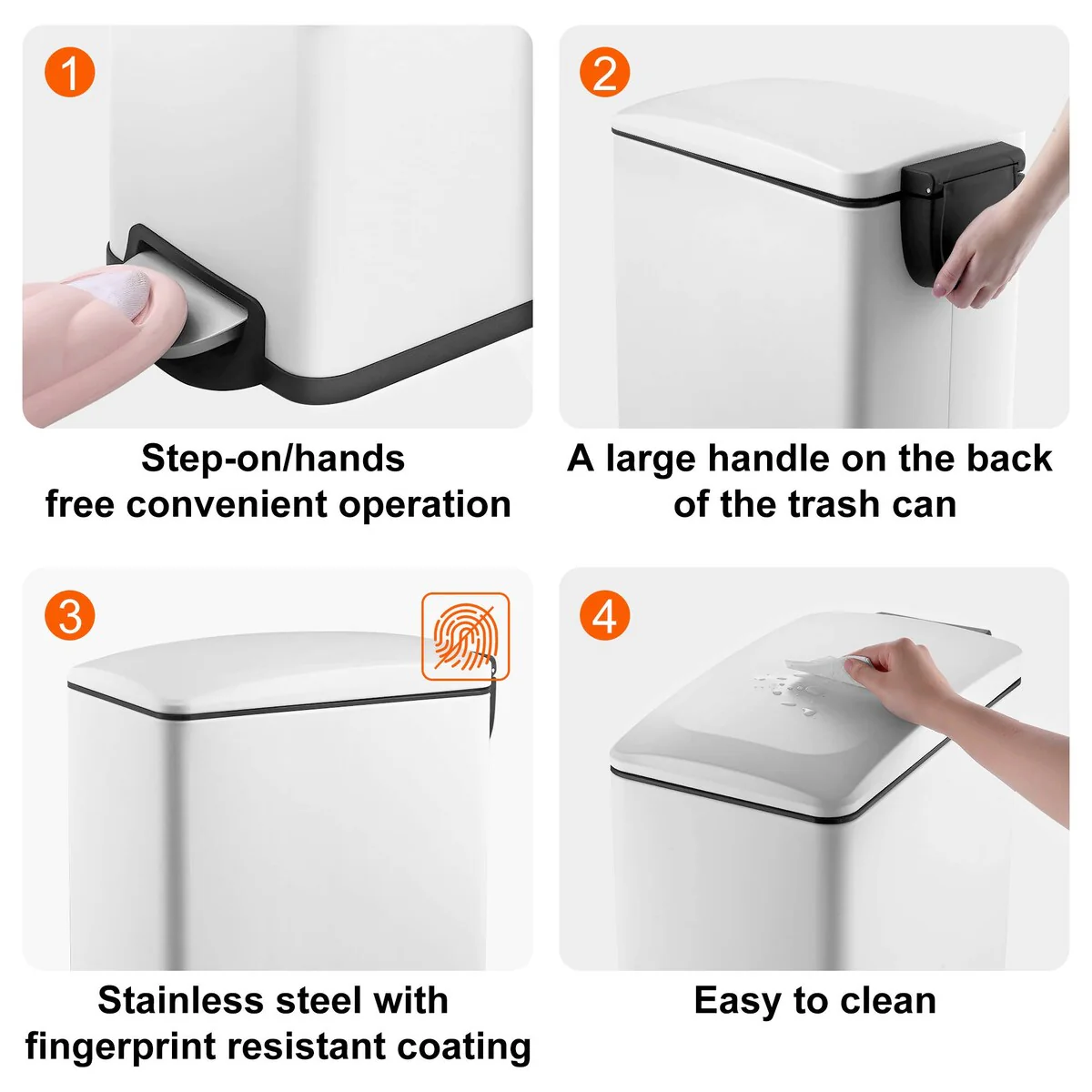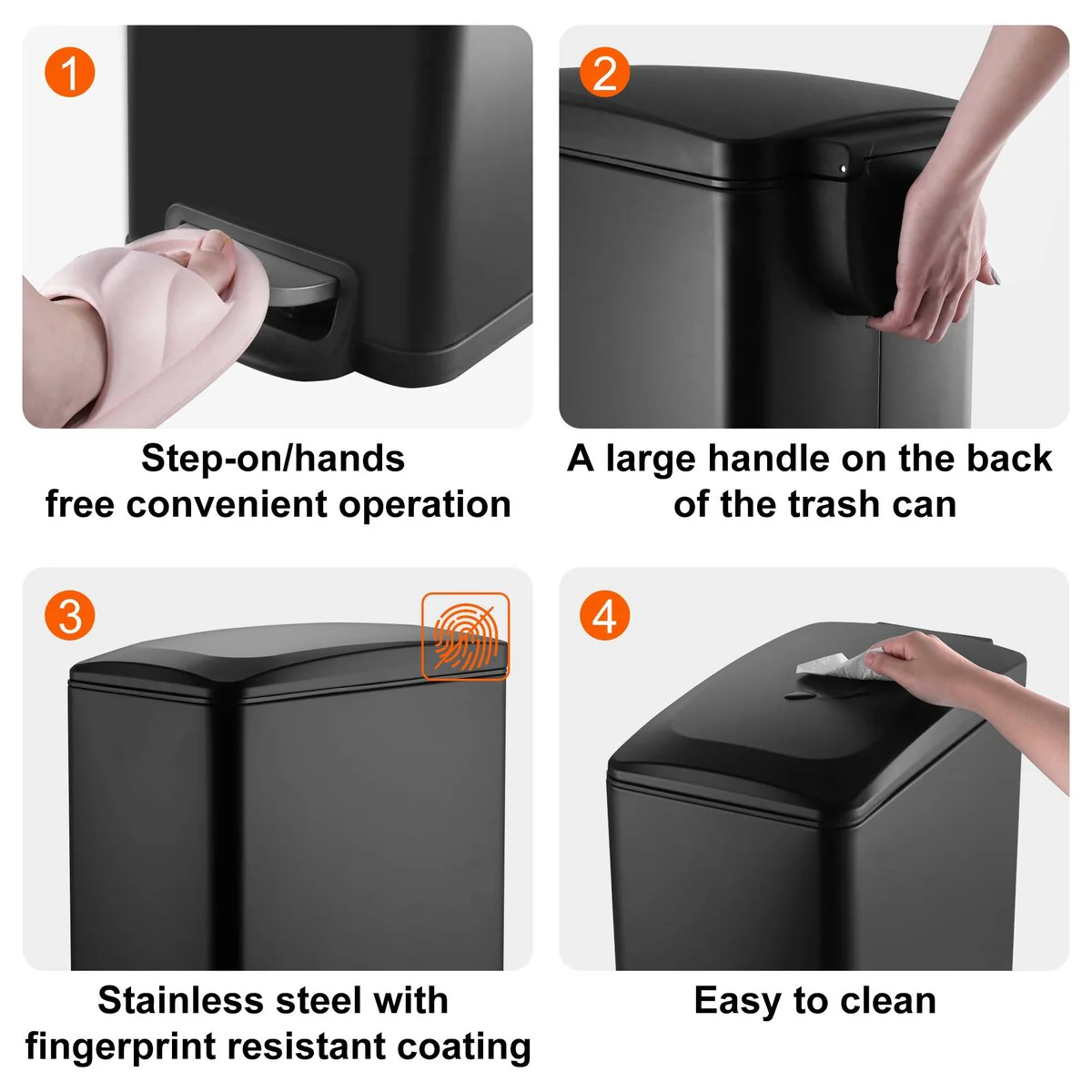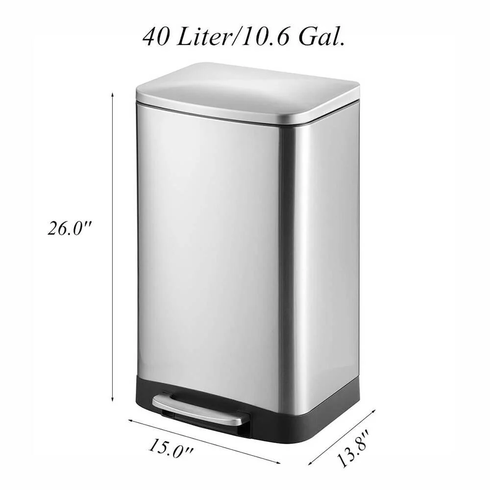 Innovaze 10.6 Gal./40 Liter Stainless Steel Rectangular Step-on Trash Can for Kitchen