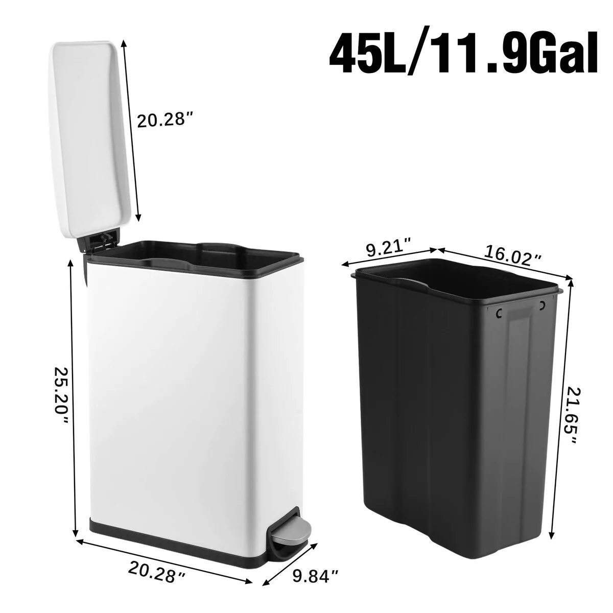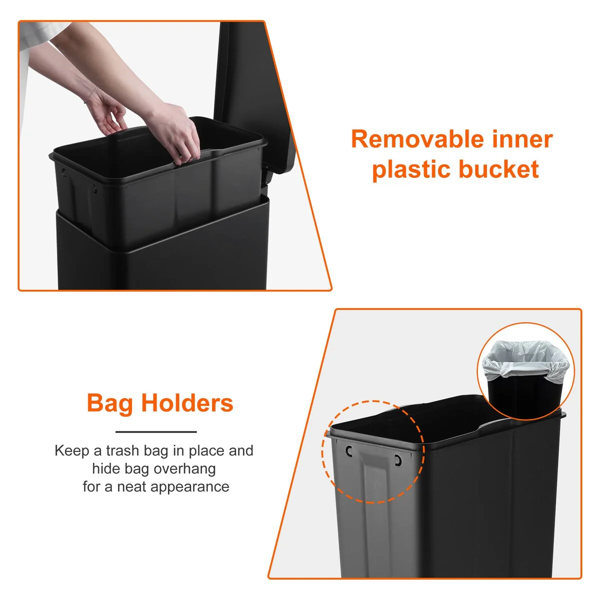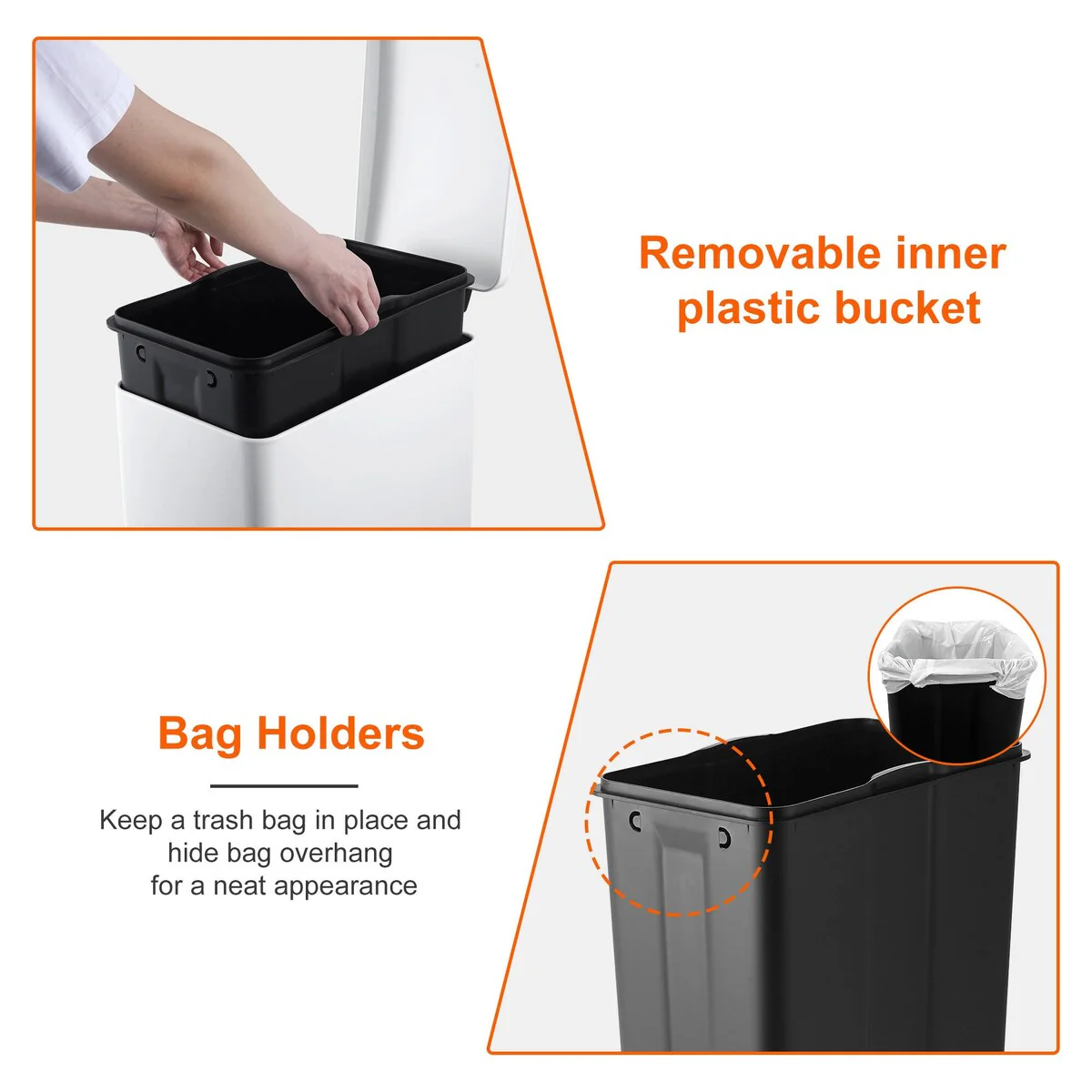 Innovaze 10.6 Gal./40 Liter Stainless Steel Rectangular Step-on Trash Can for Kitchen
