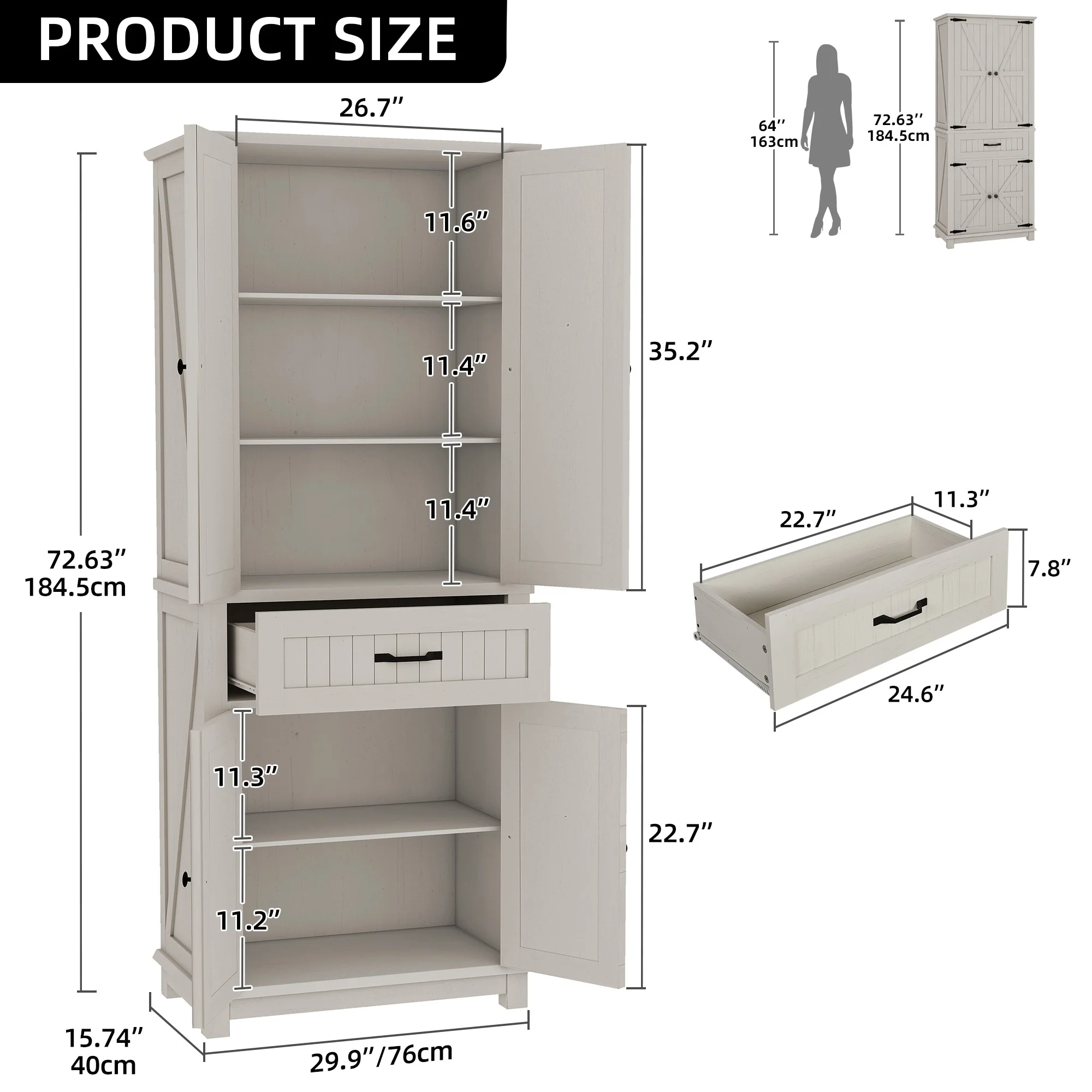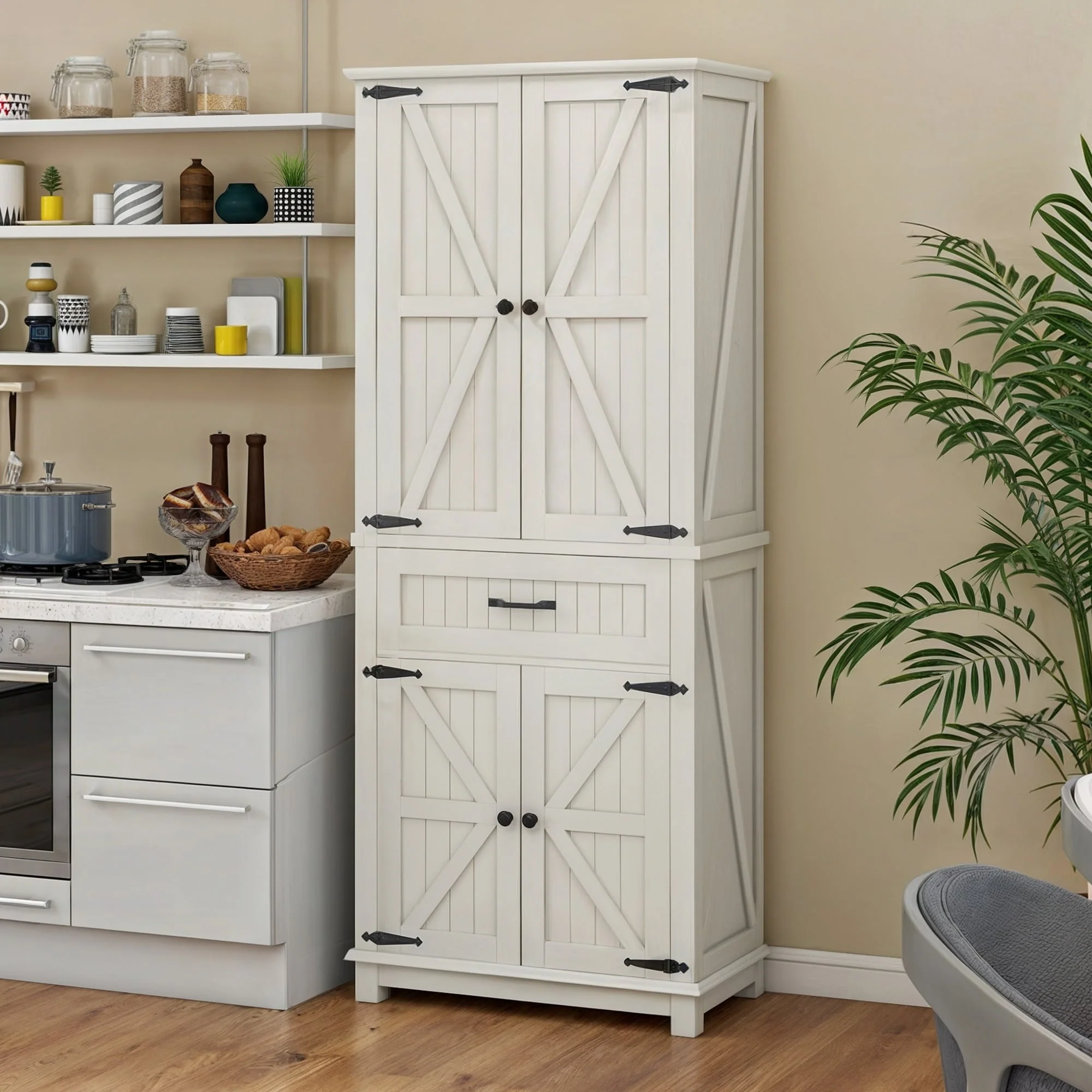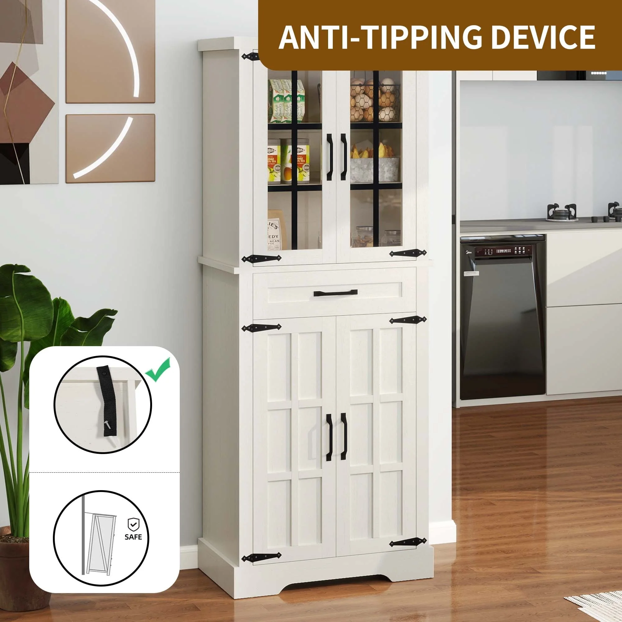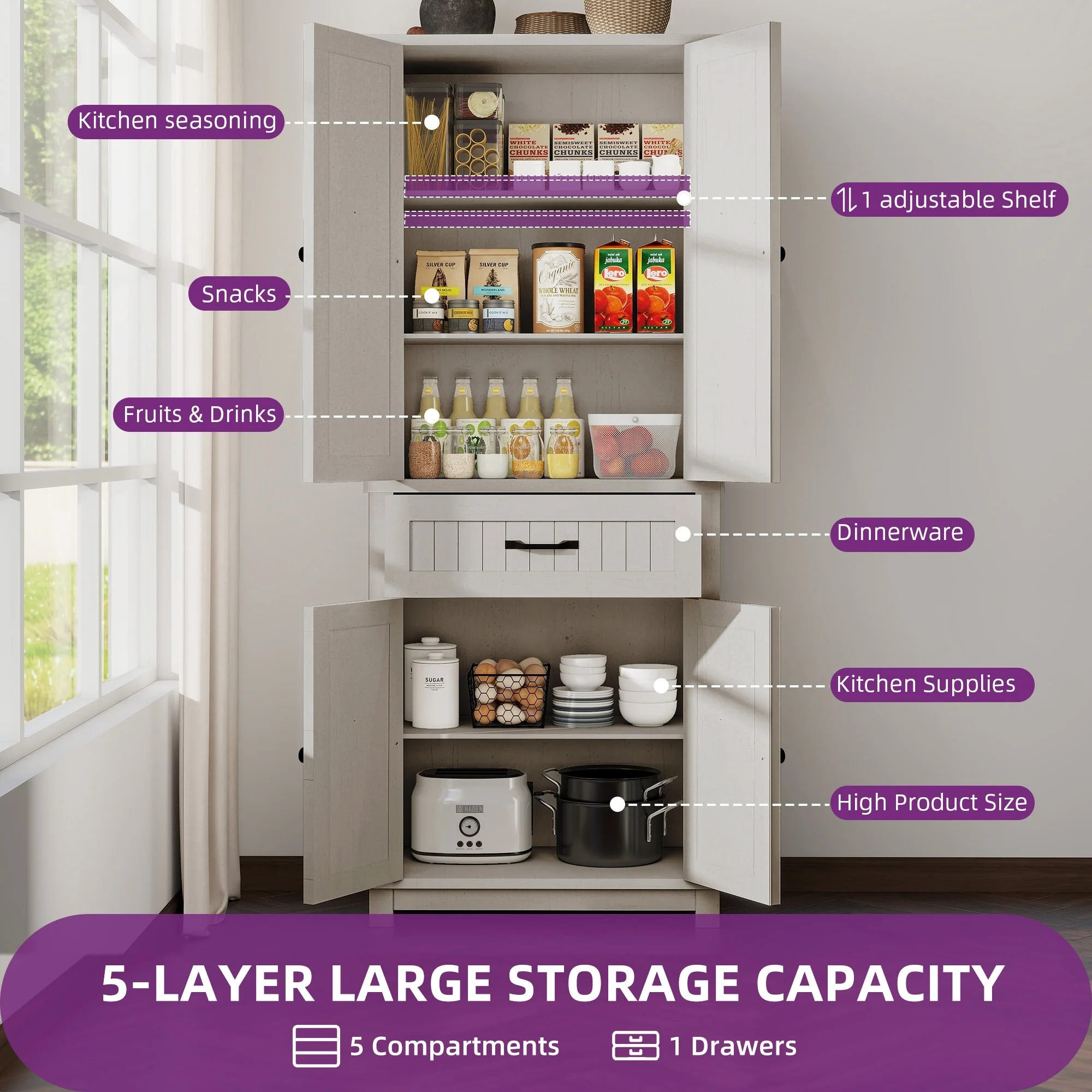 77 Inch Farmhouse Kitchen Pantry, Freestanding Tall Cupboard Storage Cabinet