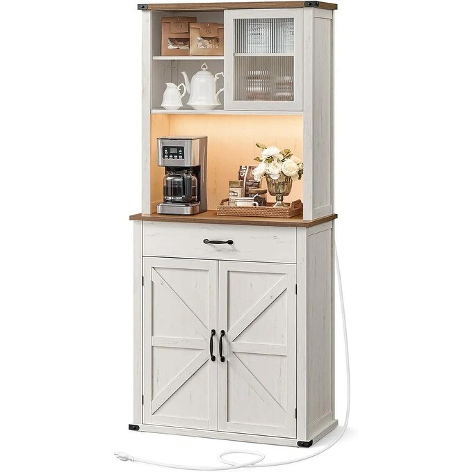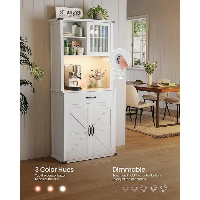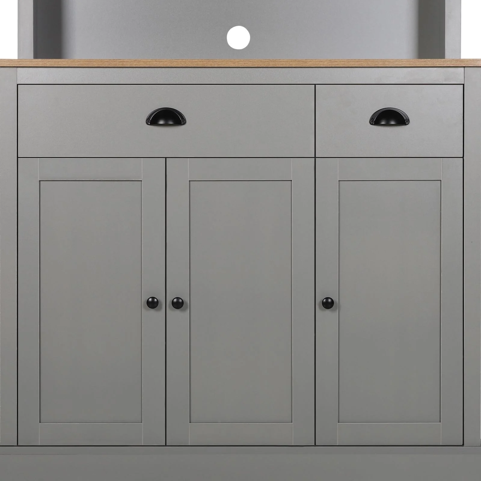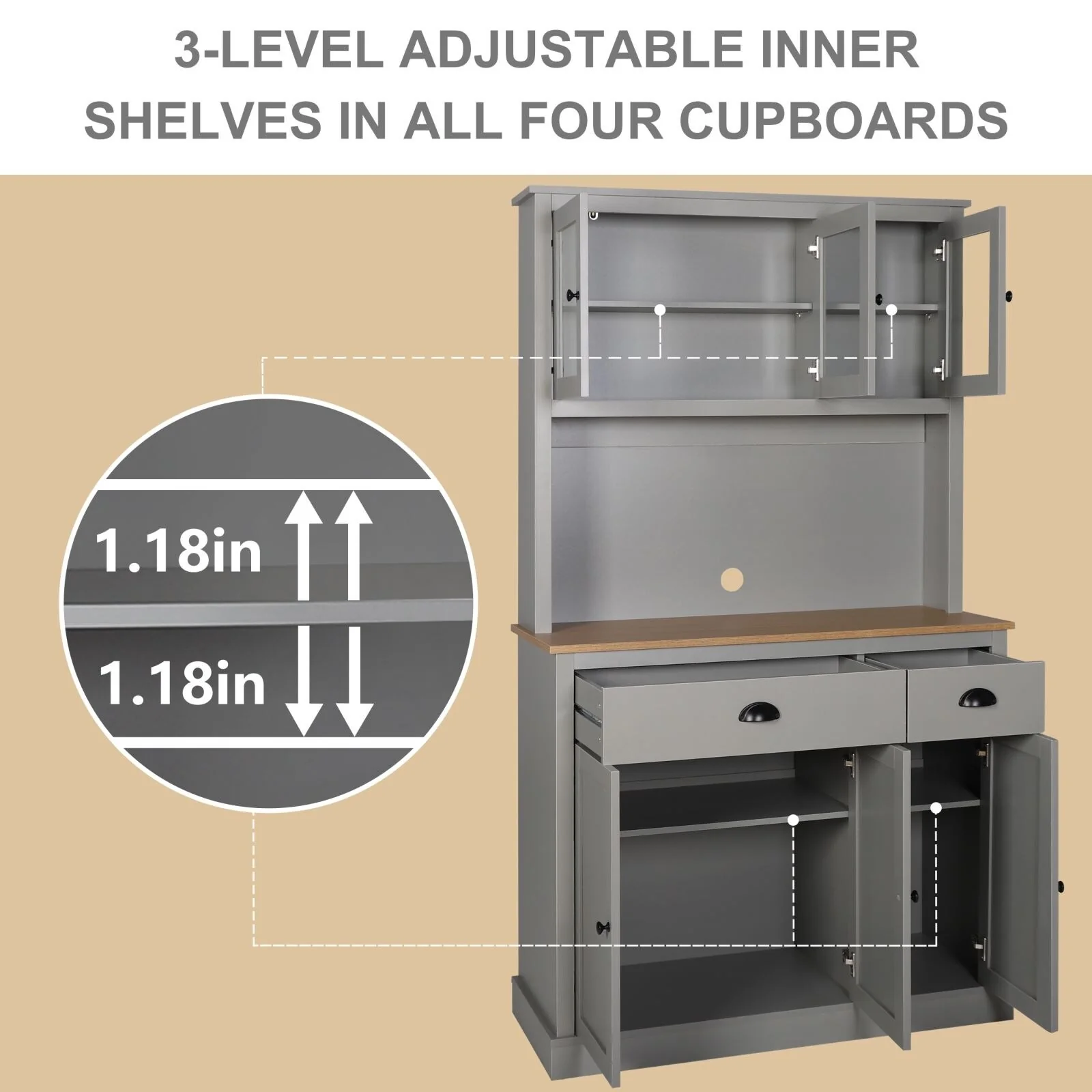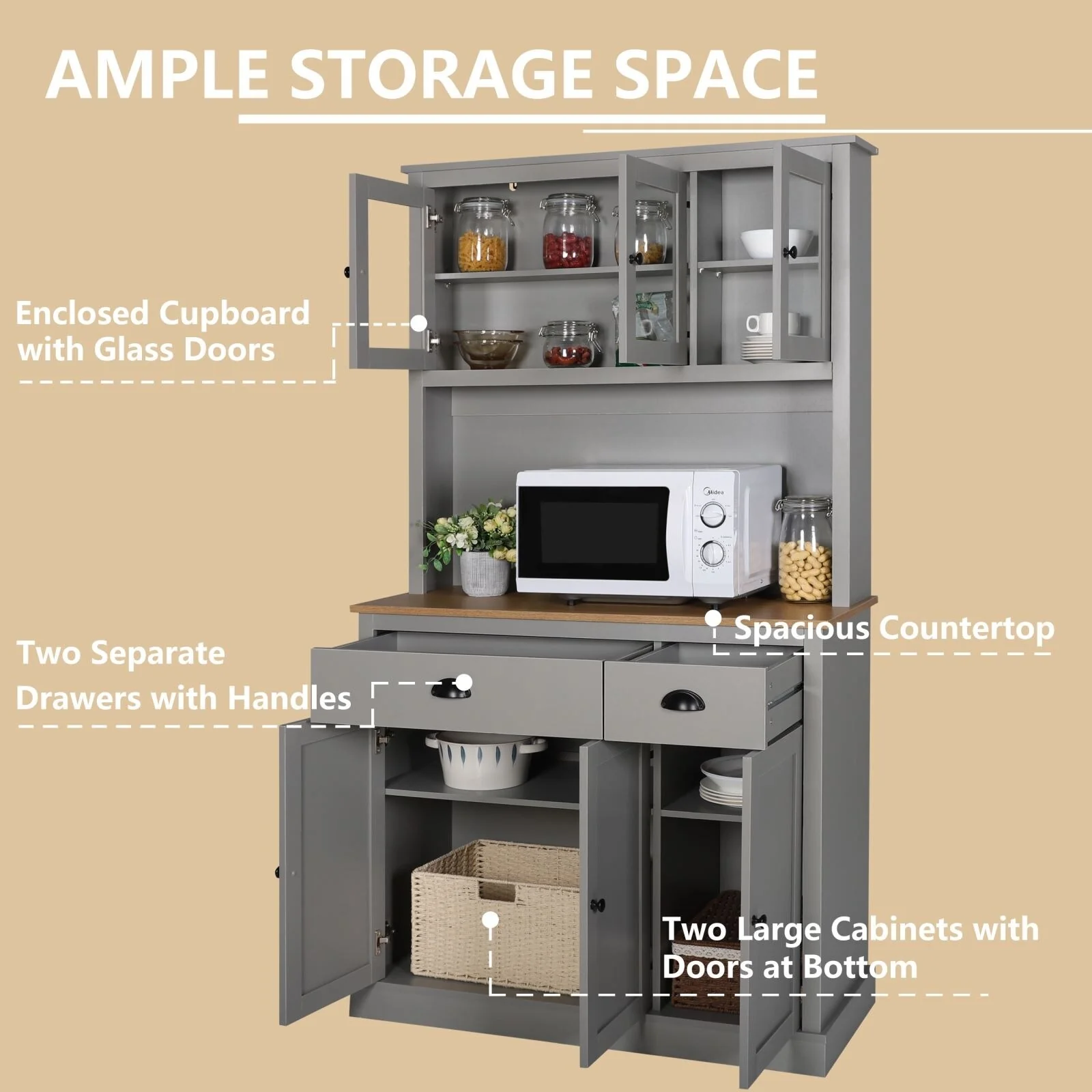 77 Inch Farmhouse Kitchen Pantry, Freestanding Tall Cupboard Storage Cabinet