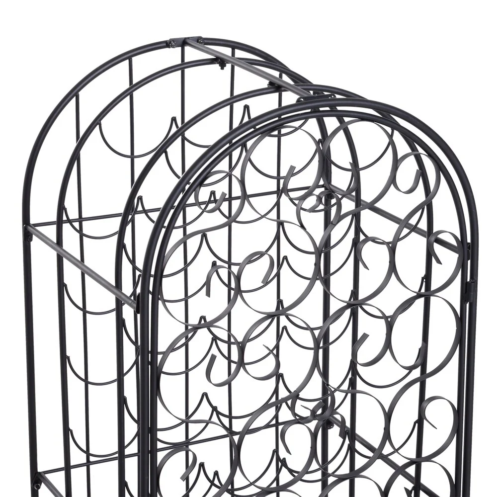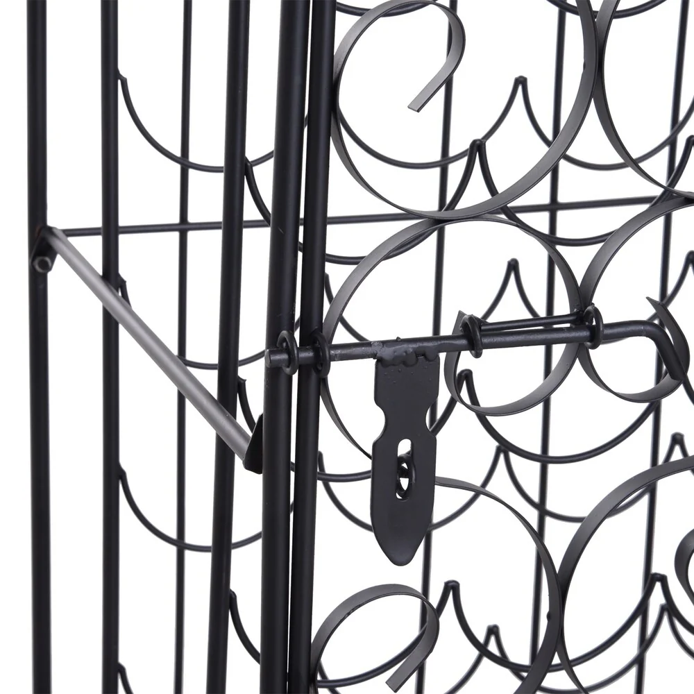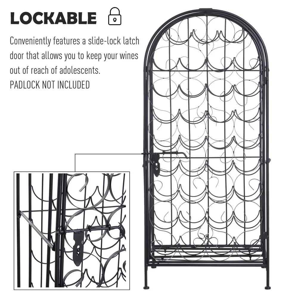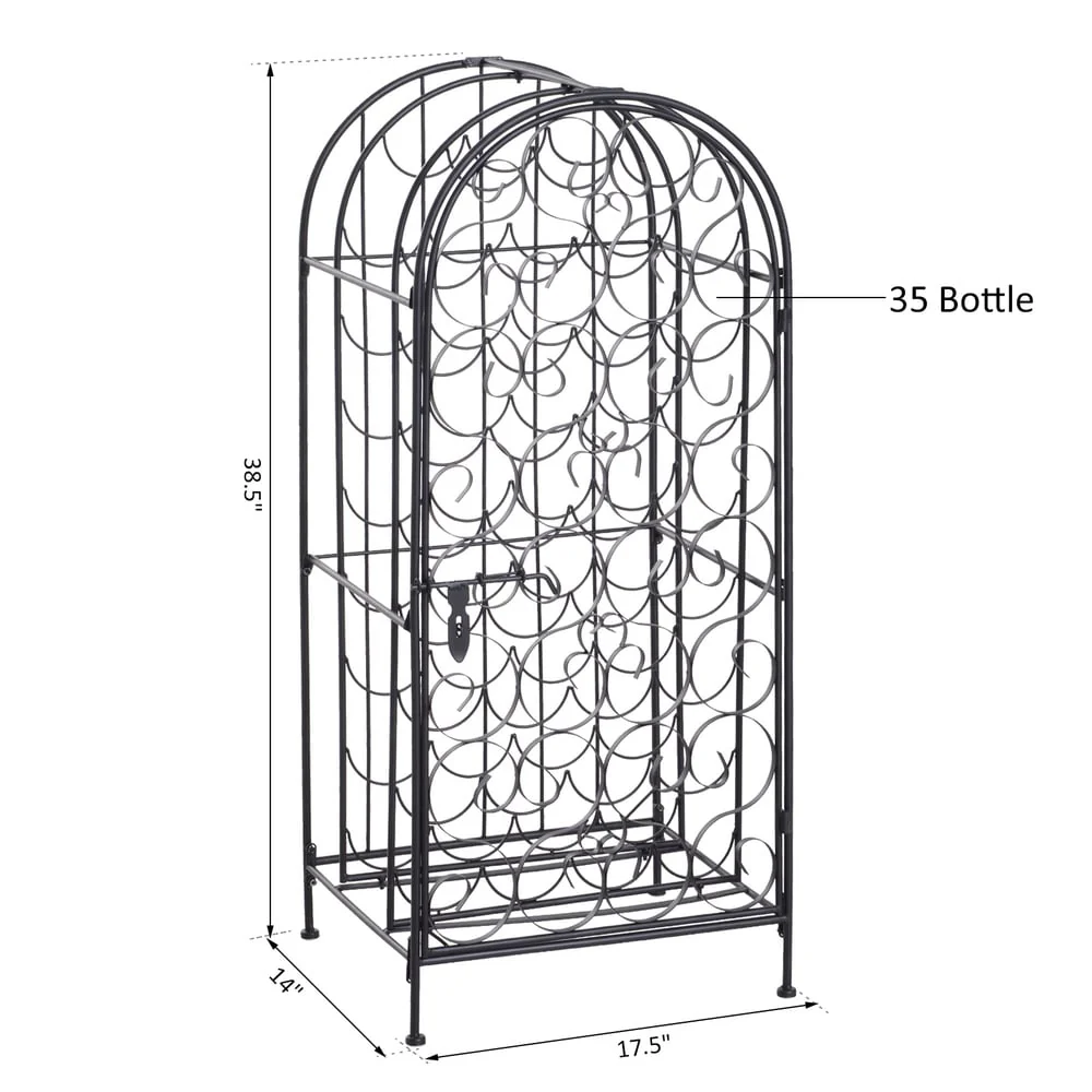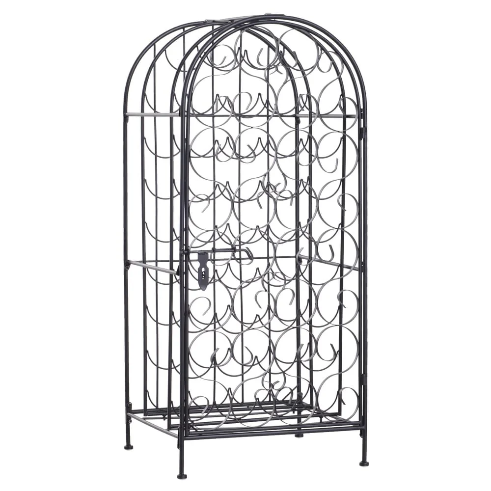 HOMCOM 35 Bottle Wrought Iron Wine Rack Jail with Lock - Black - 17.5*14*38.5
