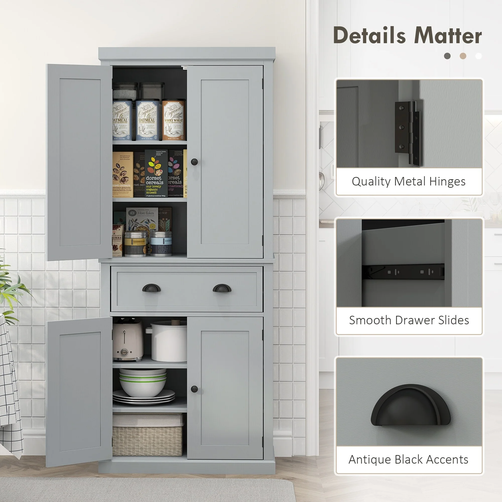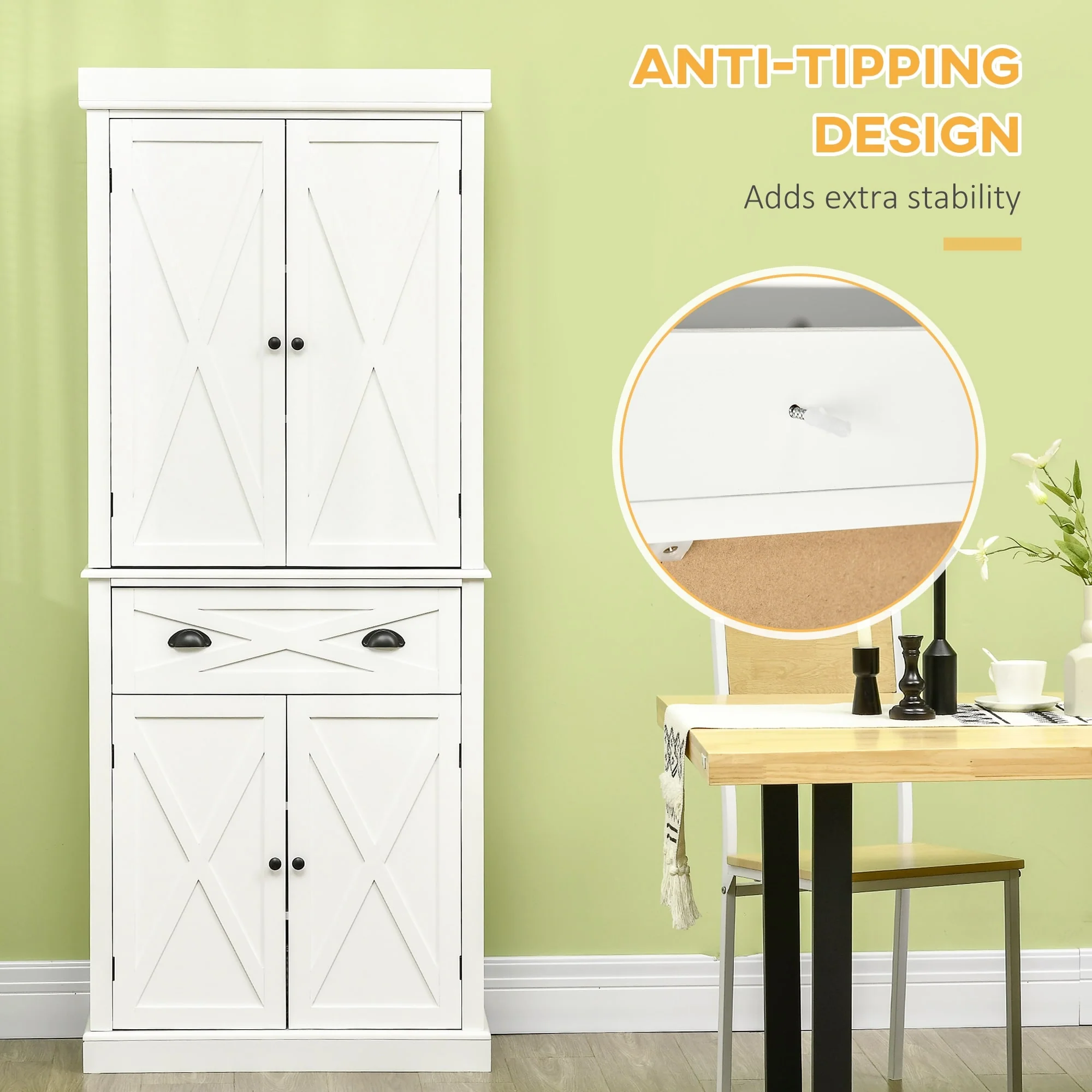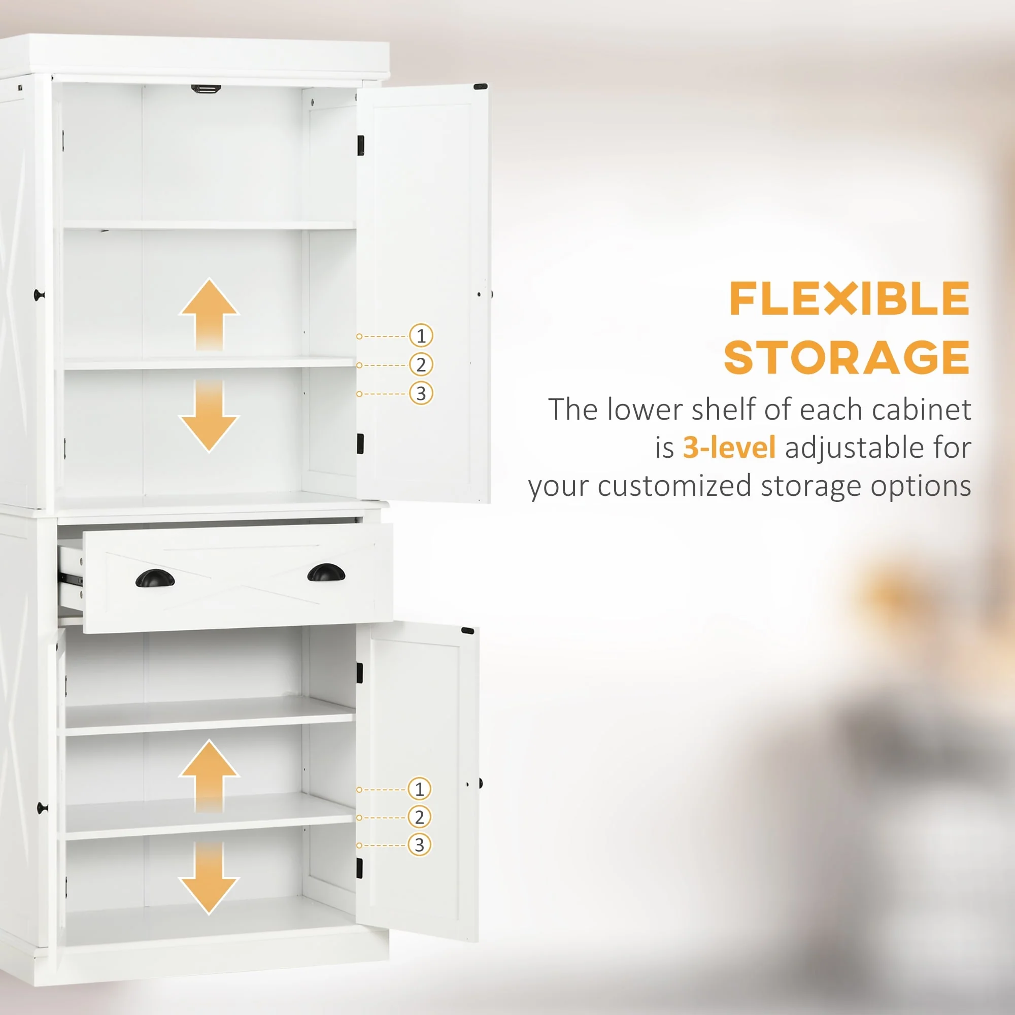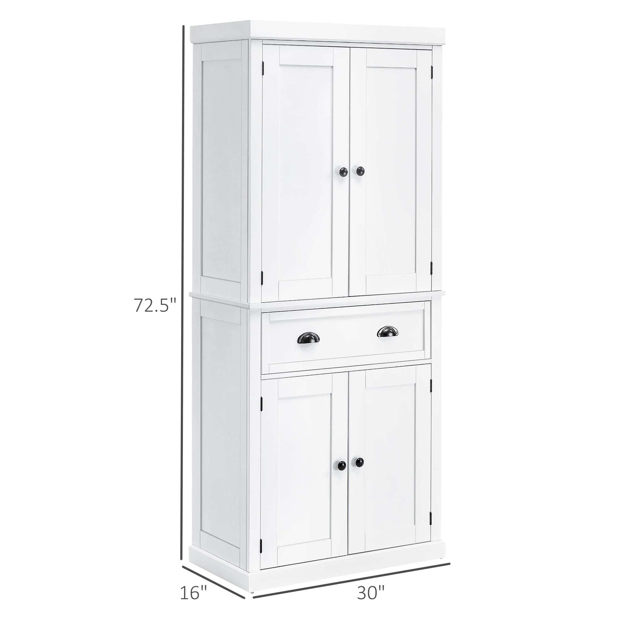 HOMCOM 72" Freestanding Kitchen Pantry Cabinet, Tall Storage Cabinet with 2 Door Cupboards, Drawer and Adjustable Shelves