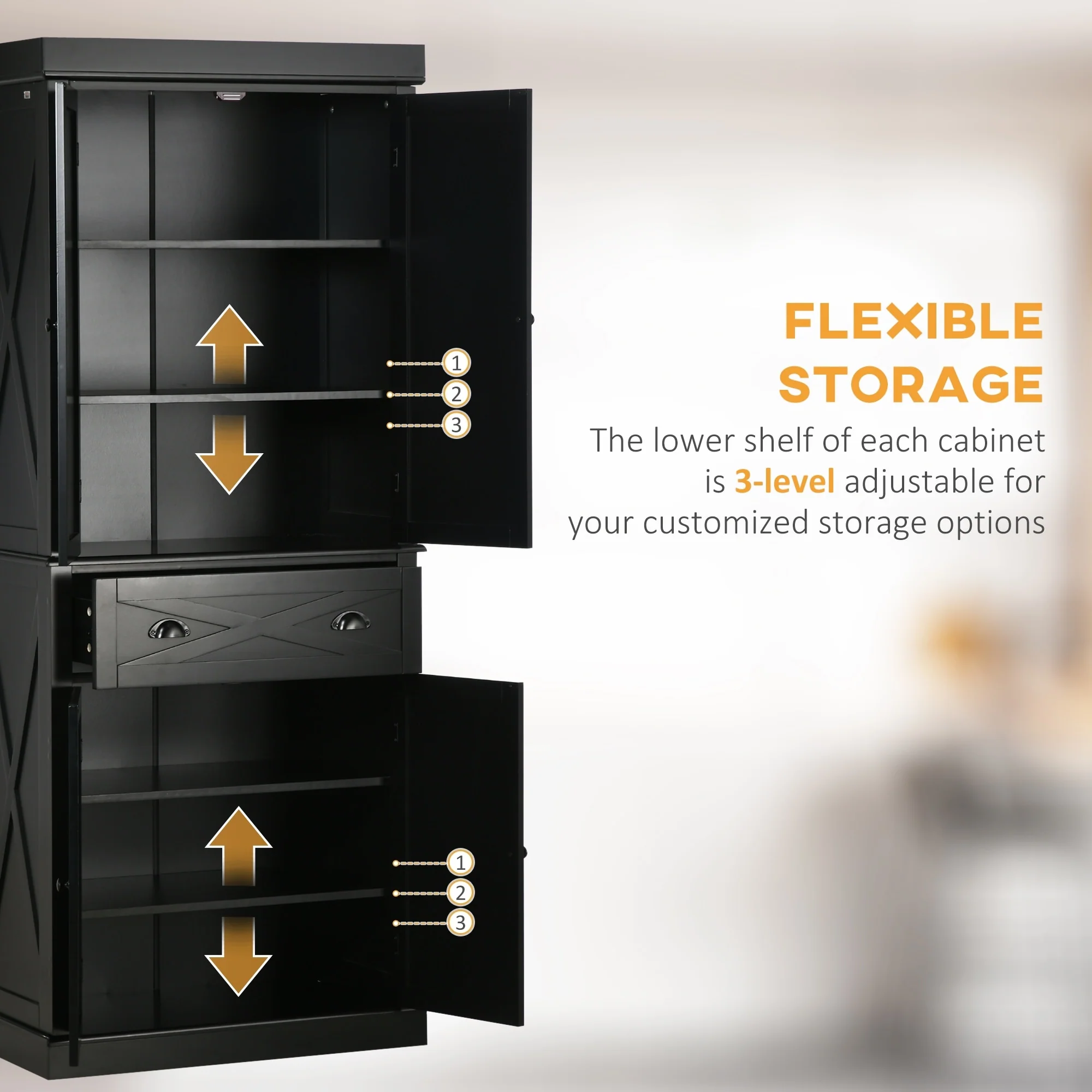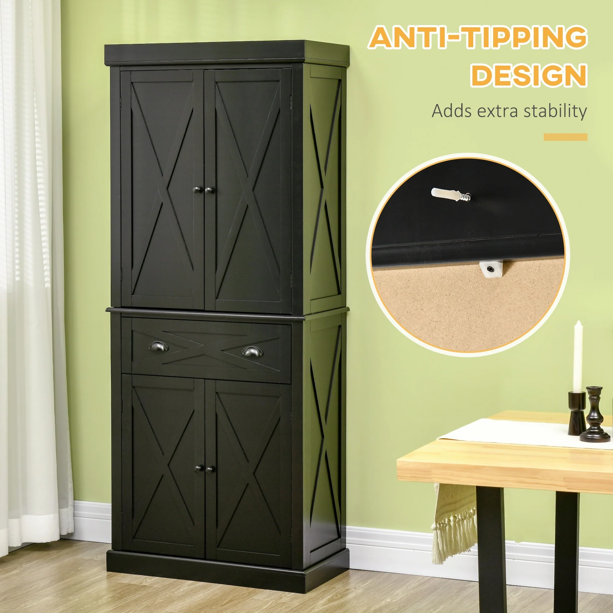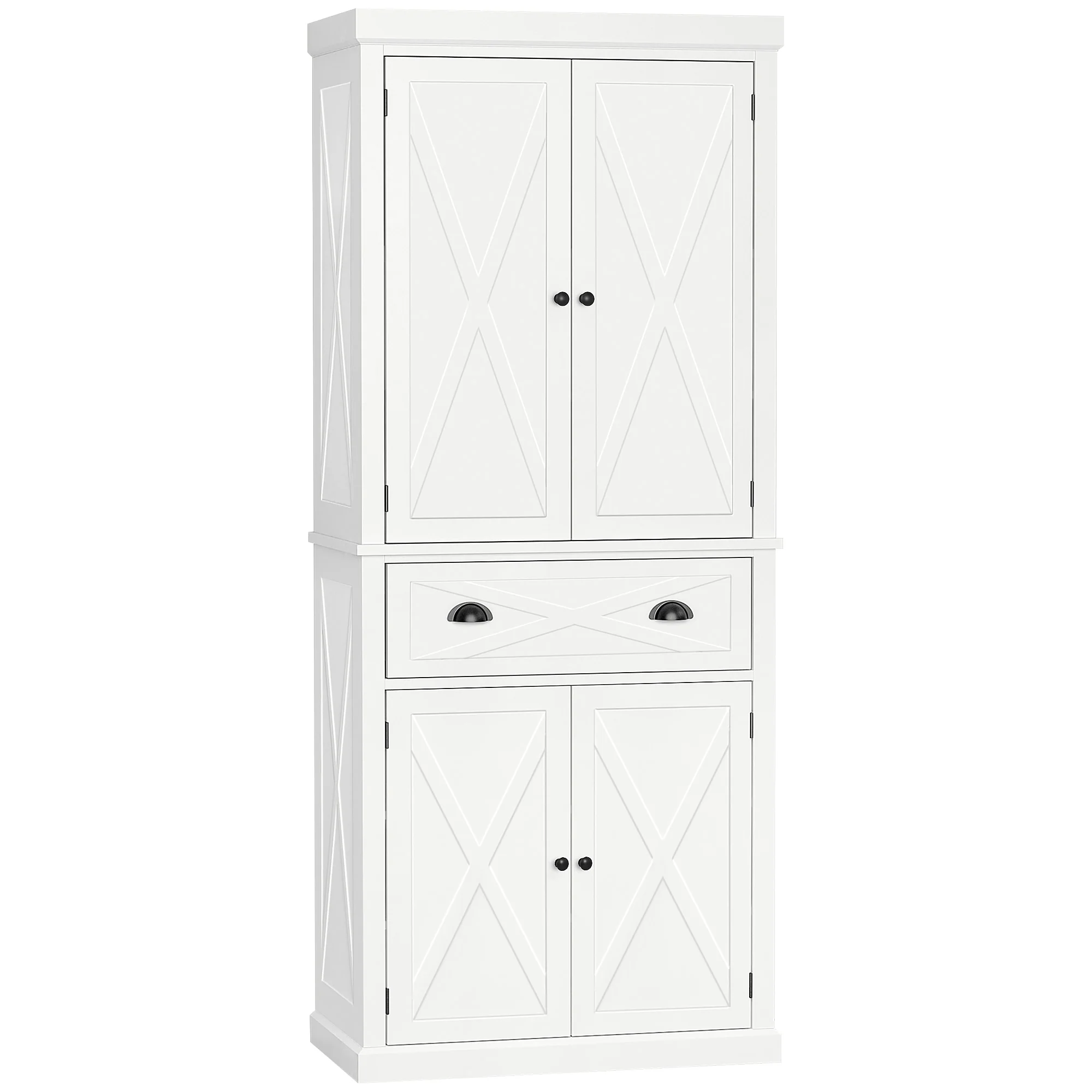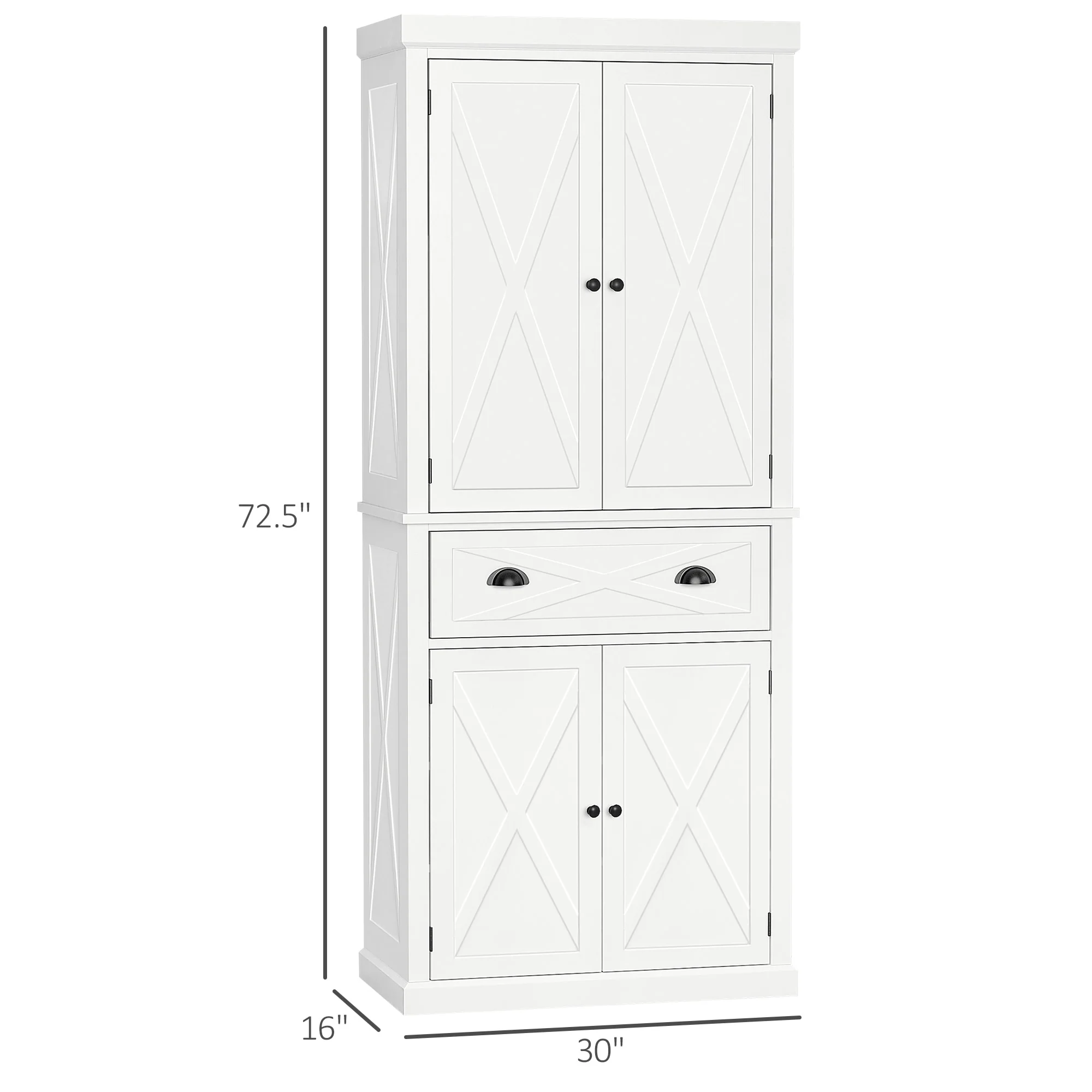 HOMCOM 72" Freestanding Kitchen Pantry Cabinet, Tall Storage Cabinet with 2 Door Cupboards, Drawer and Adjustable Shelves