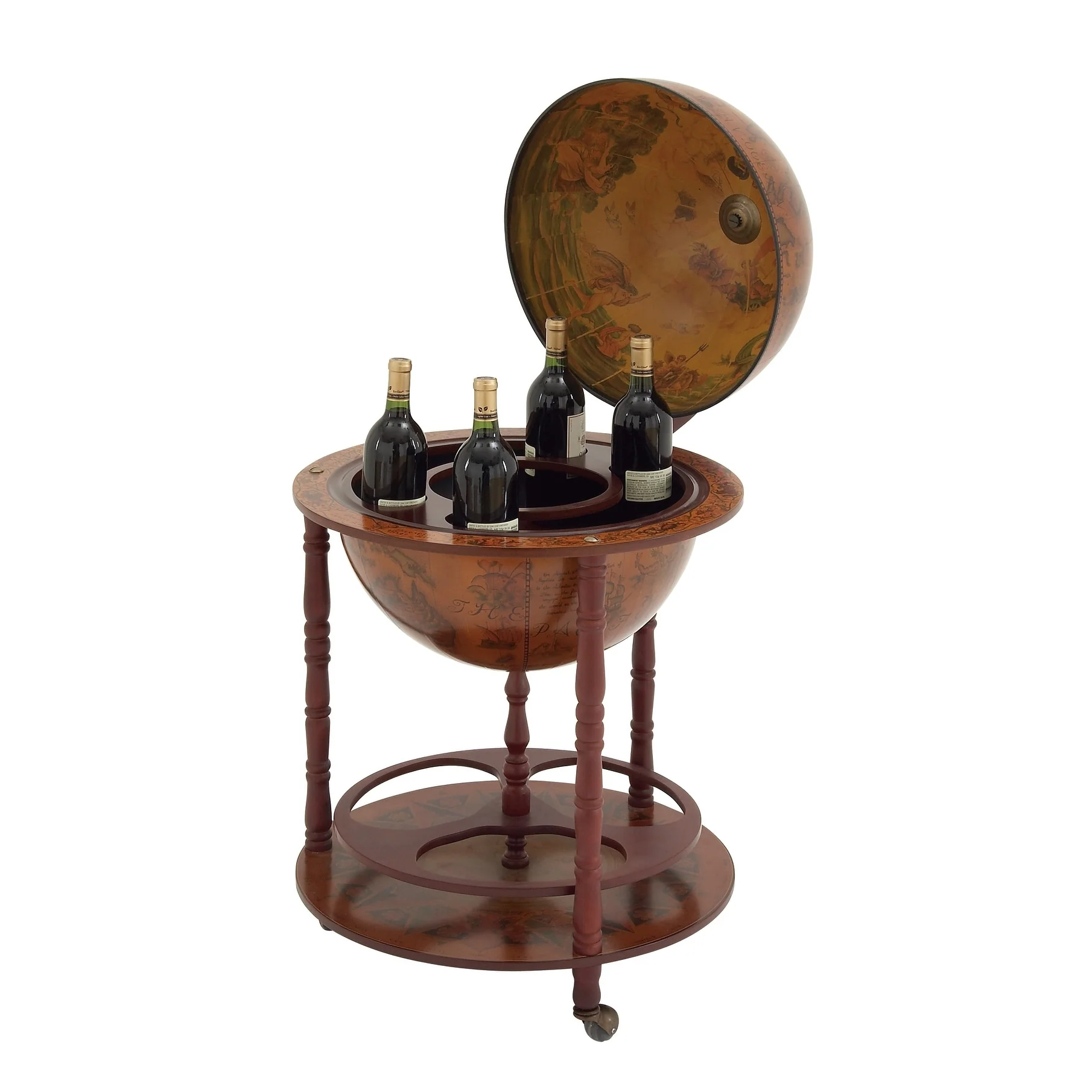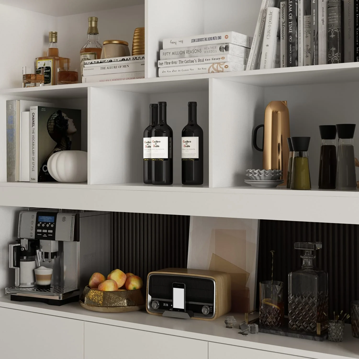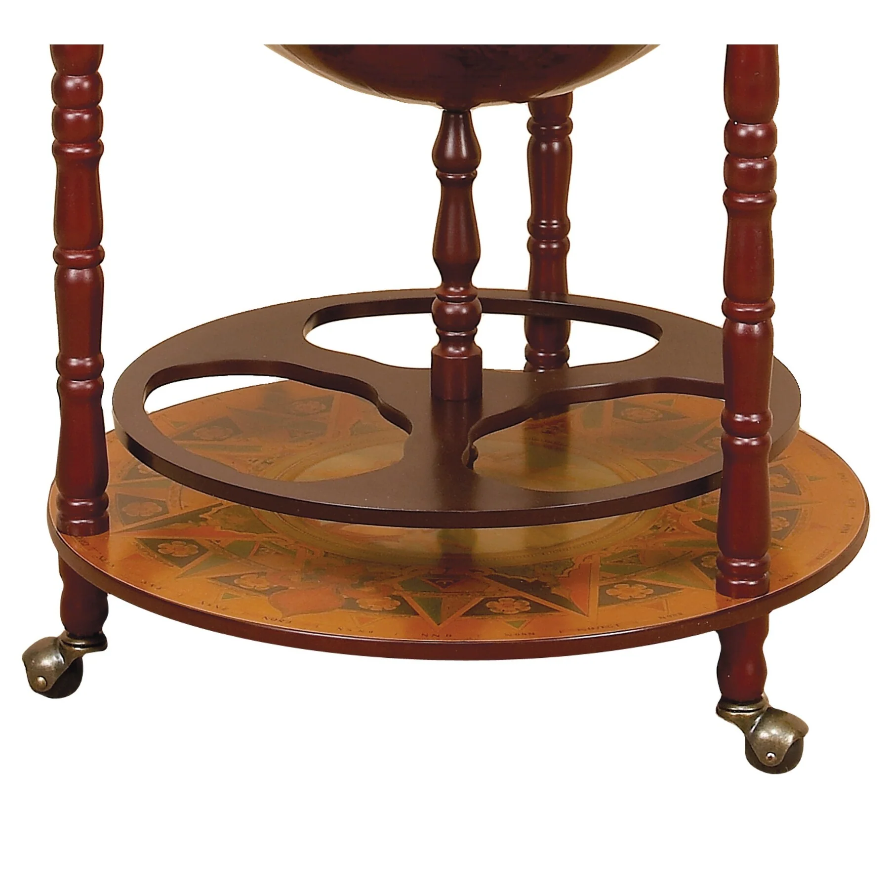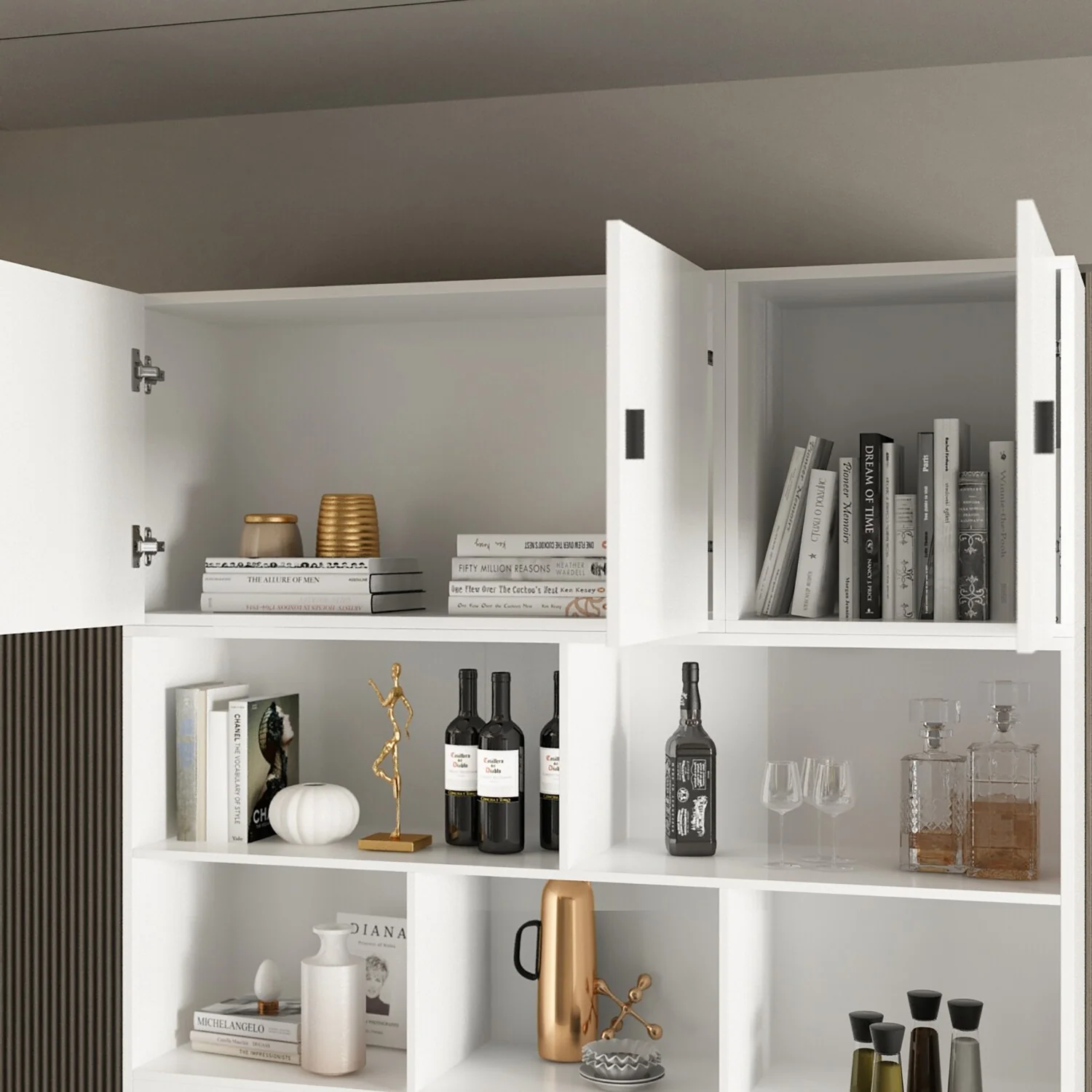 32" H white bar -coffee cart,living room cabinet storage with 4 wheels, with 6 bottle racks, a central shelf covered by 1 door