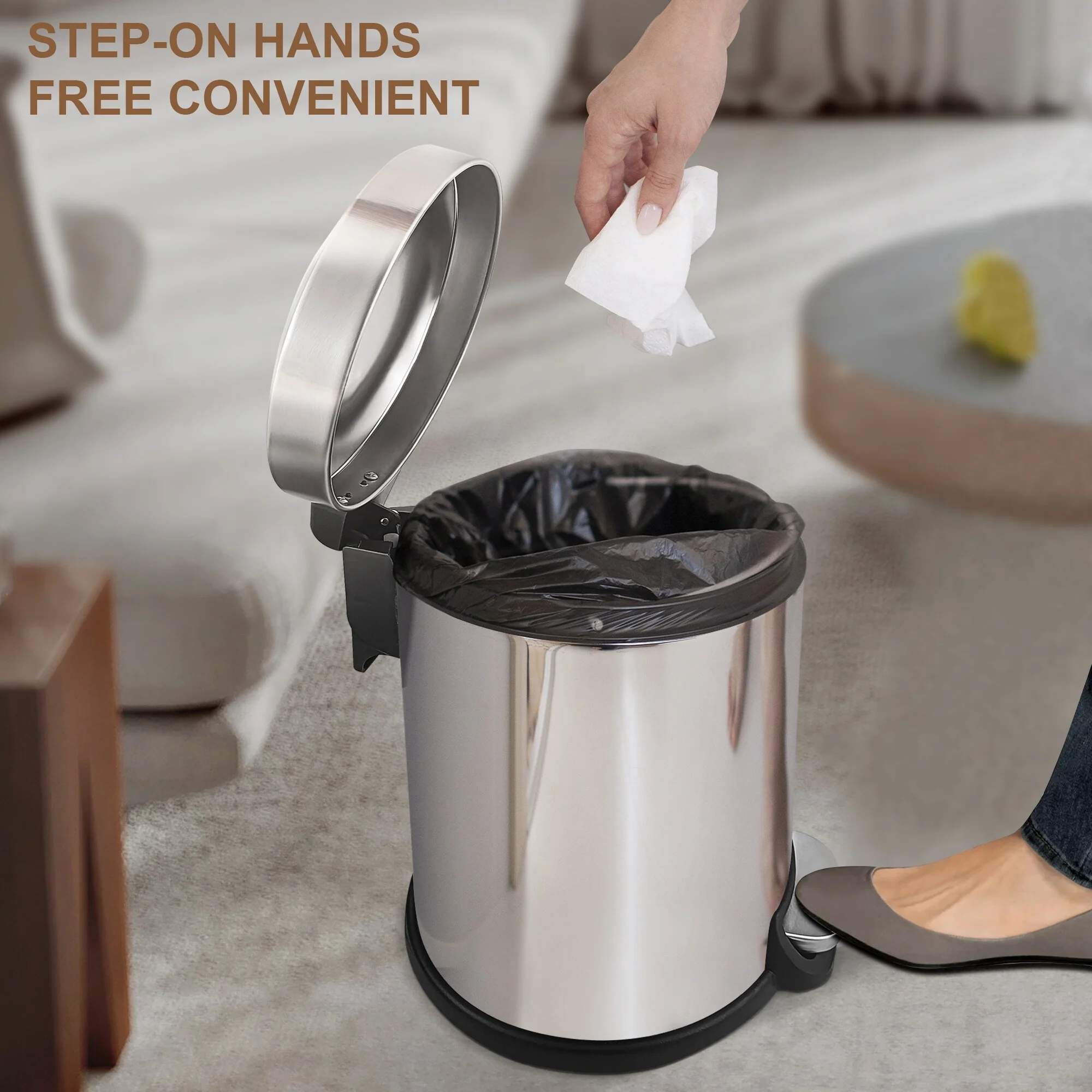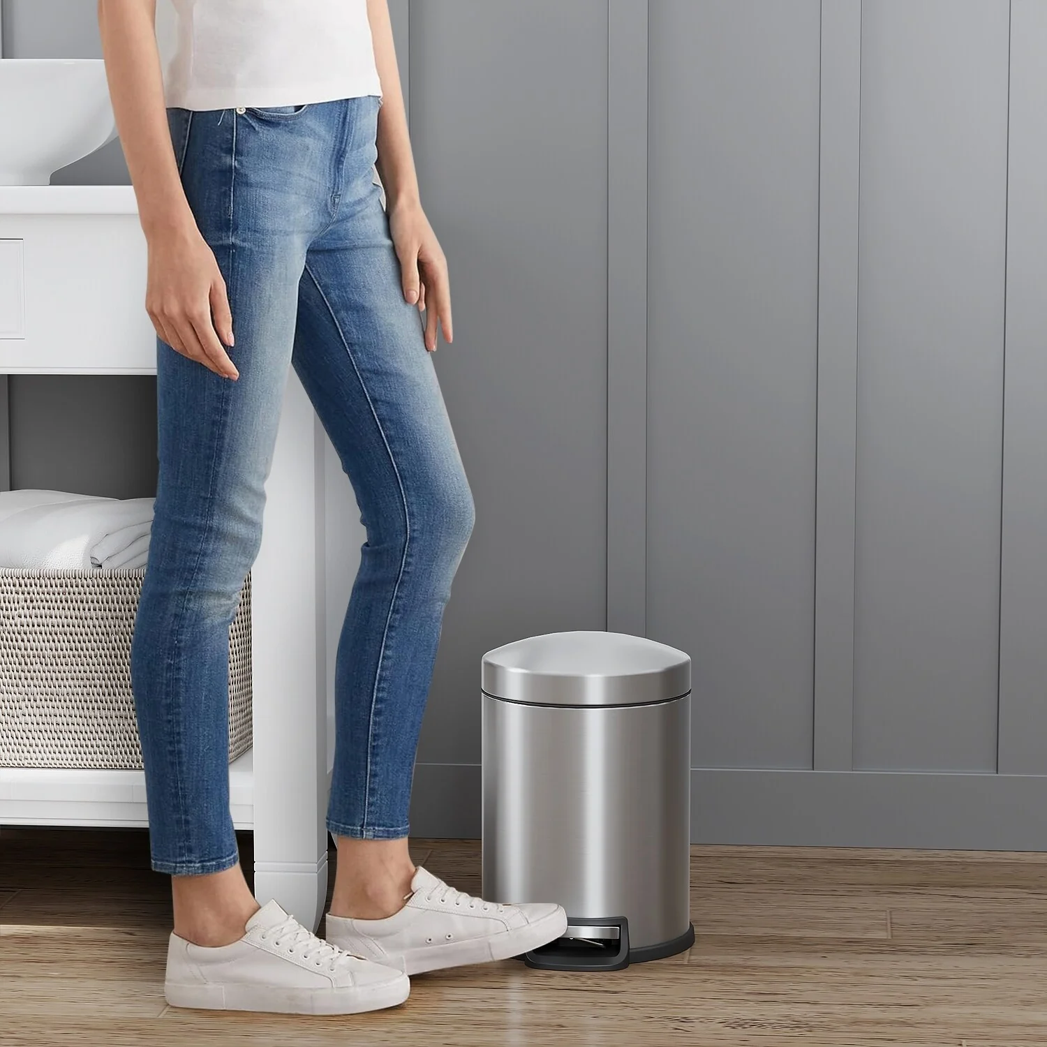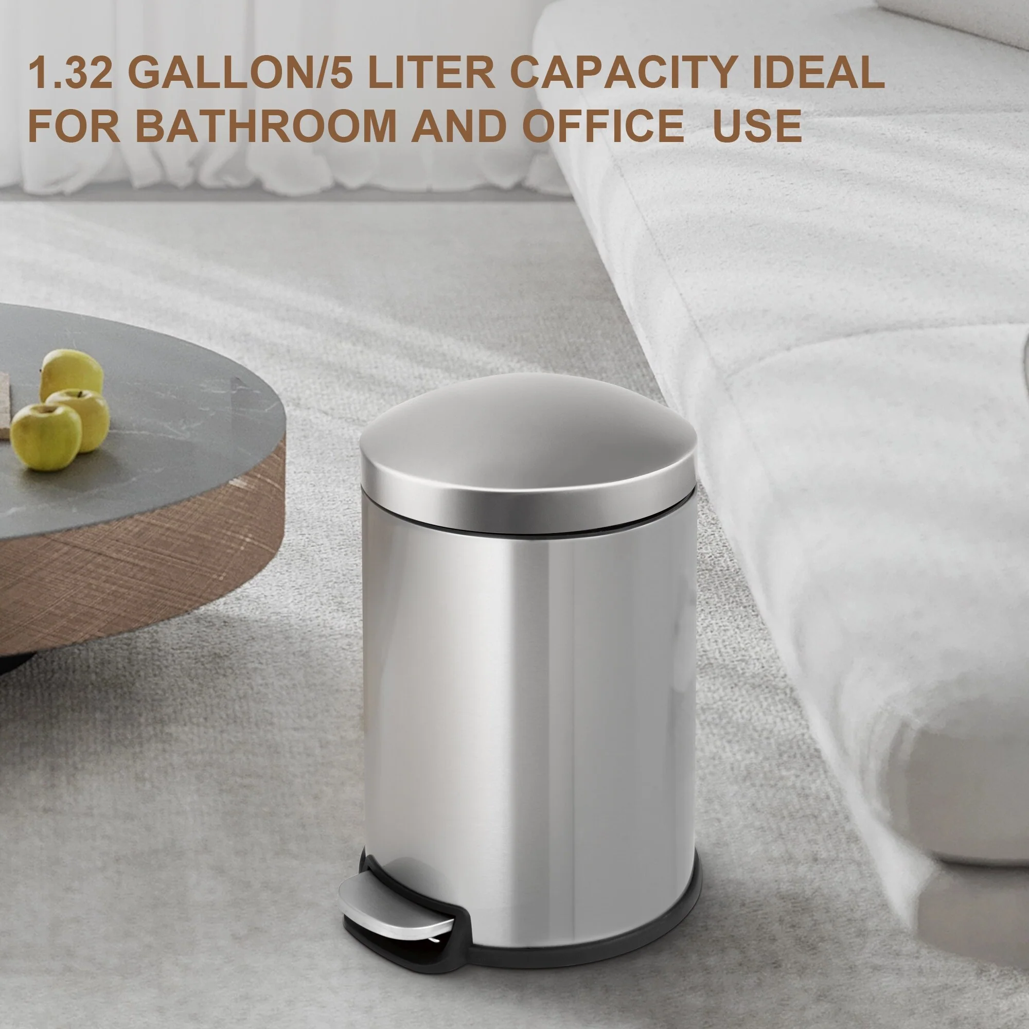 Innovaze 1.32 Gal./3 Liter Stainless Steel Round Step-on Trash Can for Bathroom and Office