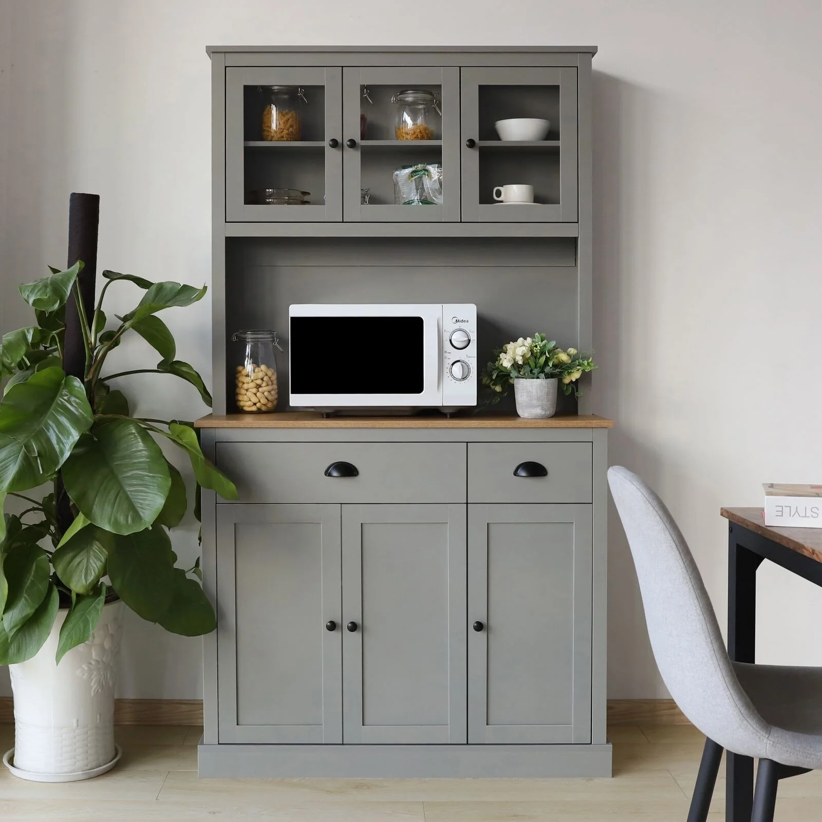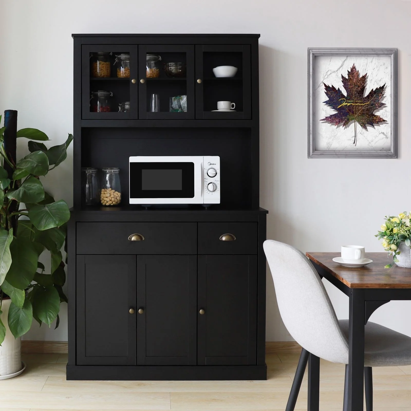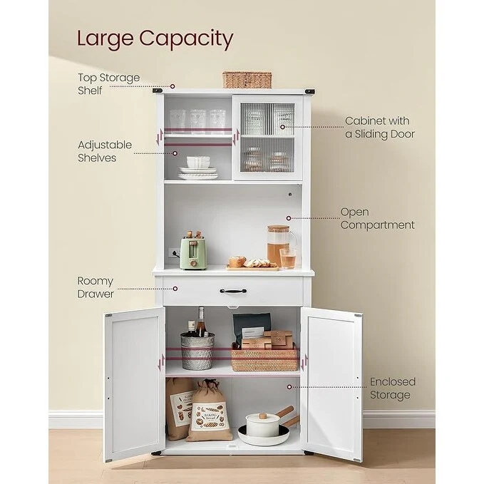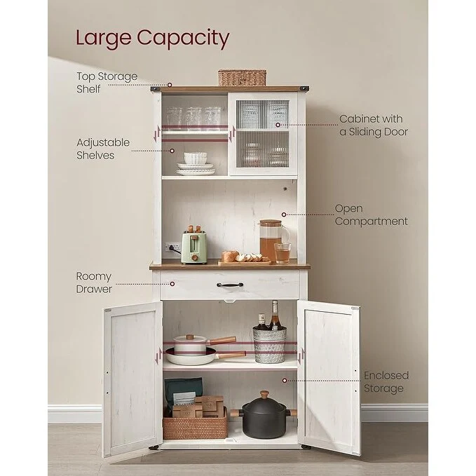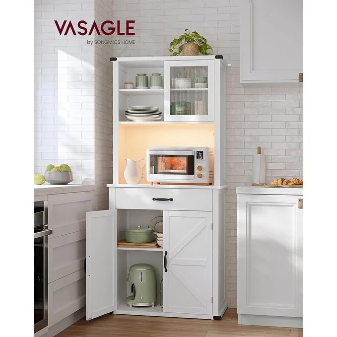 VEIKOUS Pantry Kitchen Cabinet Storage with Microwave Stand and 3 Adjustable Shelves