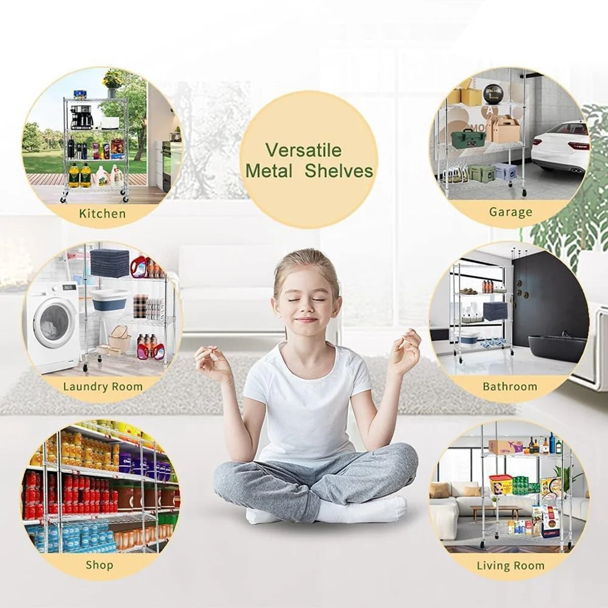 SONGMICS 3-Tier Metal Storage Rack with Wheels, Mesh Shelving Unit with X Side Frames, 23.6-Inch Width