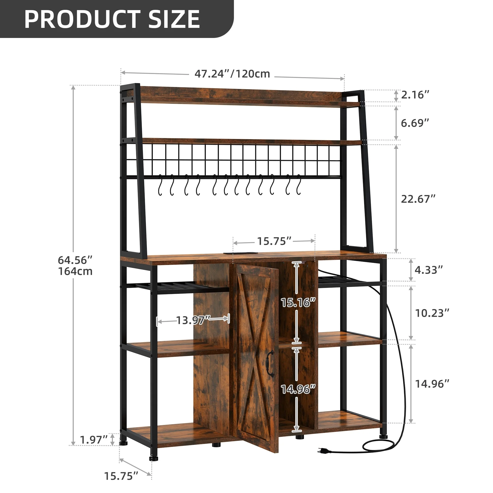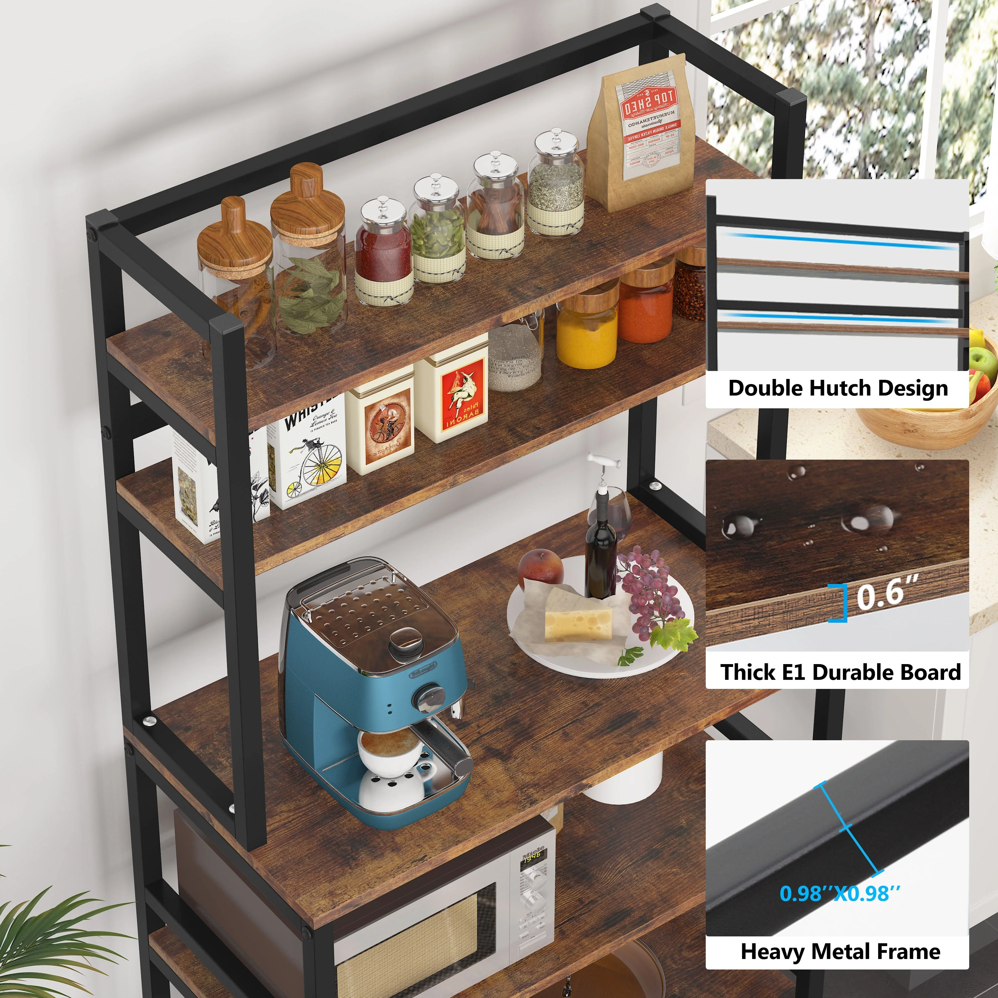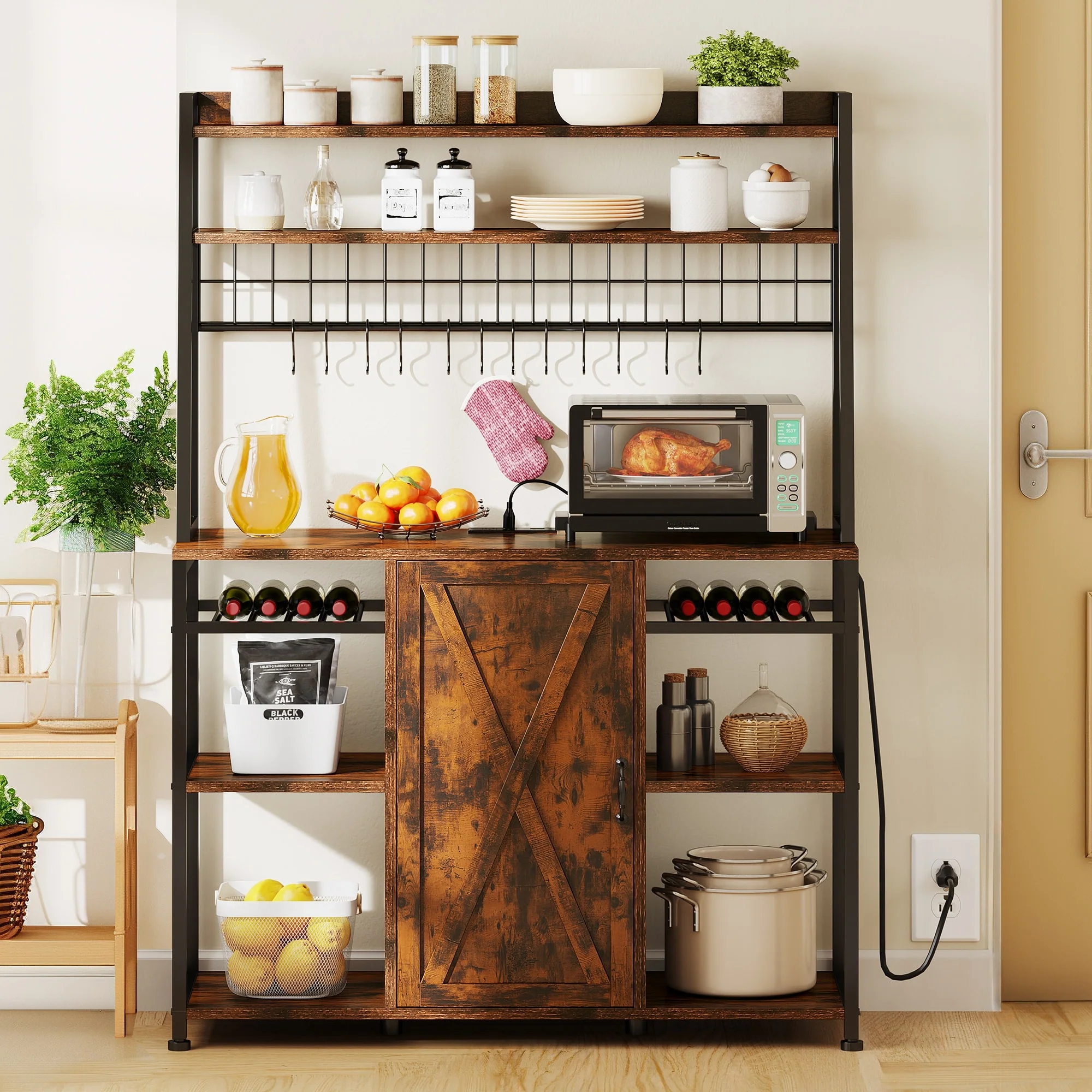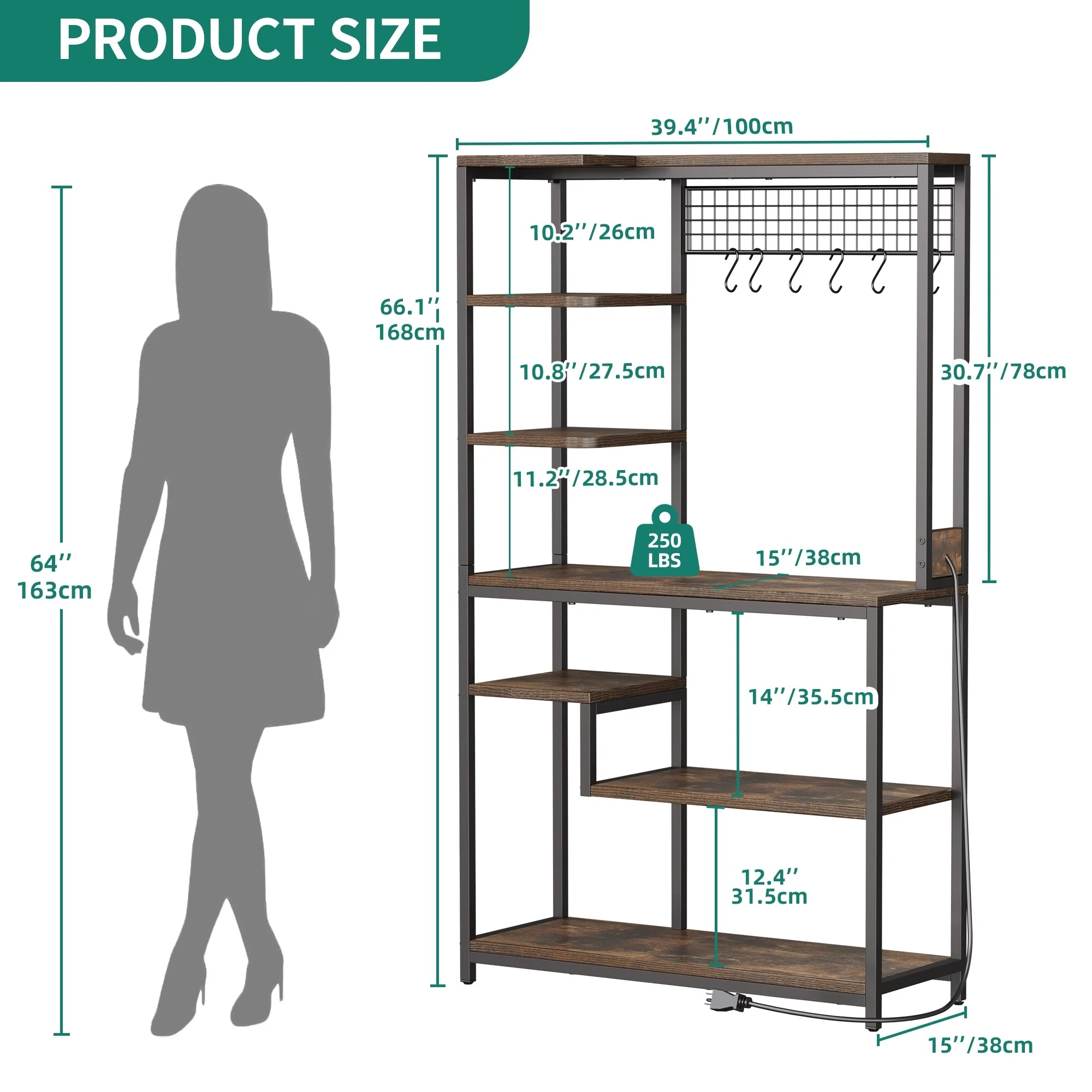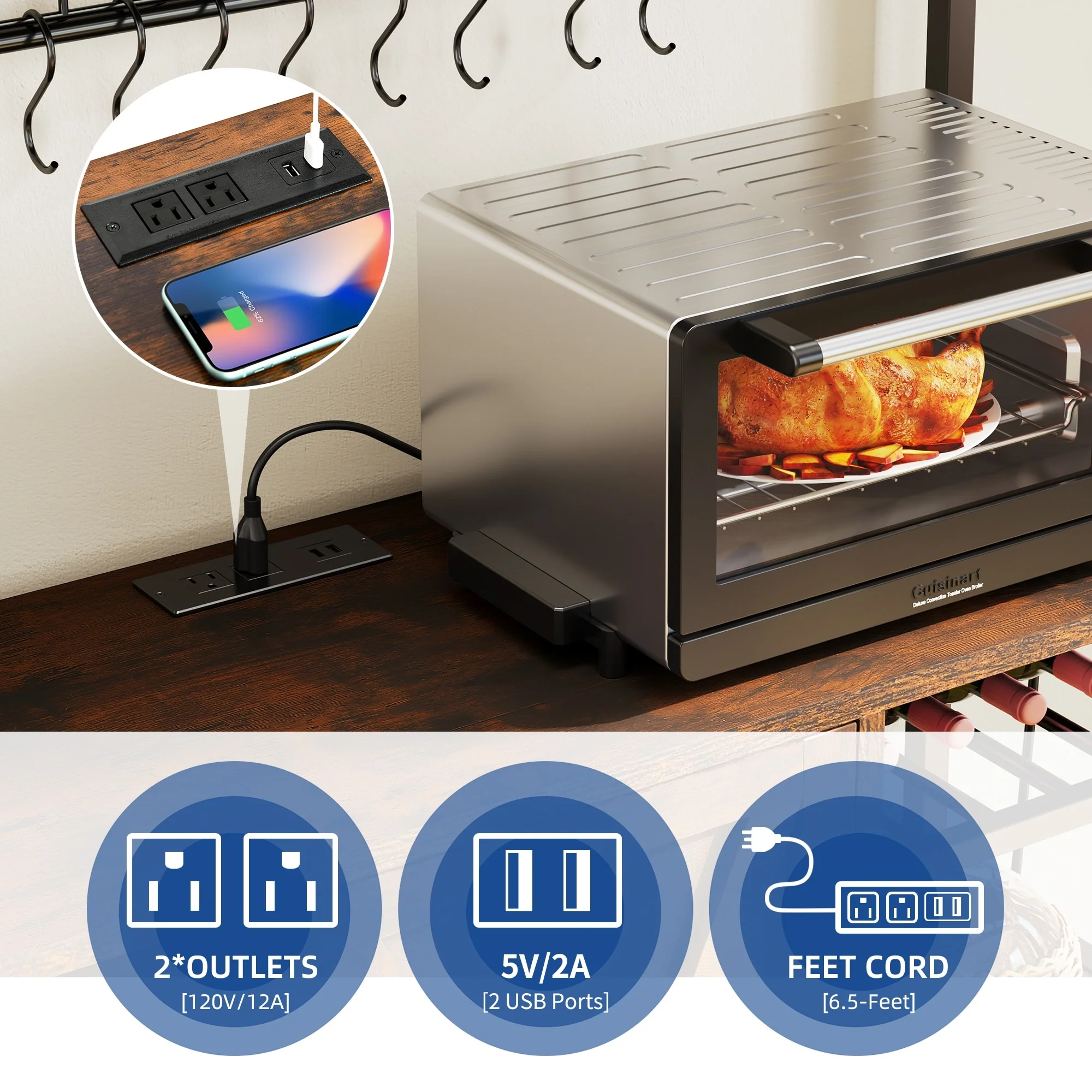 Yaheetech Kitchen Baker's Rack with Outlet Rustic Utility Storage Shelf Unit, Rustic Brown