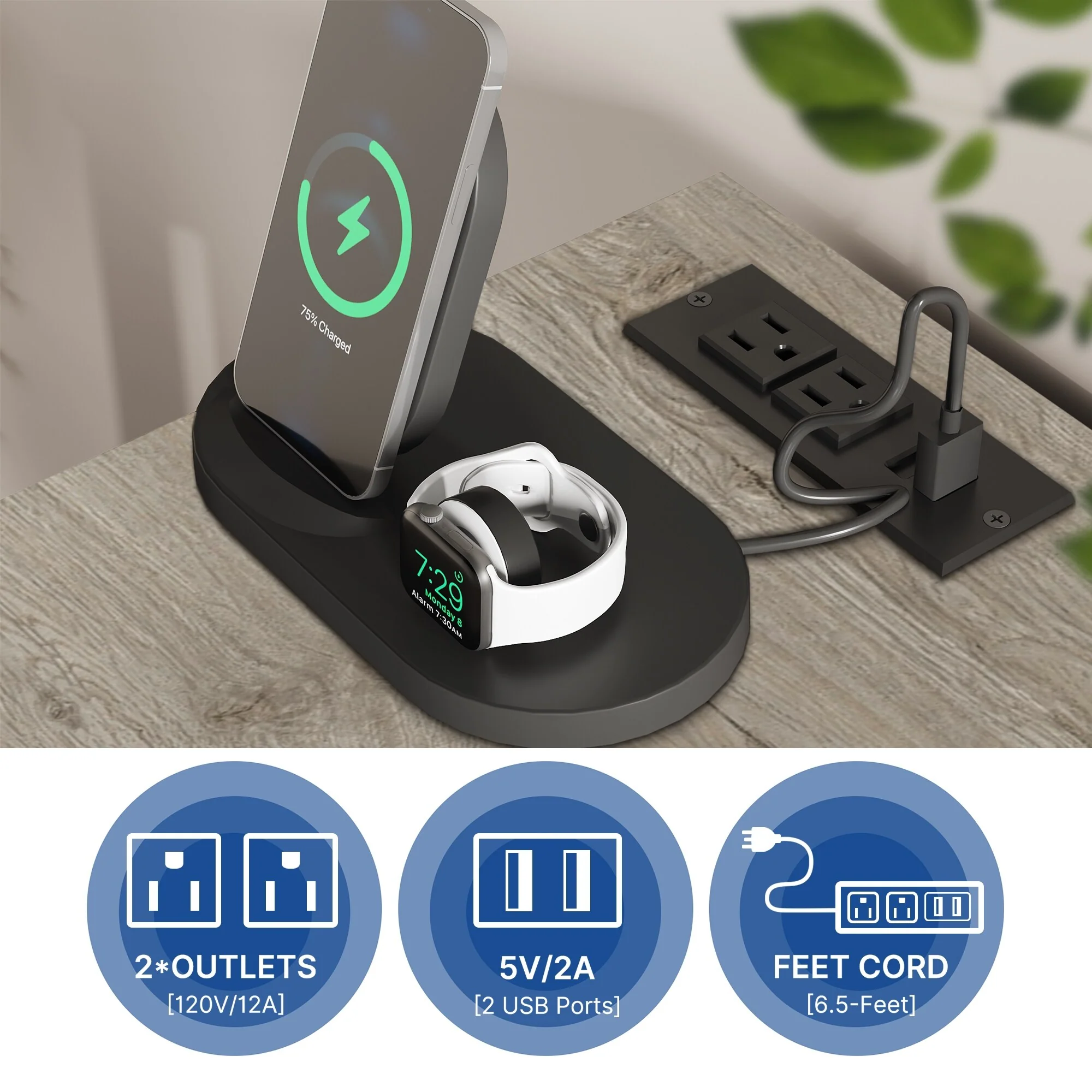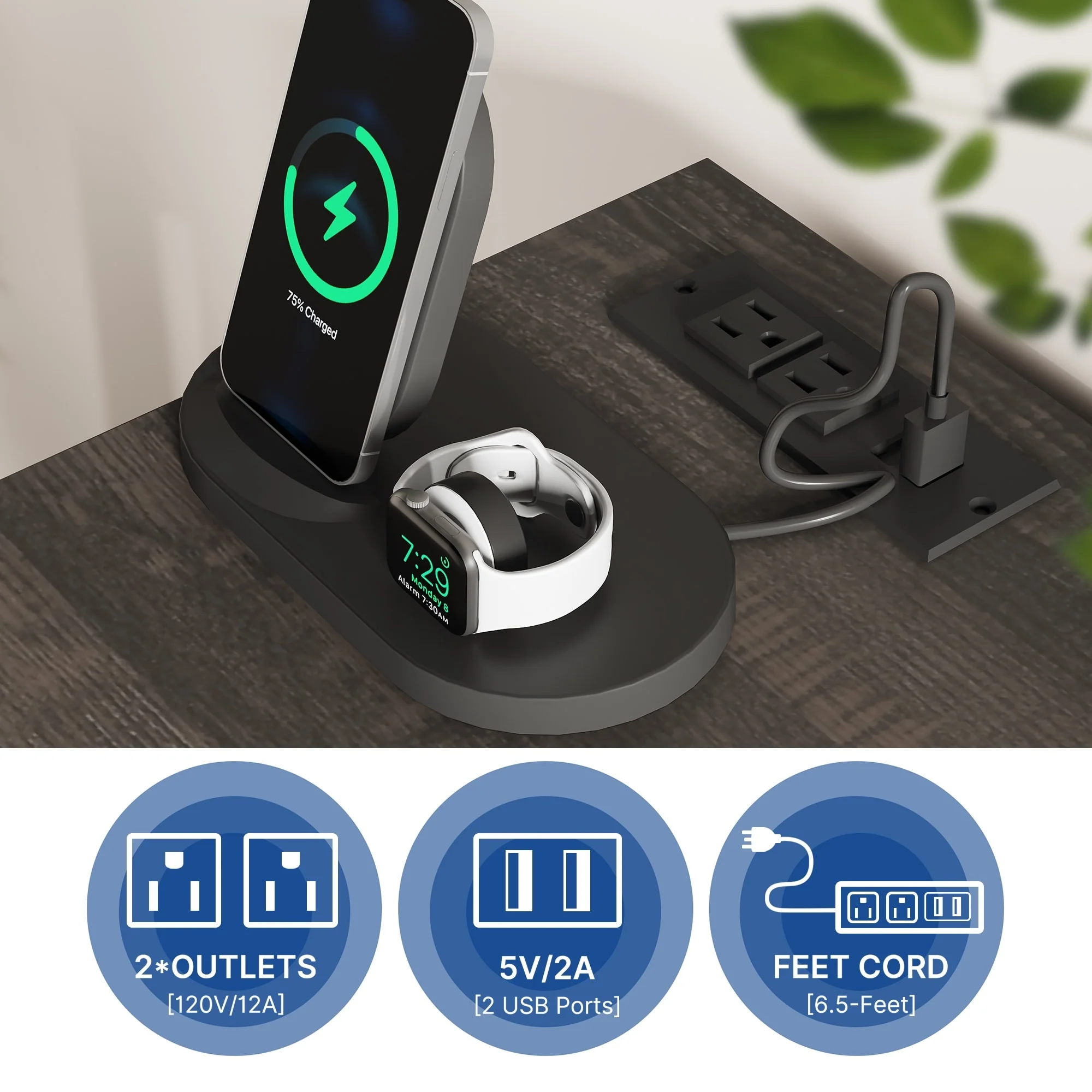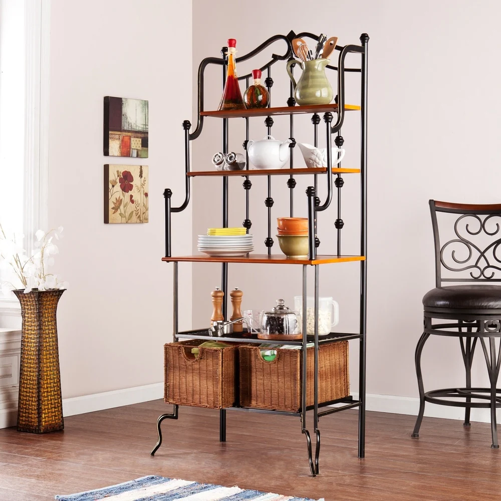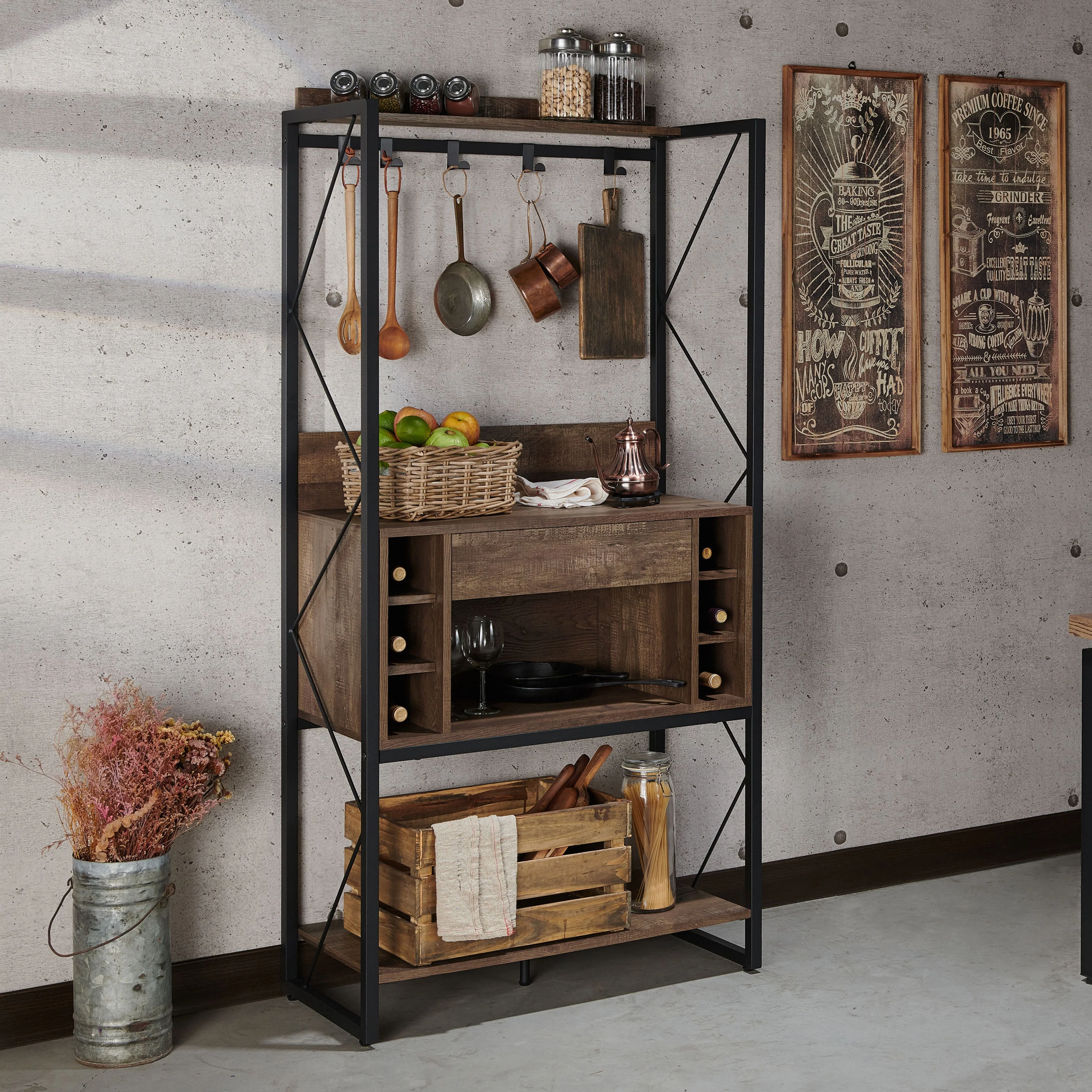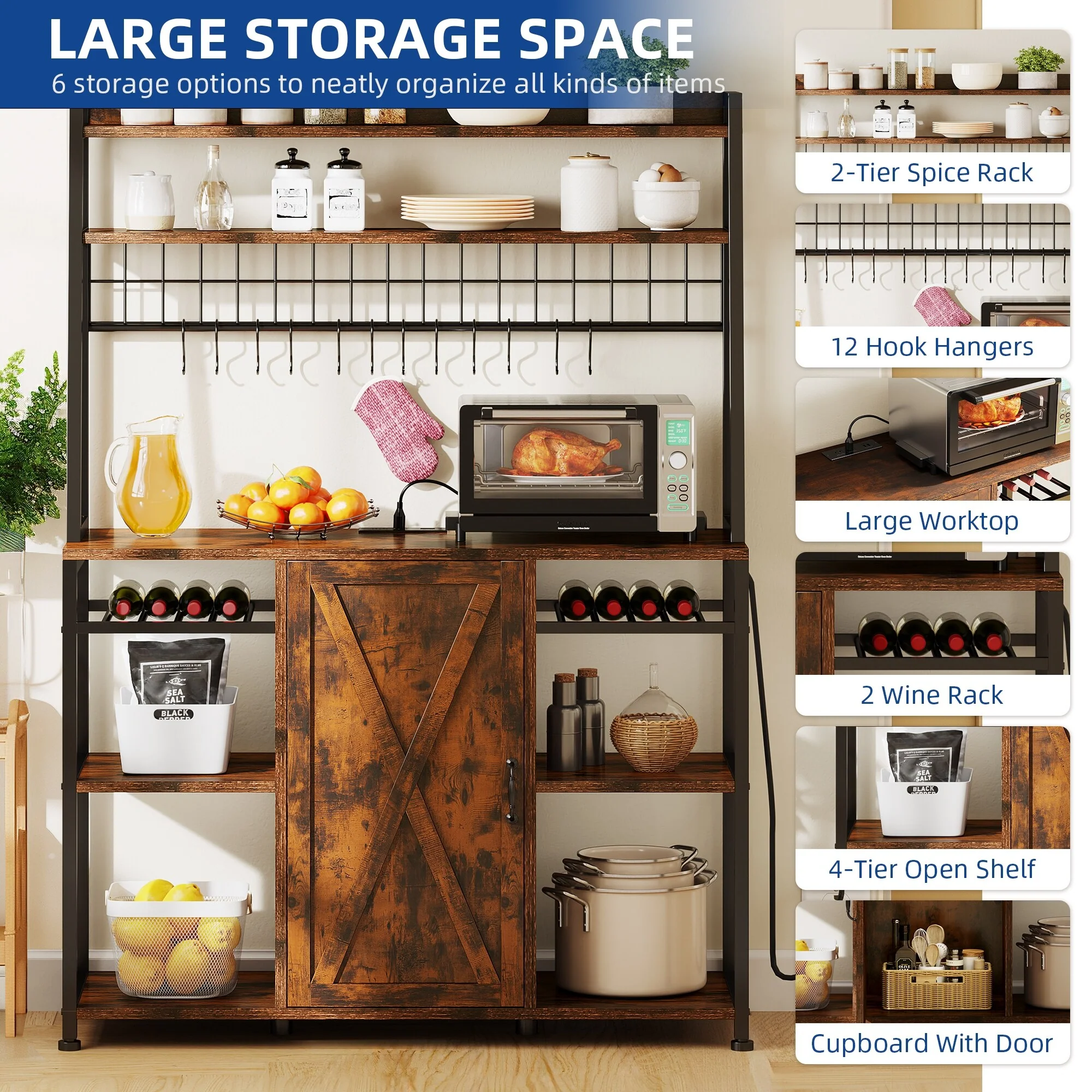 Yaheetech Kitchen Baker's Rack with Outlet Rustic Utility Storage Shelf Unit, Rustic Brown