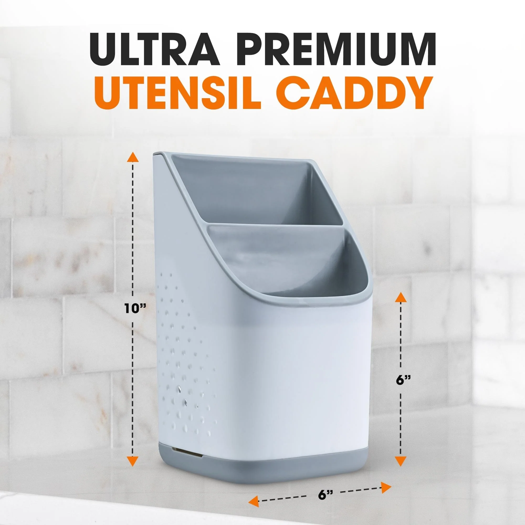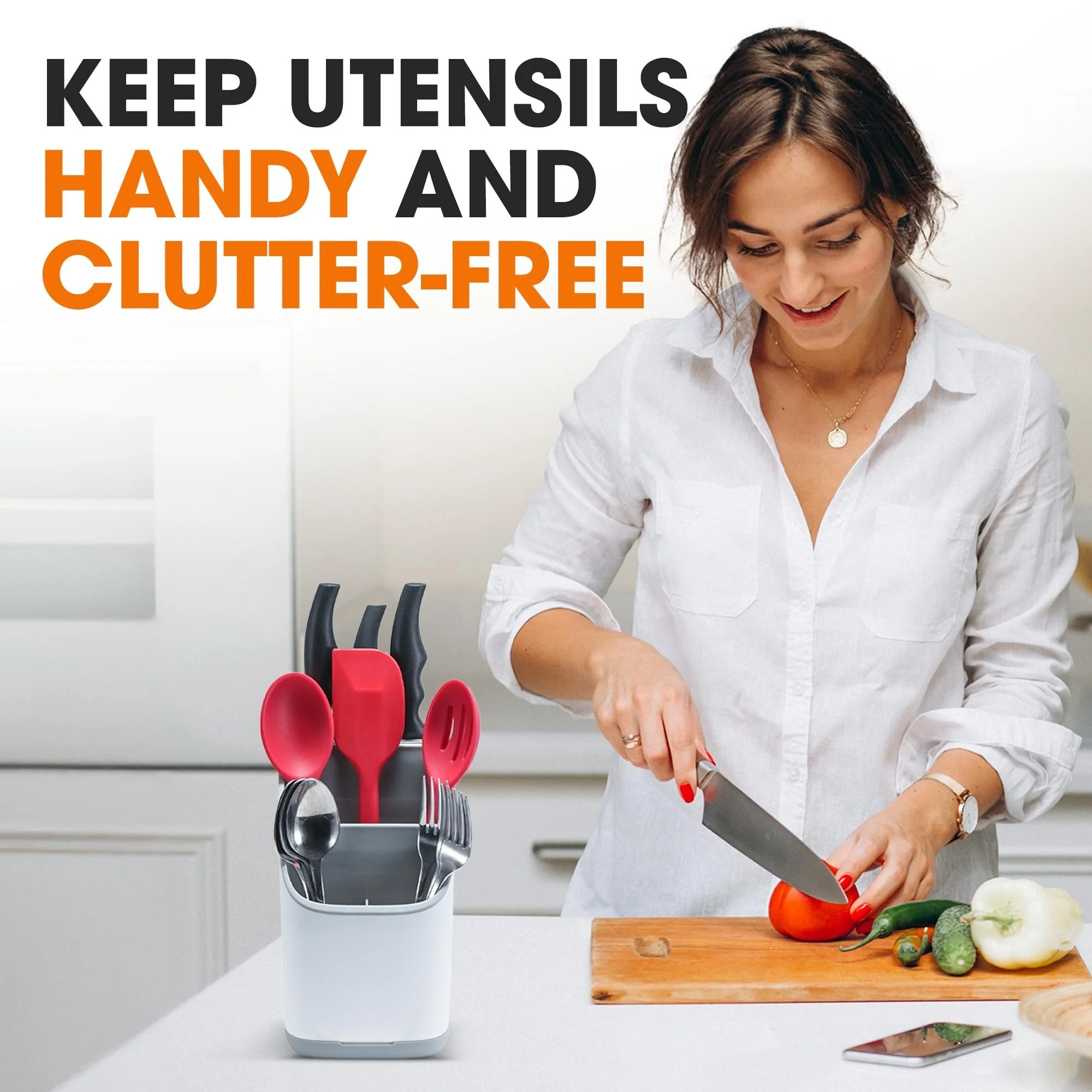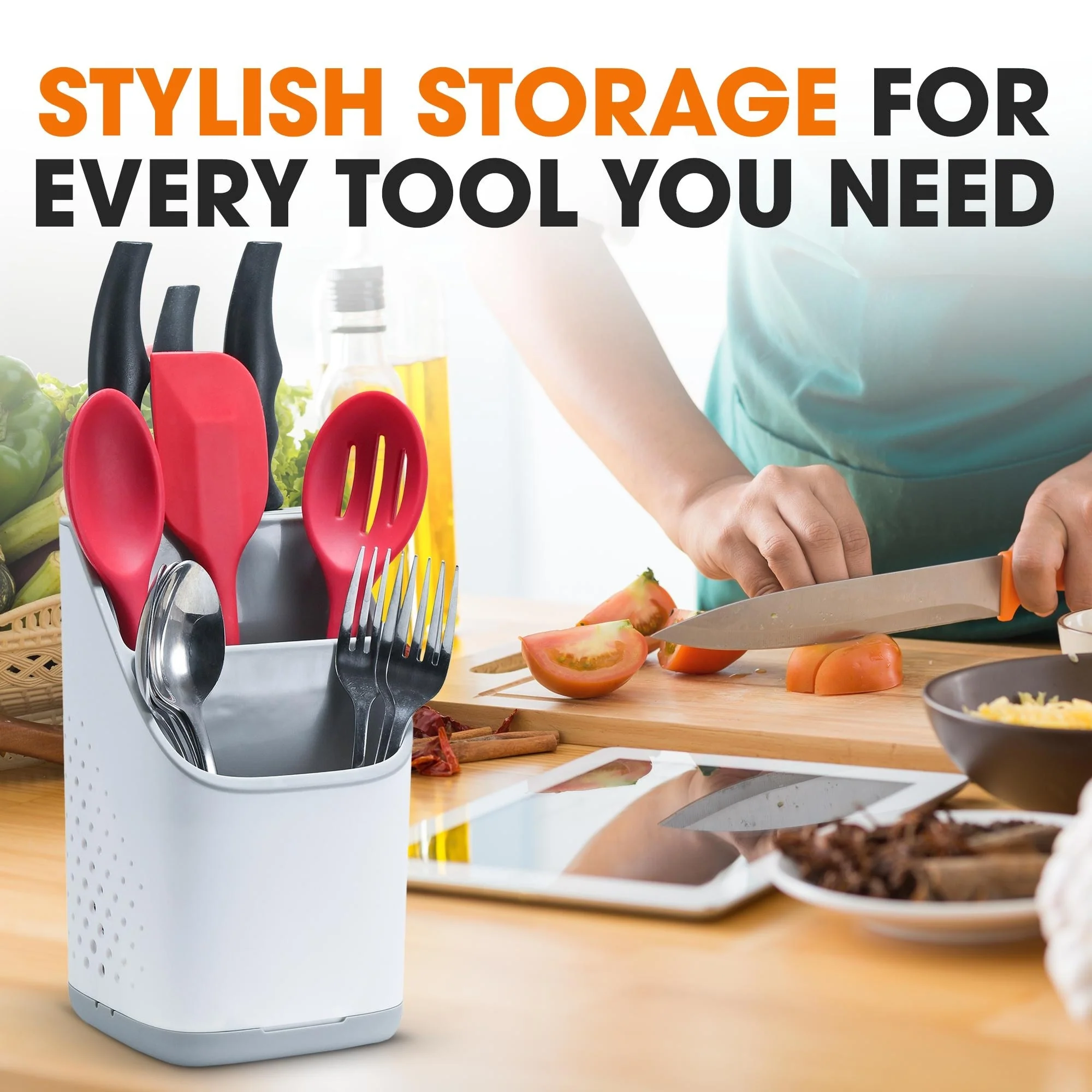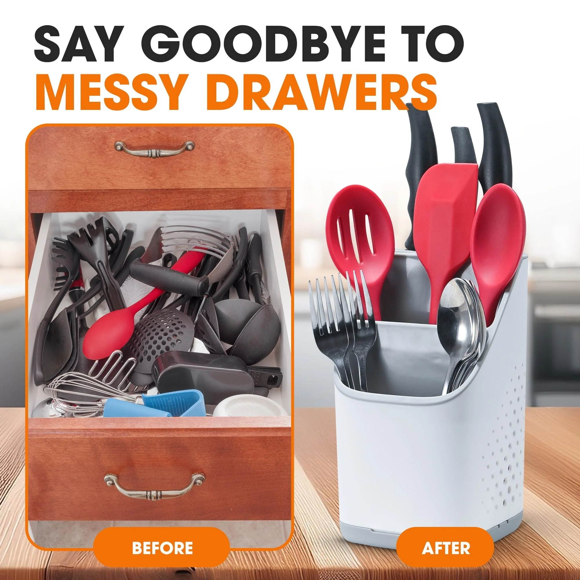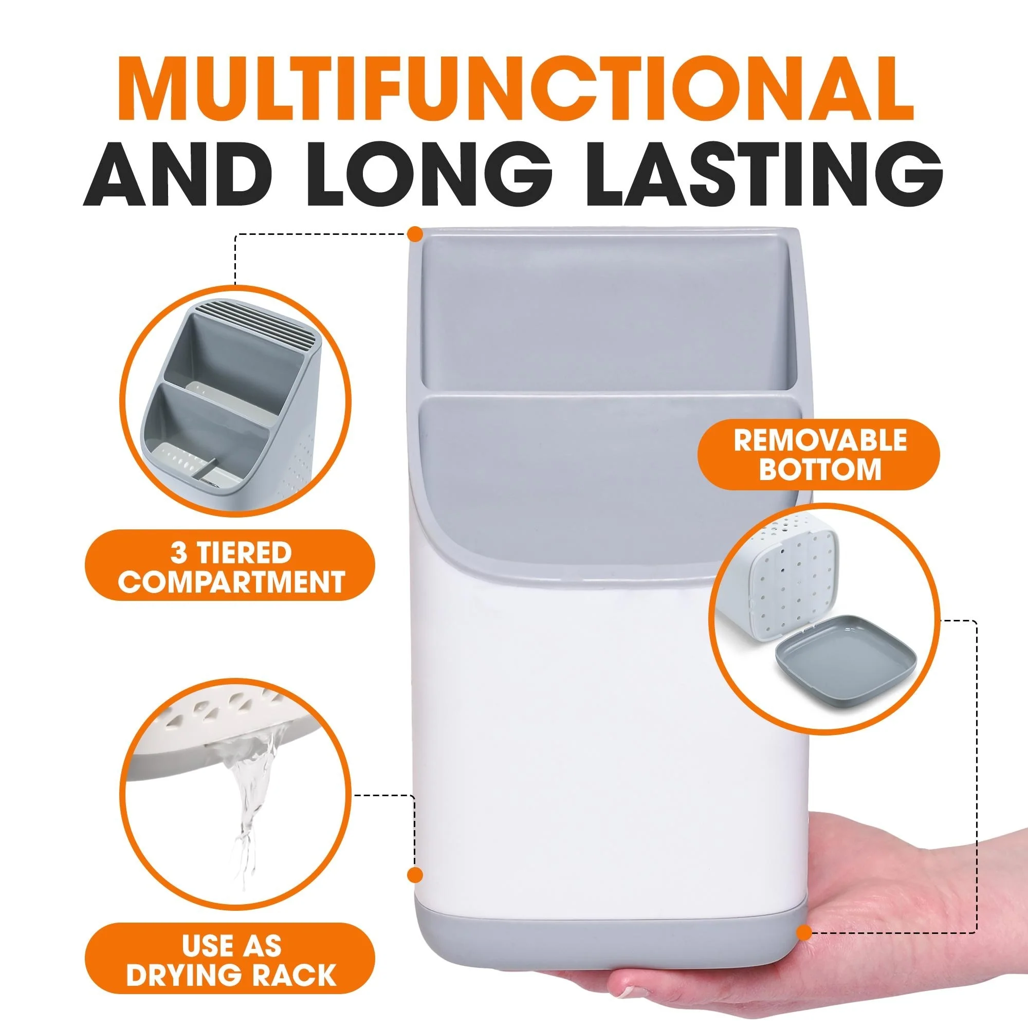 Cheer Collection Utensil Organizer Caddy and Drying Rack with Drip Tray - 4.72 x 5 x 7.48