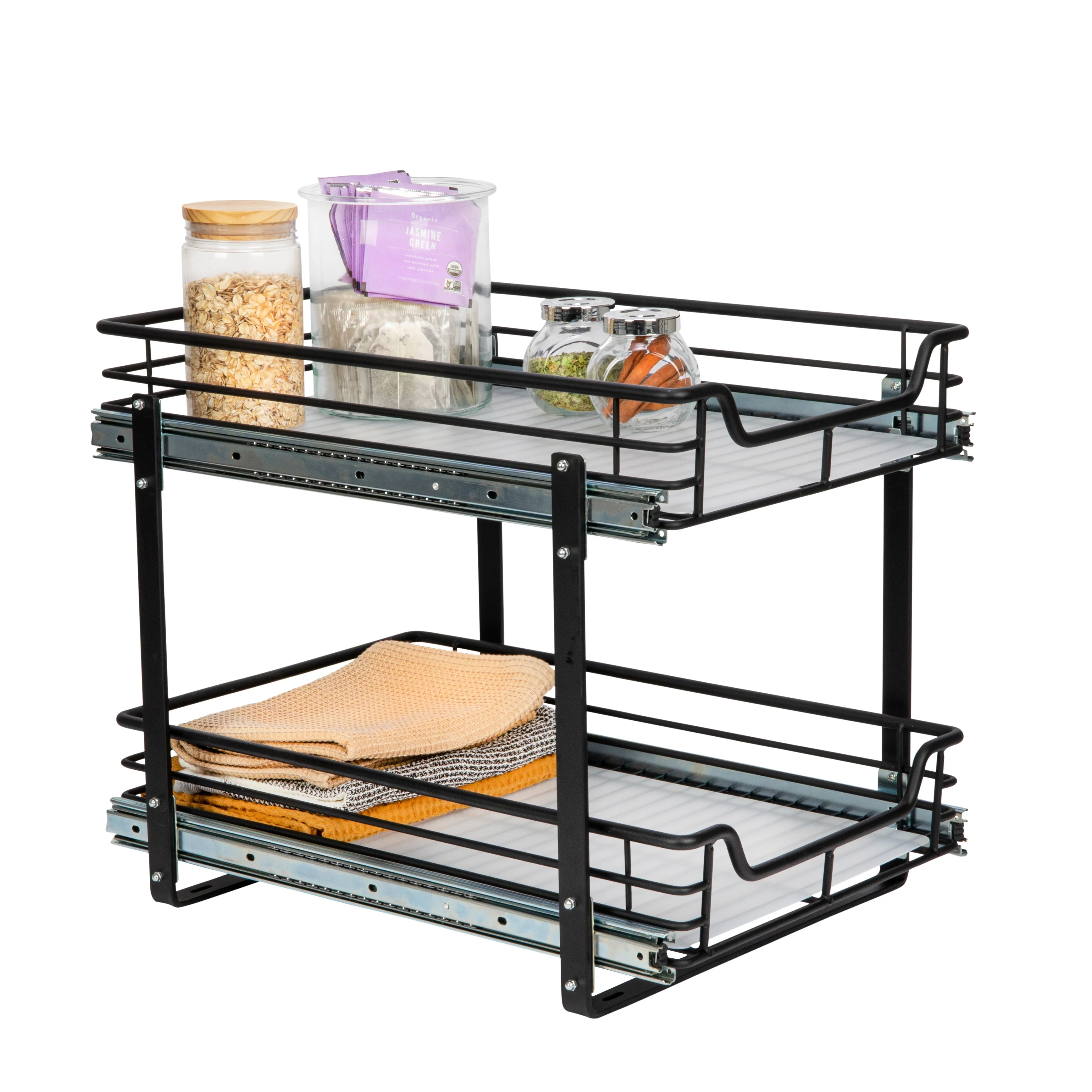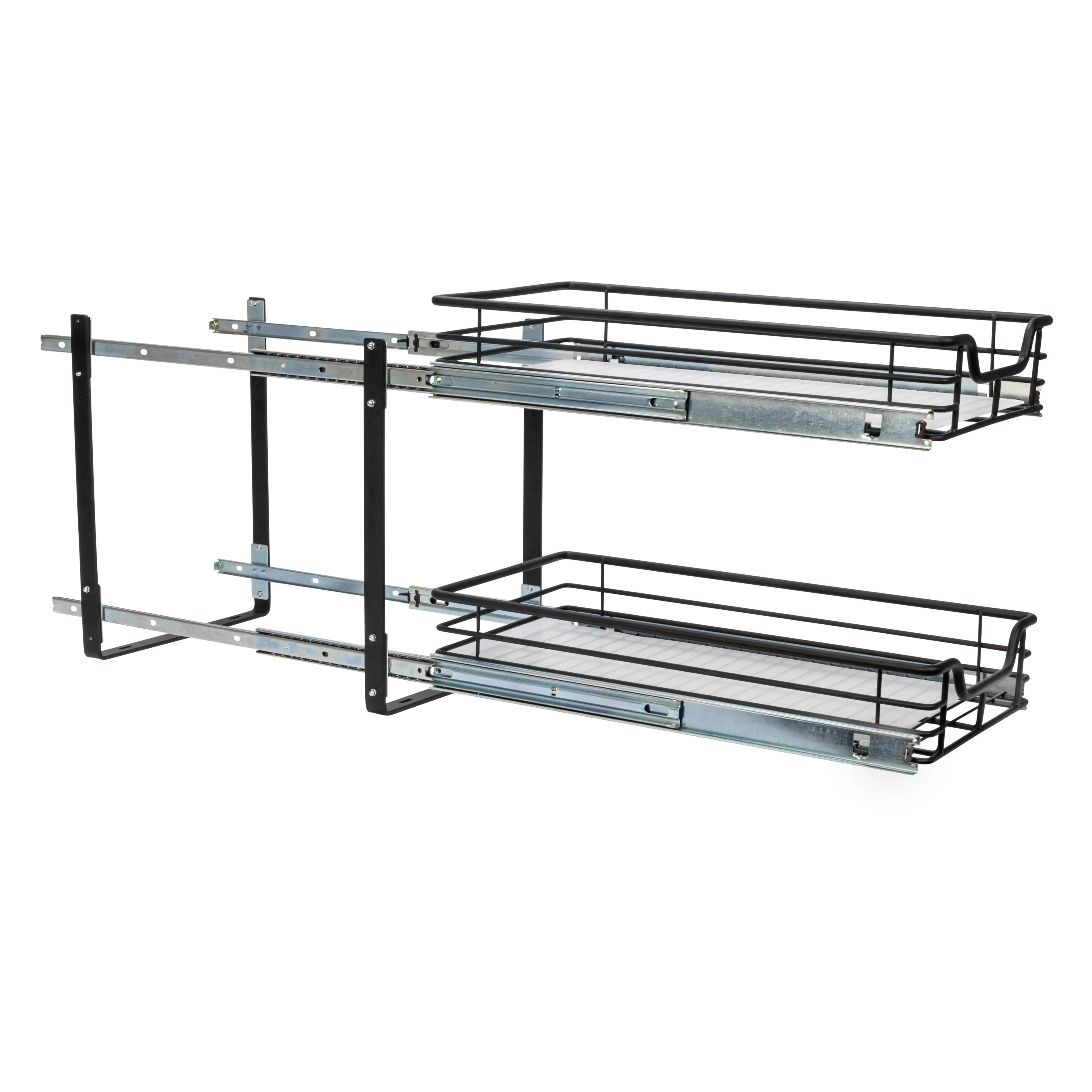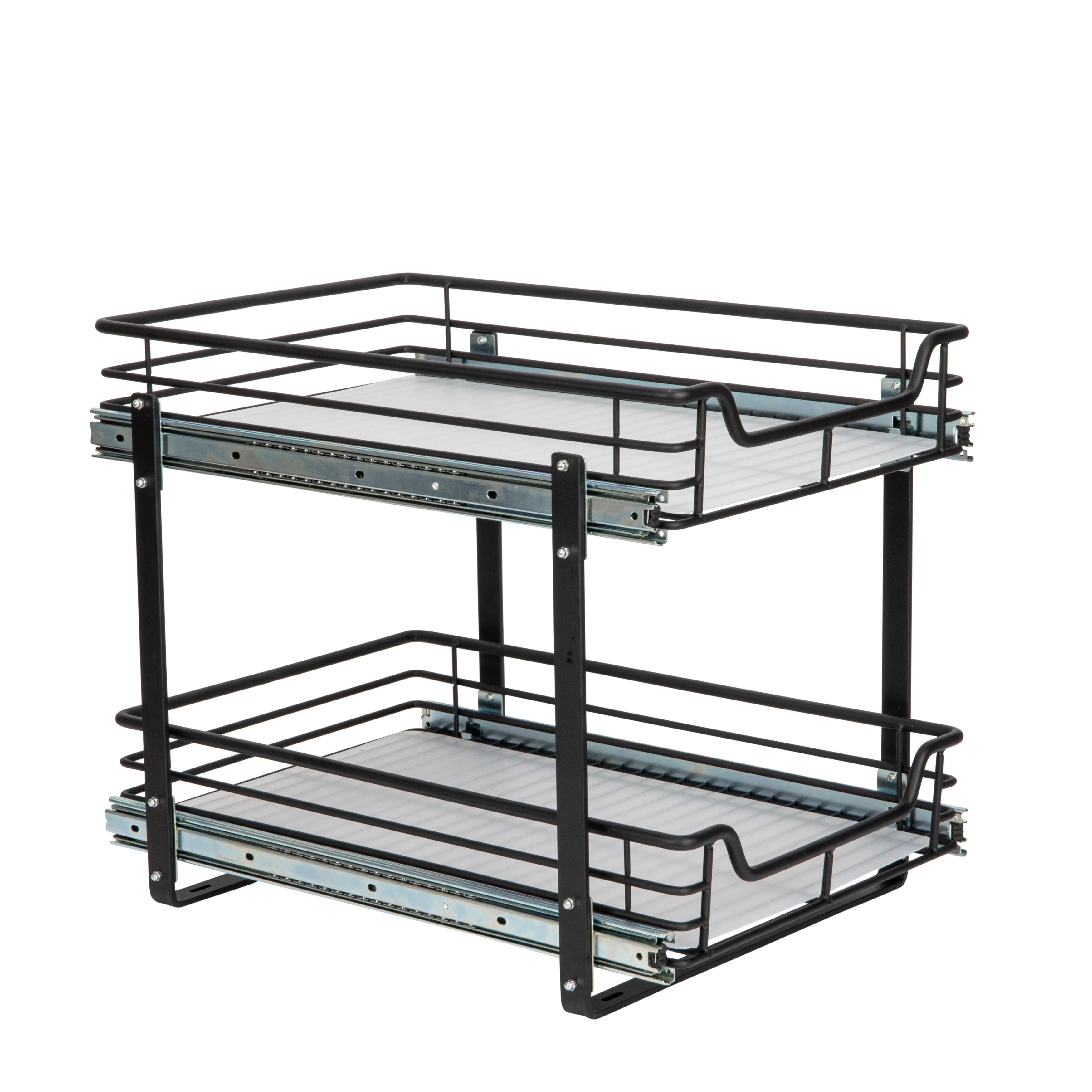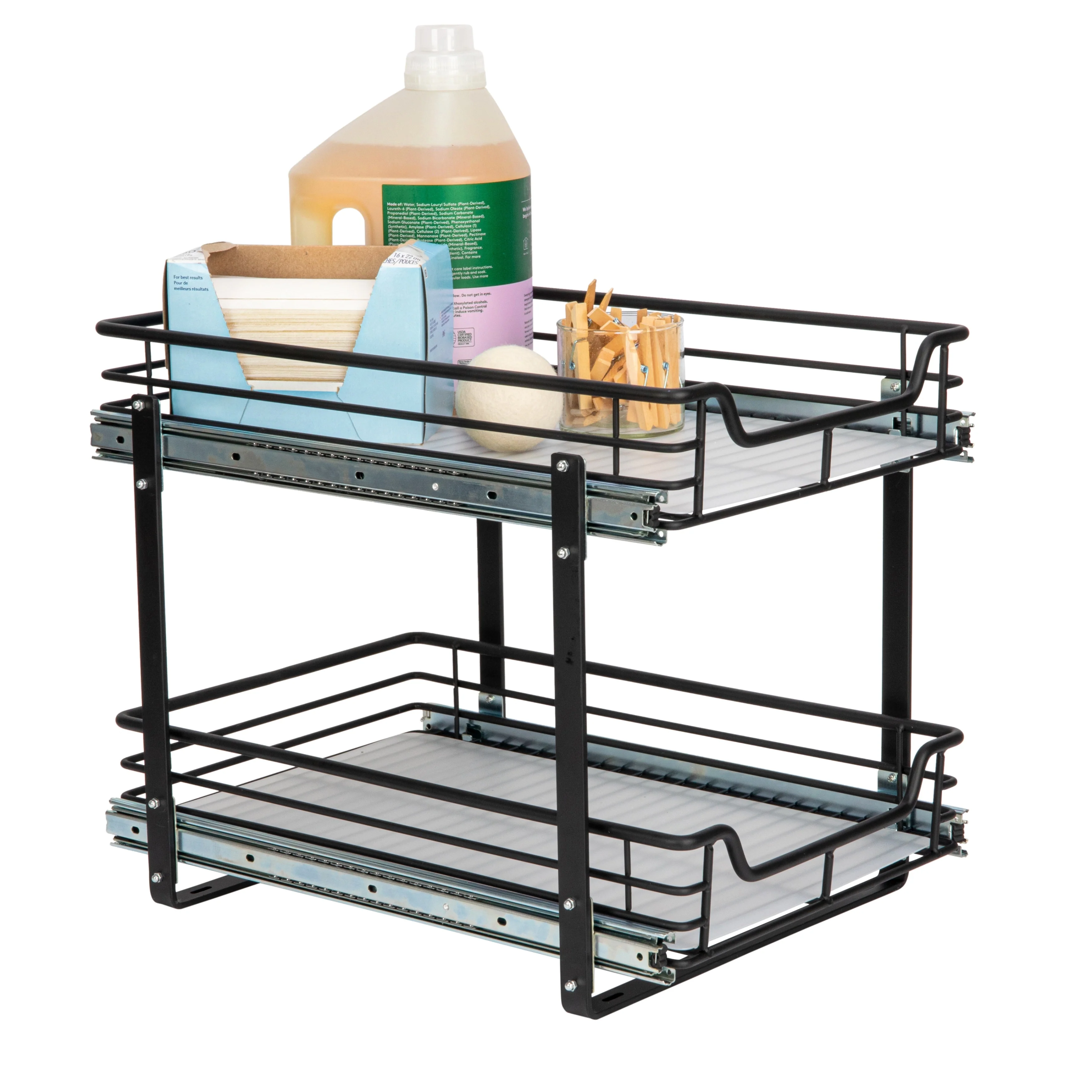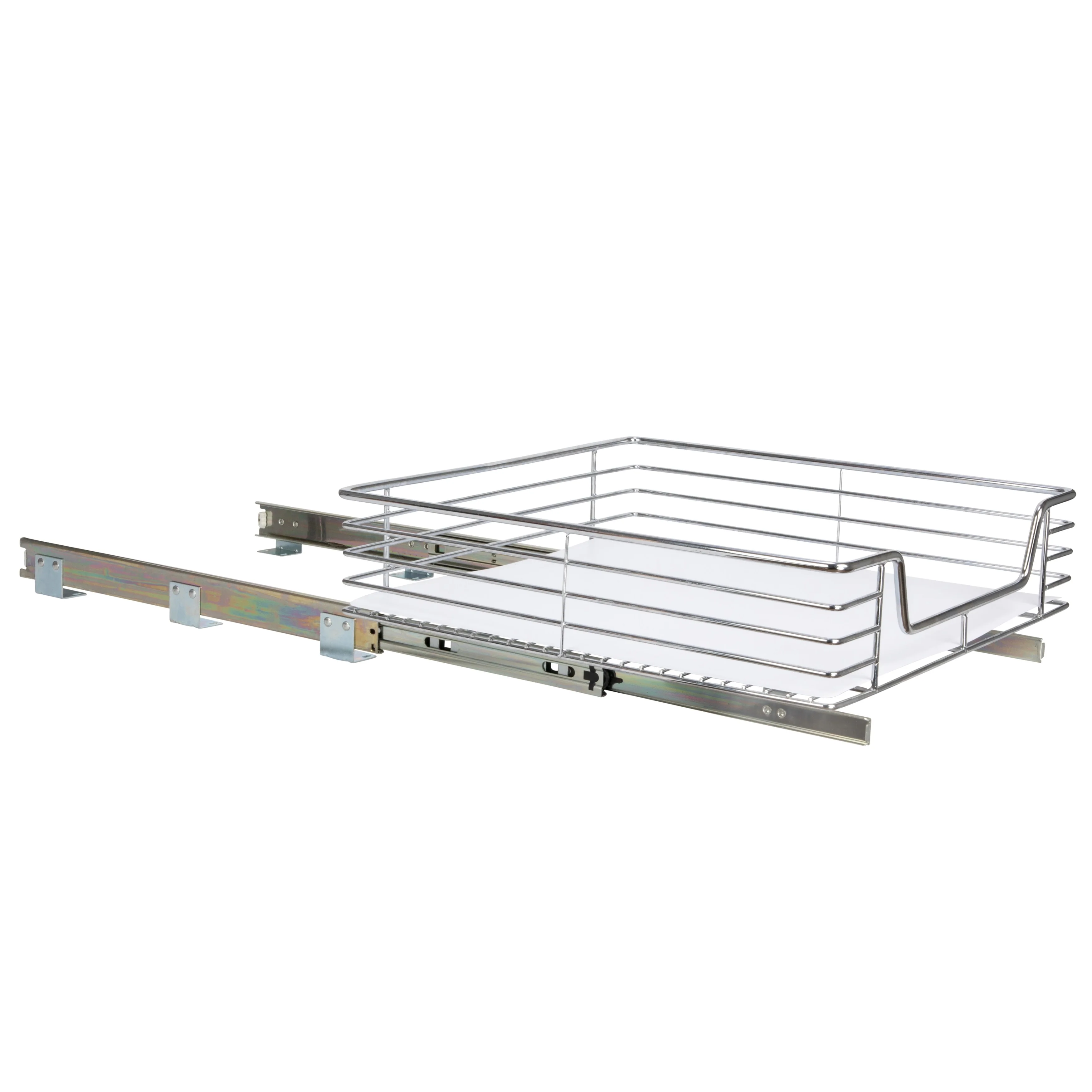Household Essentials 1-Tier Steel Pull-Out/Slide-Out Basket Storage Organizer with Plastic Liner