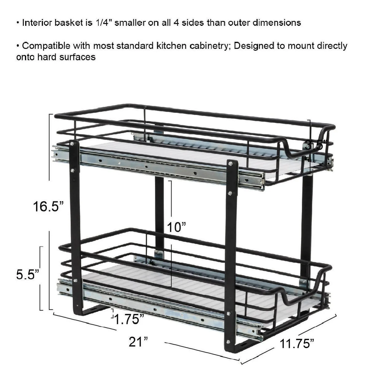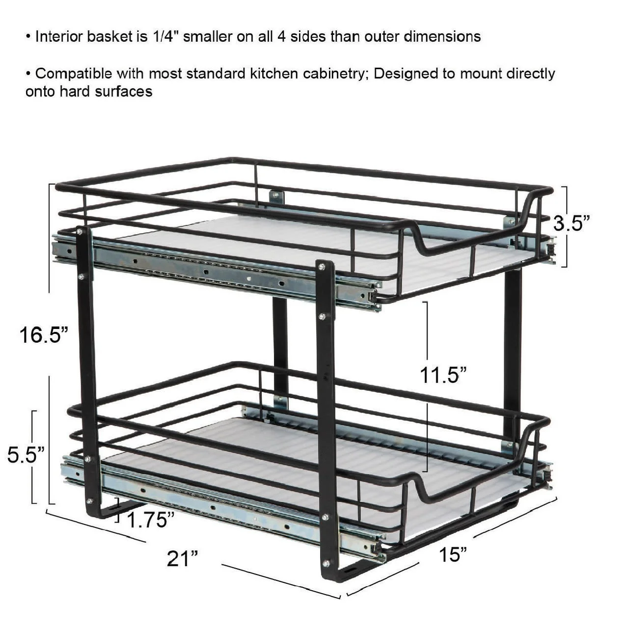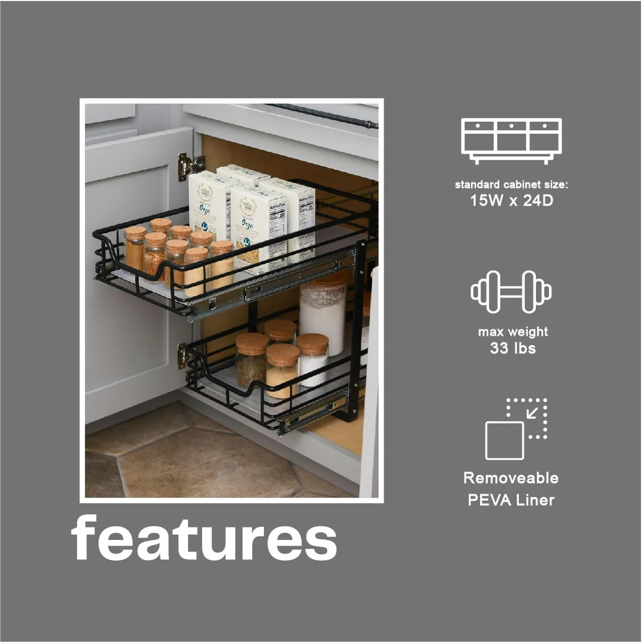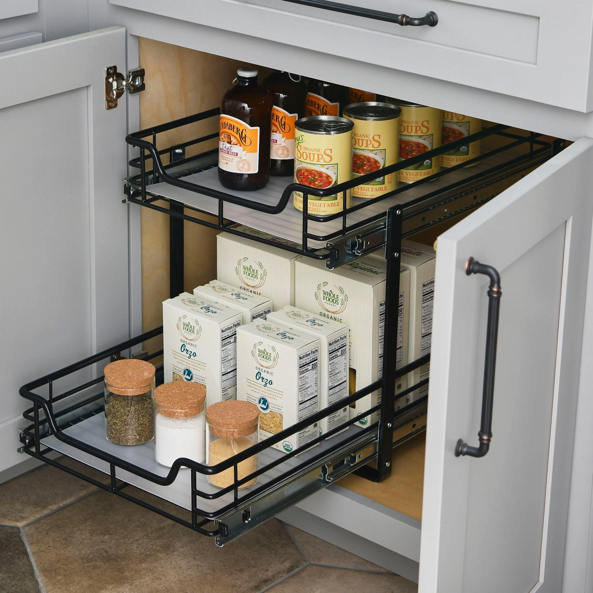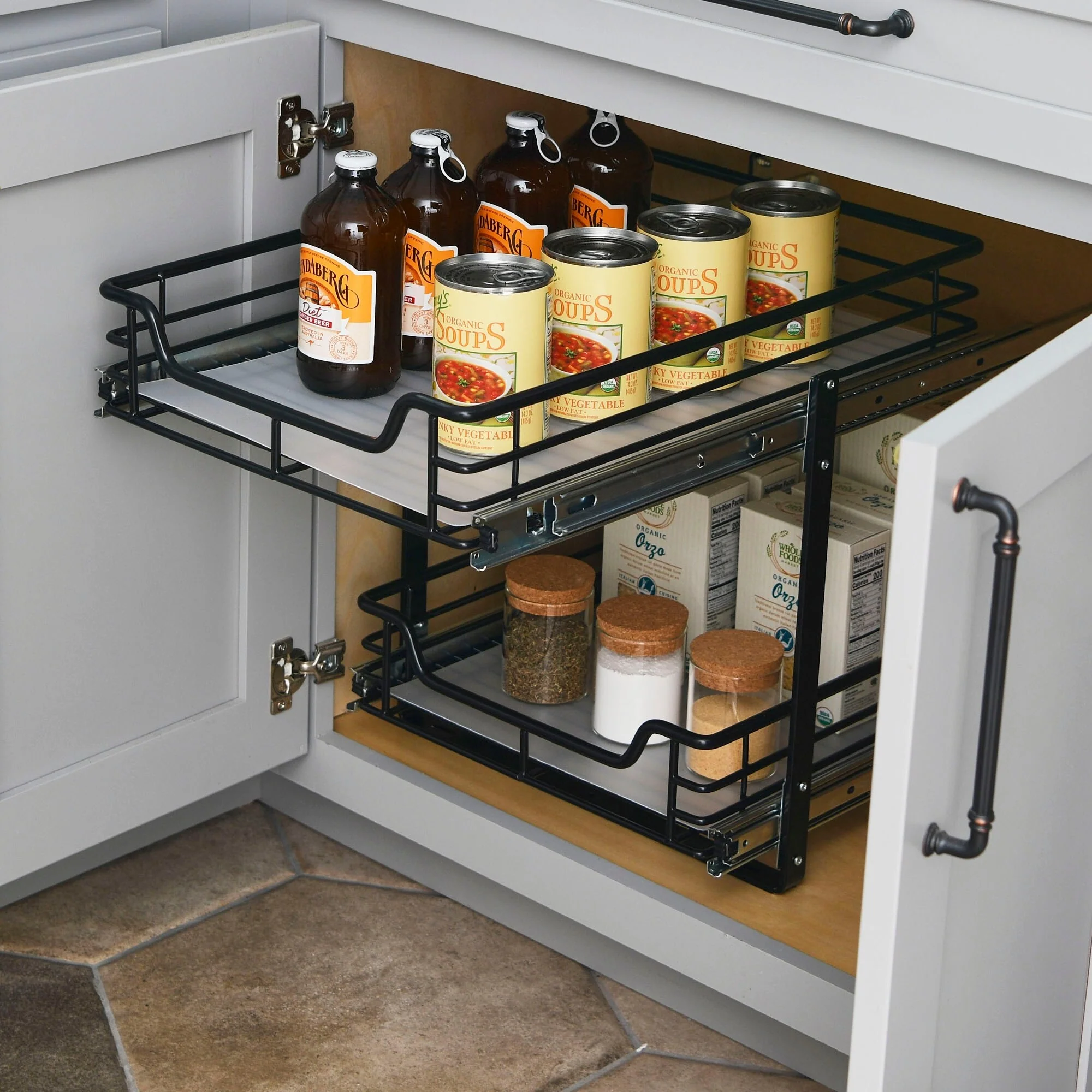 Household Essentials 1-Tier Steel Pull-Out/Slide-Out Basket Storage Organizer with Plastic Liner