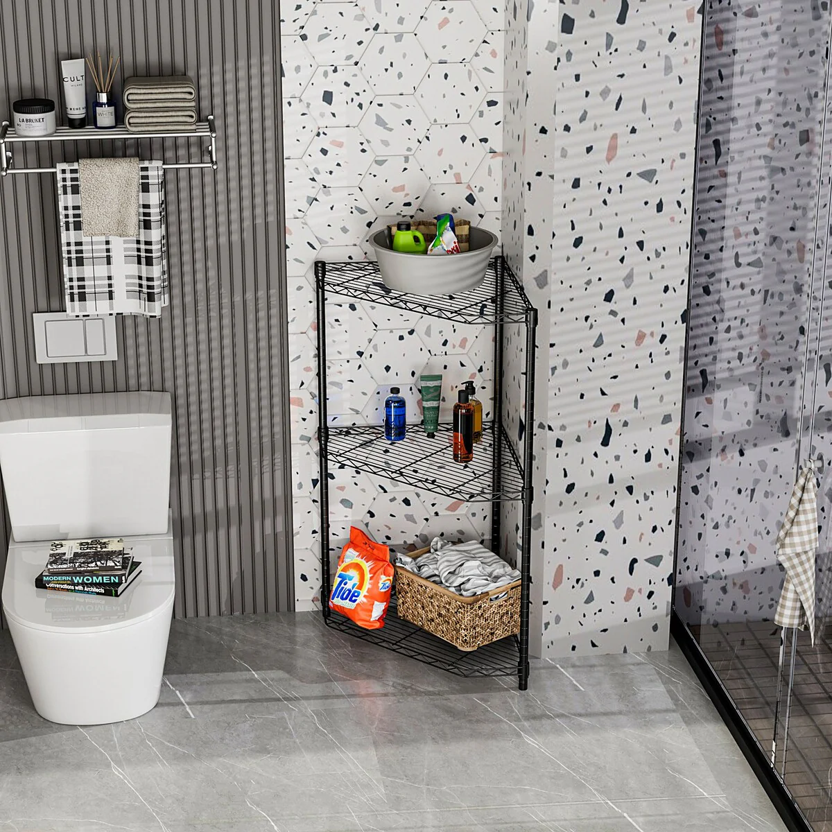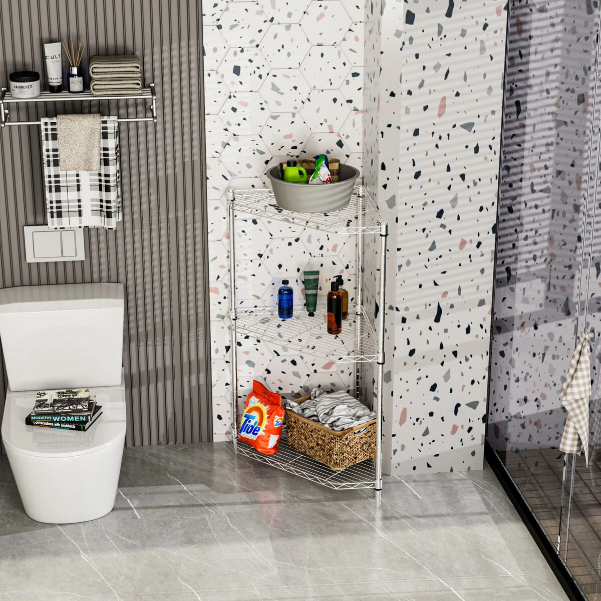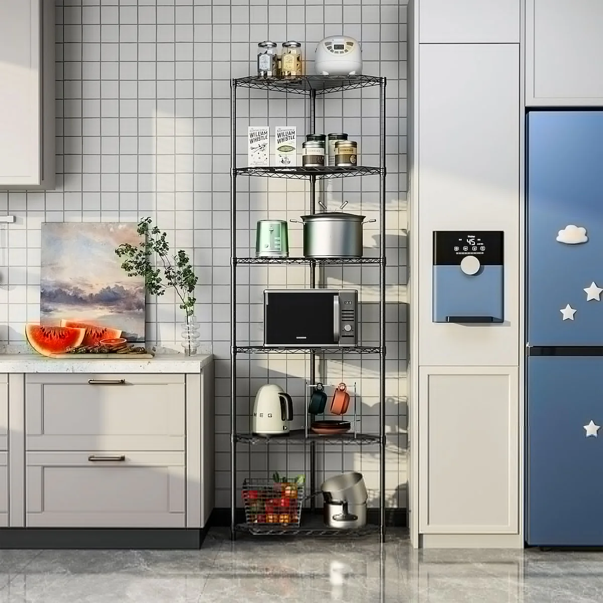 6 Tier Shelf Corner Wire Rack Pentagonal Shelves Adjustable Metal Heavy Duty Free Standing Corner Storage Display Chrome Rack