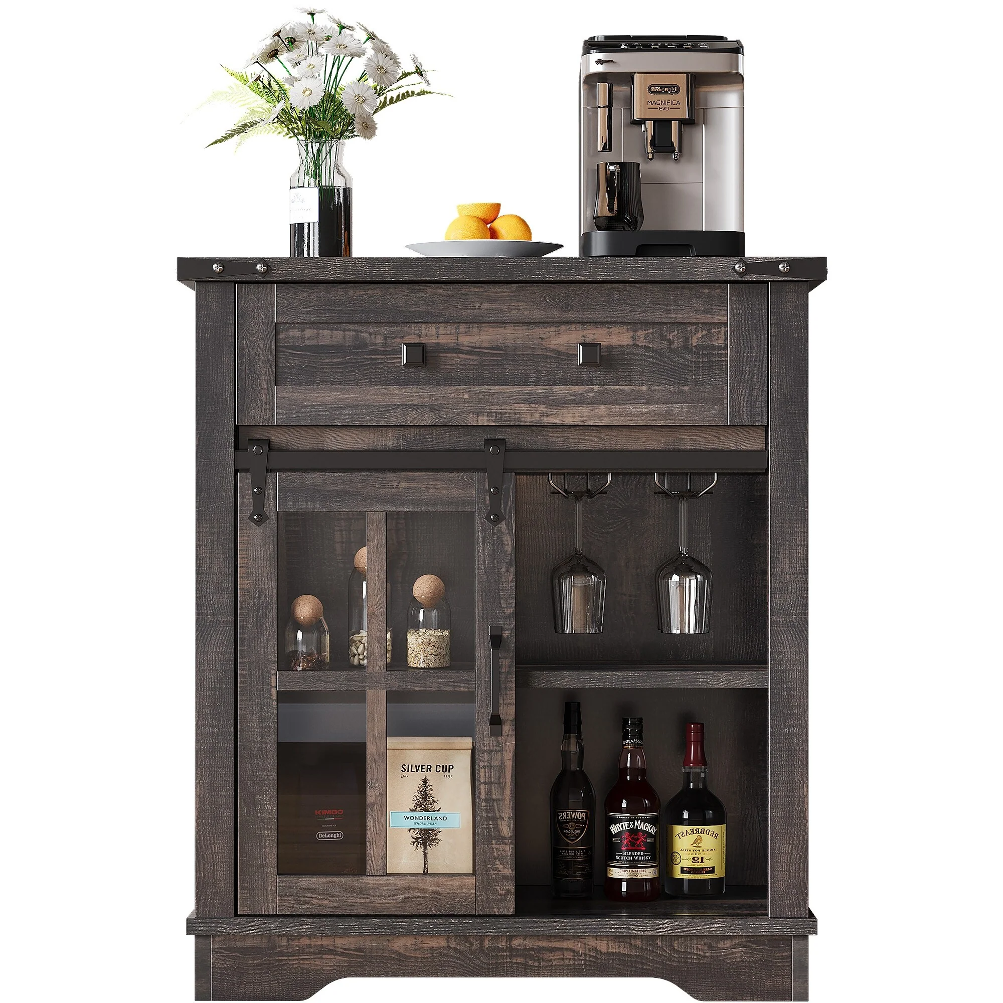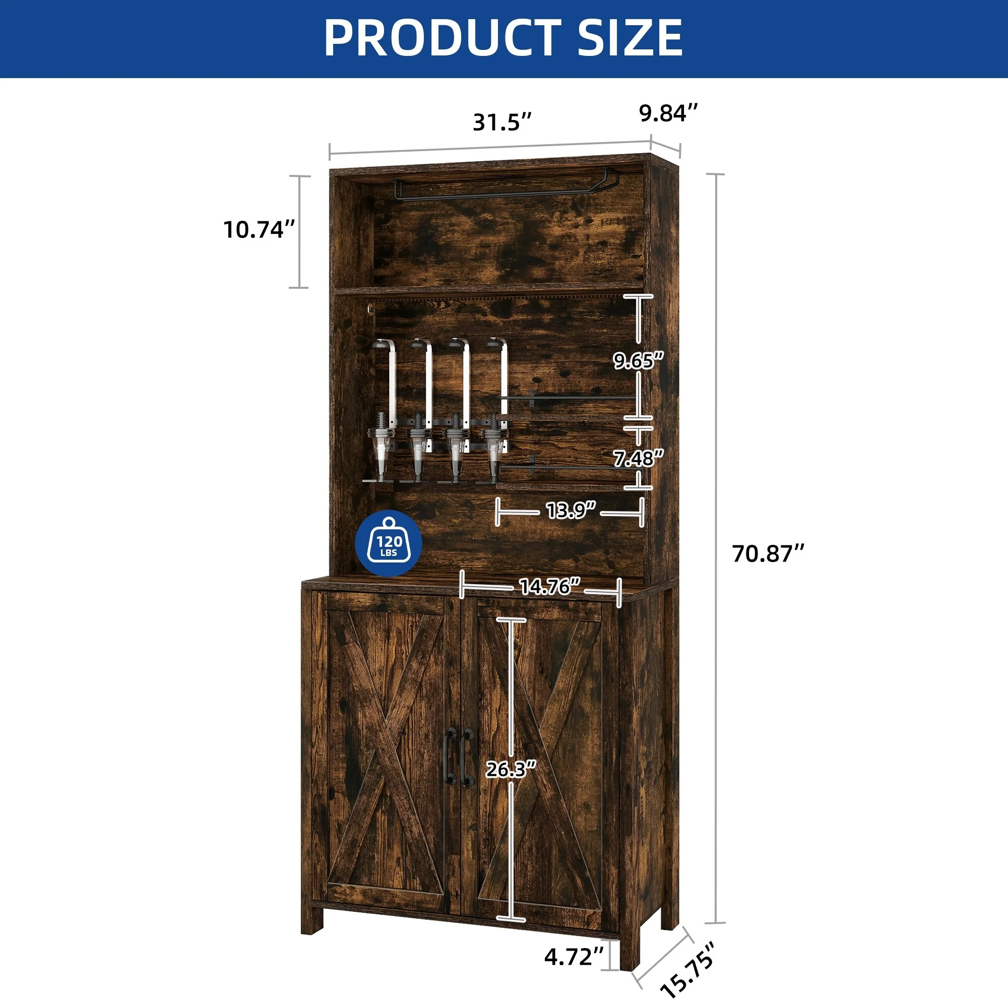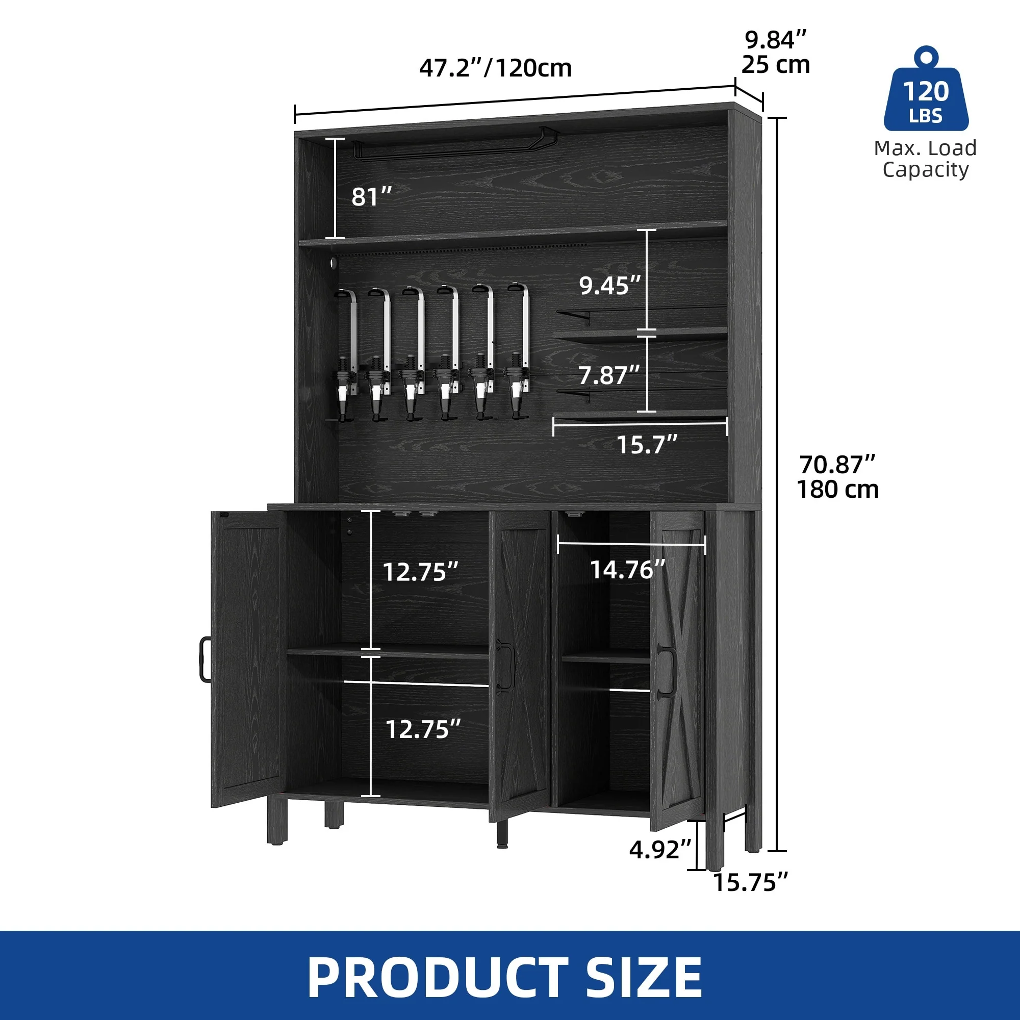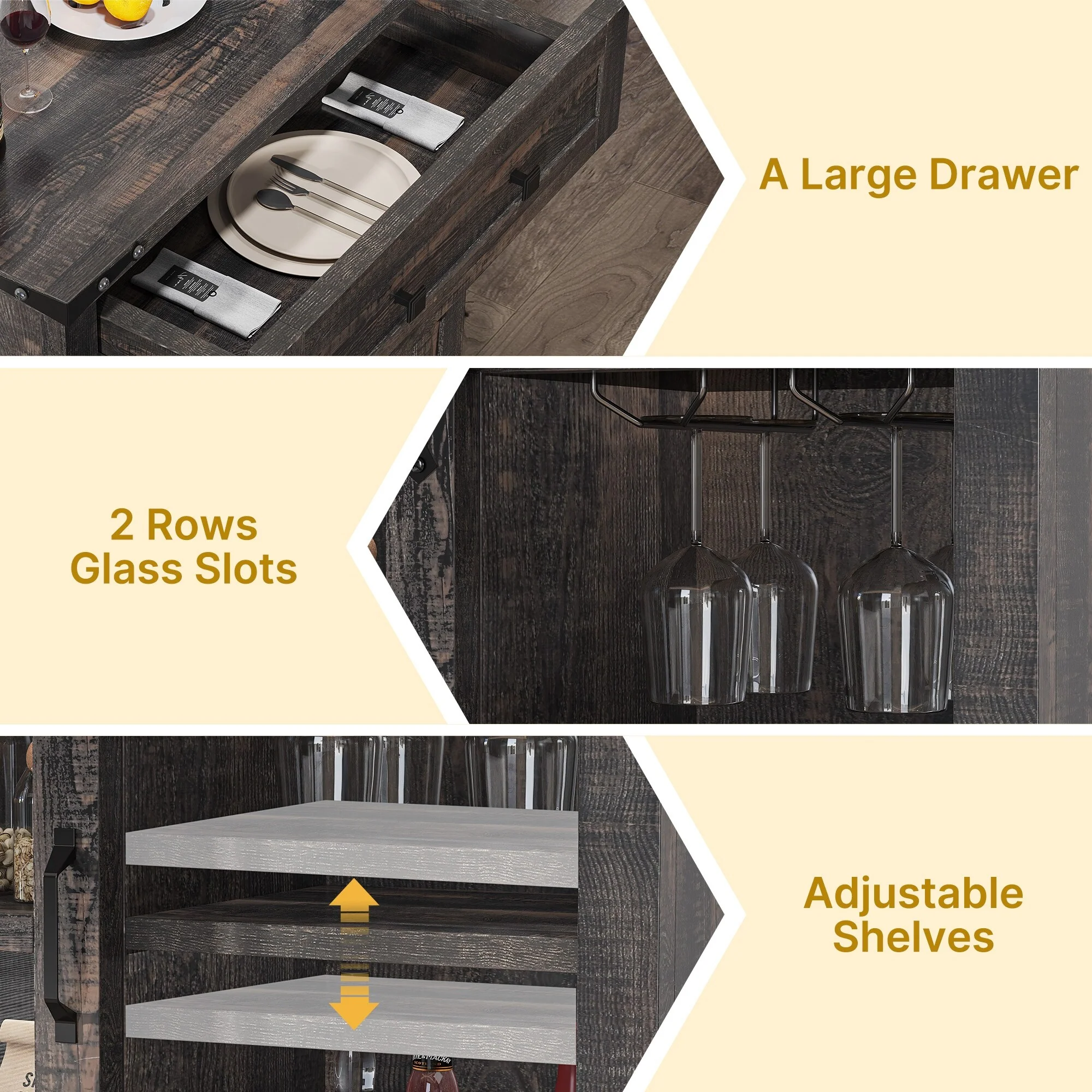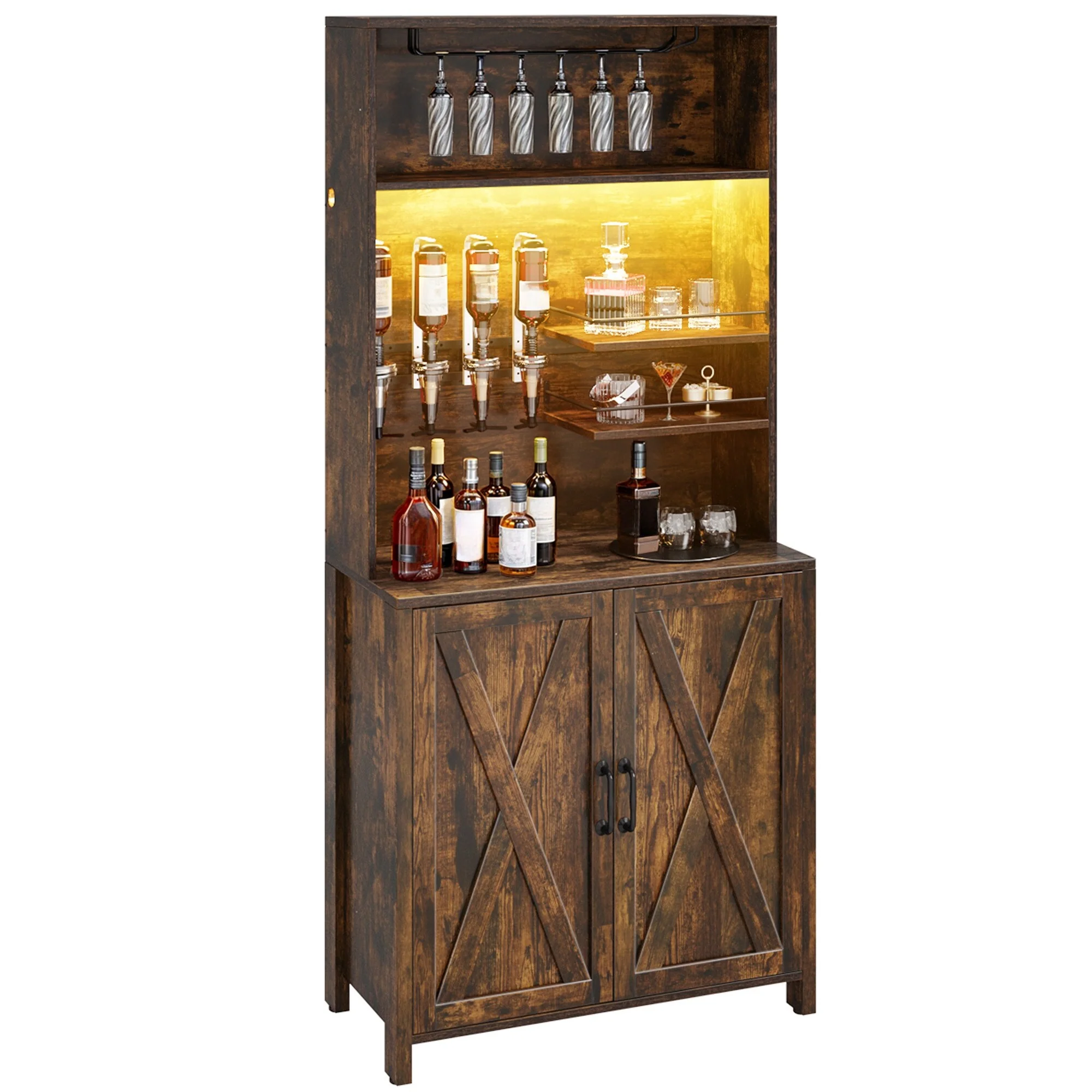 Moasis Farmhouse Bar Cabinet Wine Rack with RGB Light and Power Outlet