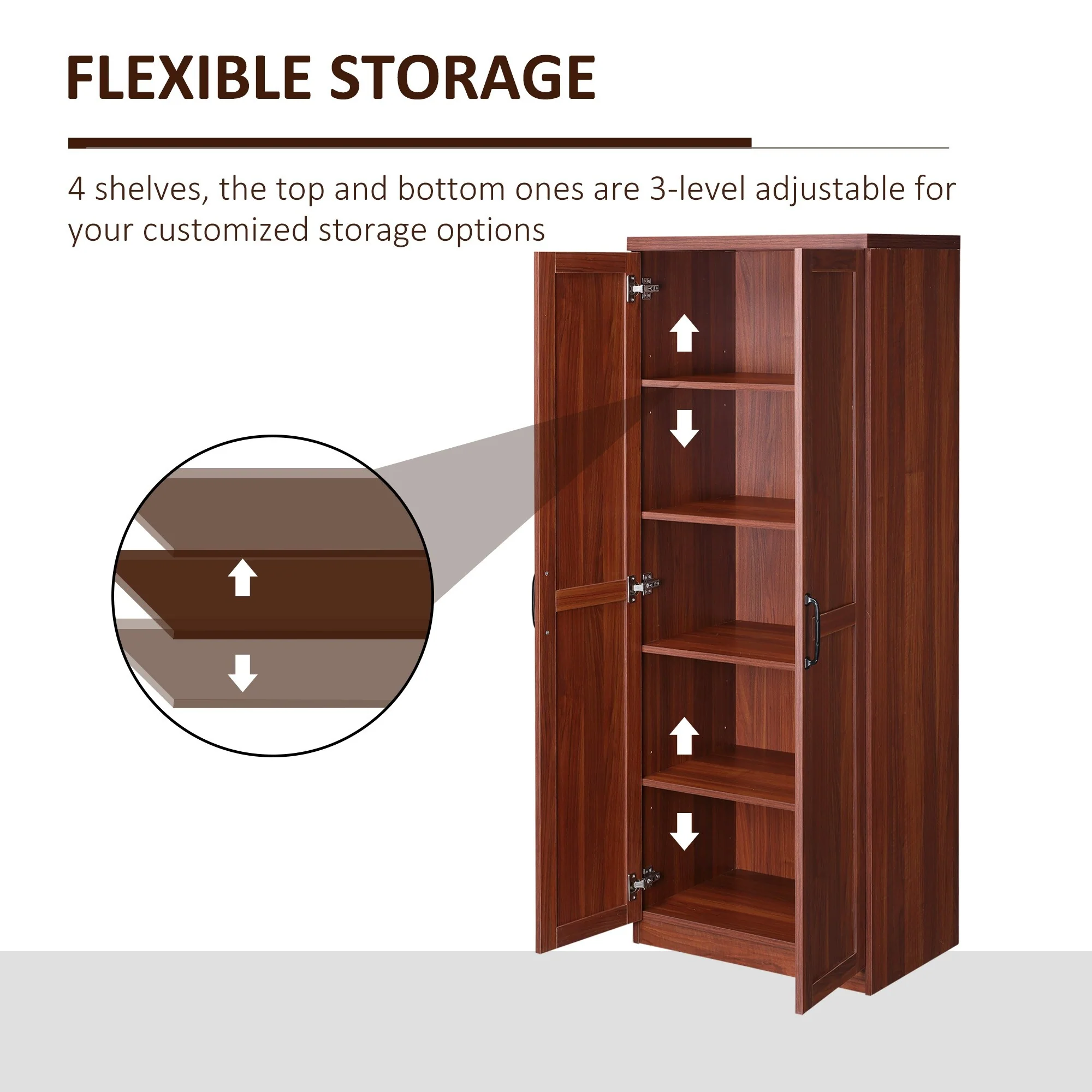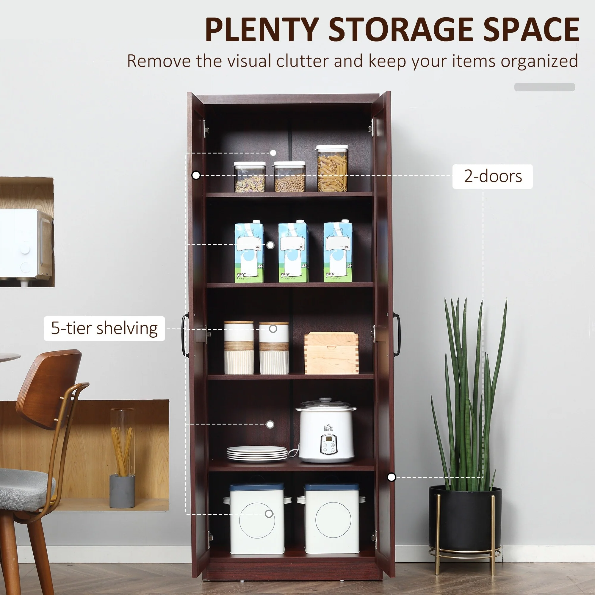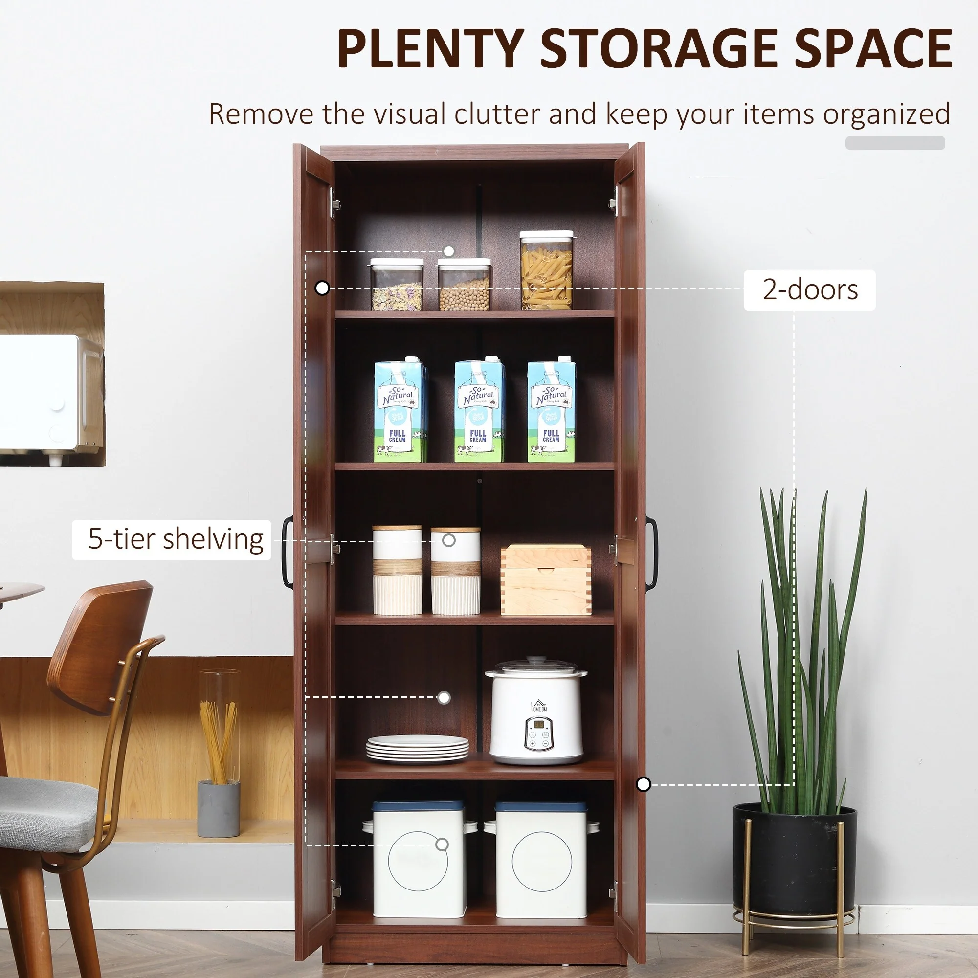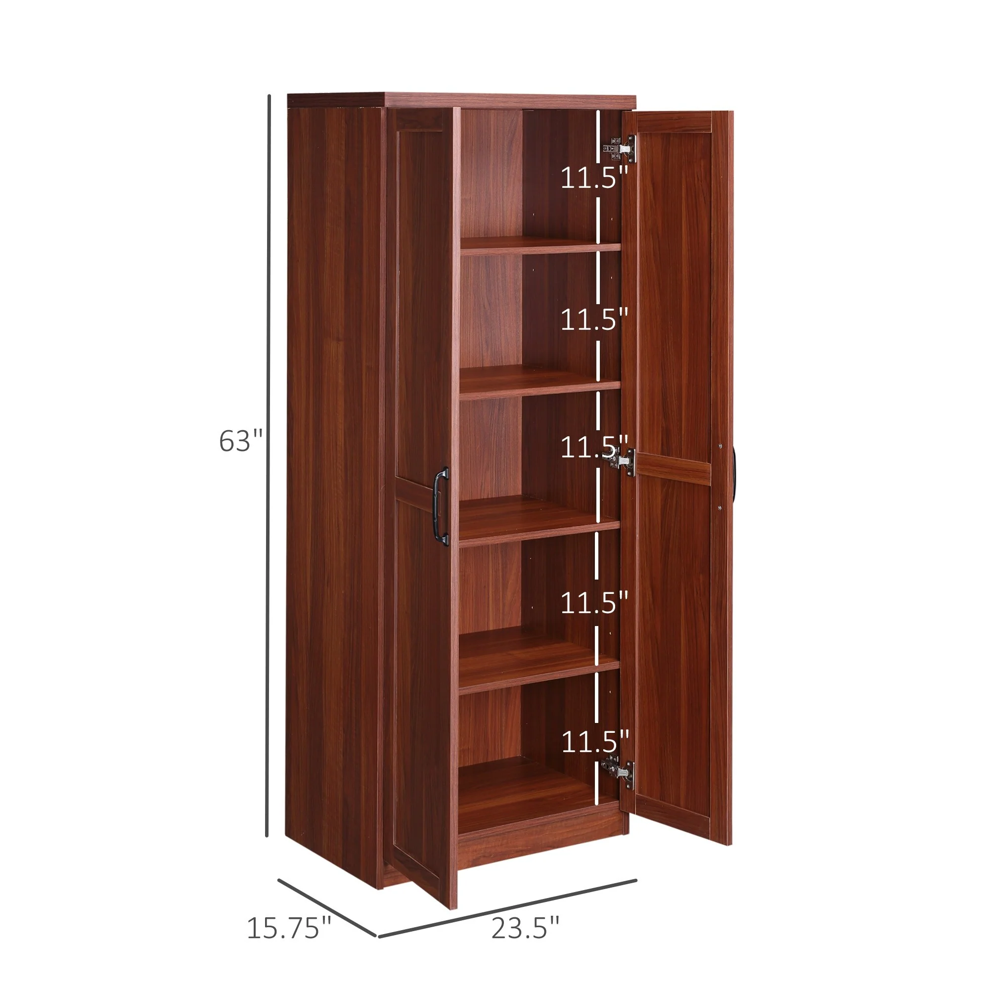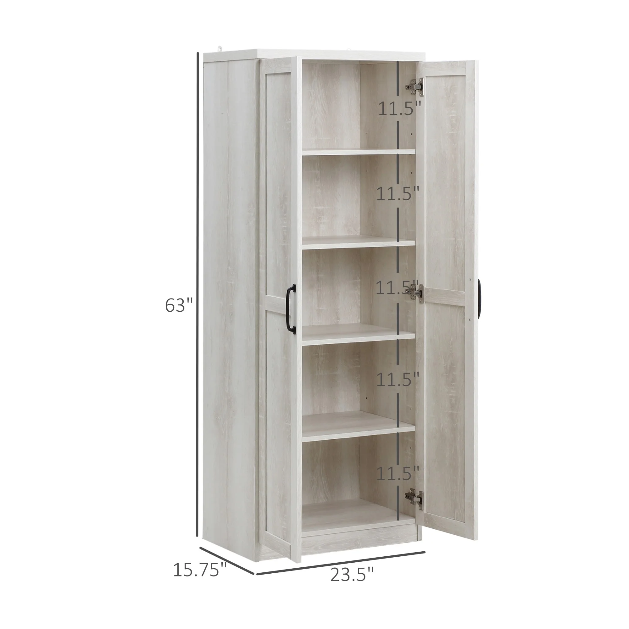 HOMCOM 63" 2-Door Kitchen Pantry, Freestanding Storage Cabinet with 2 Adjustable Shelves for Kitchen or Living Room