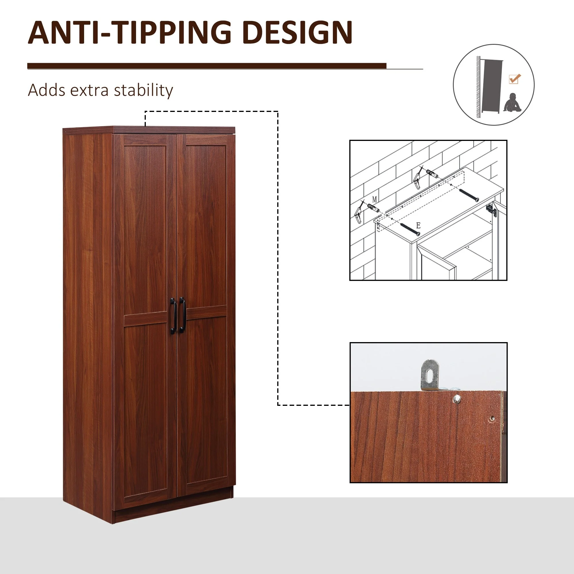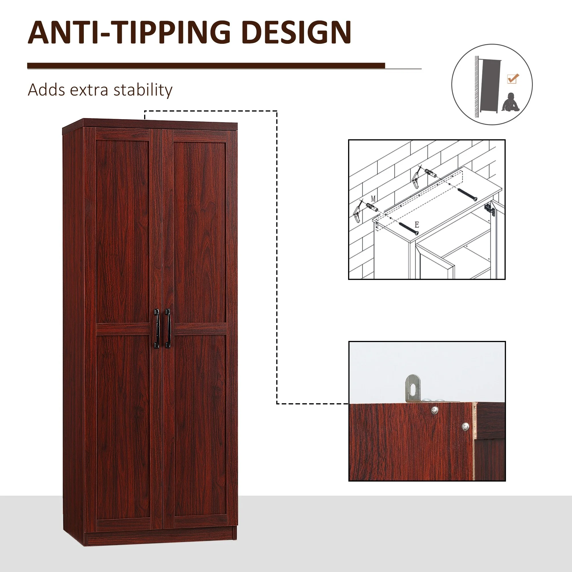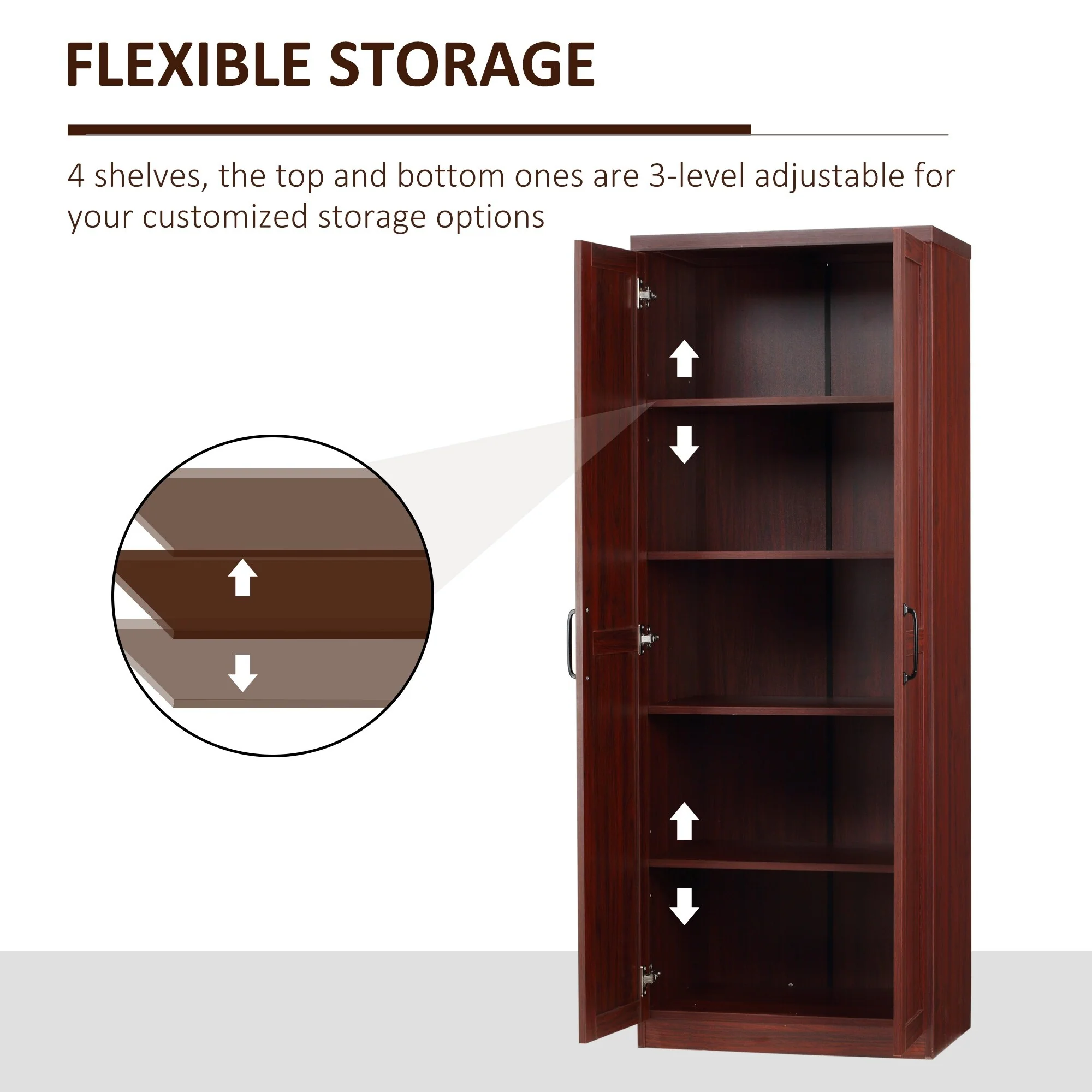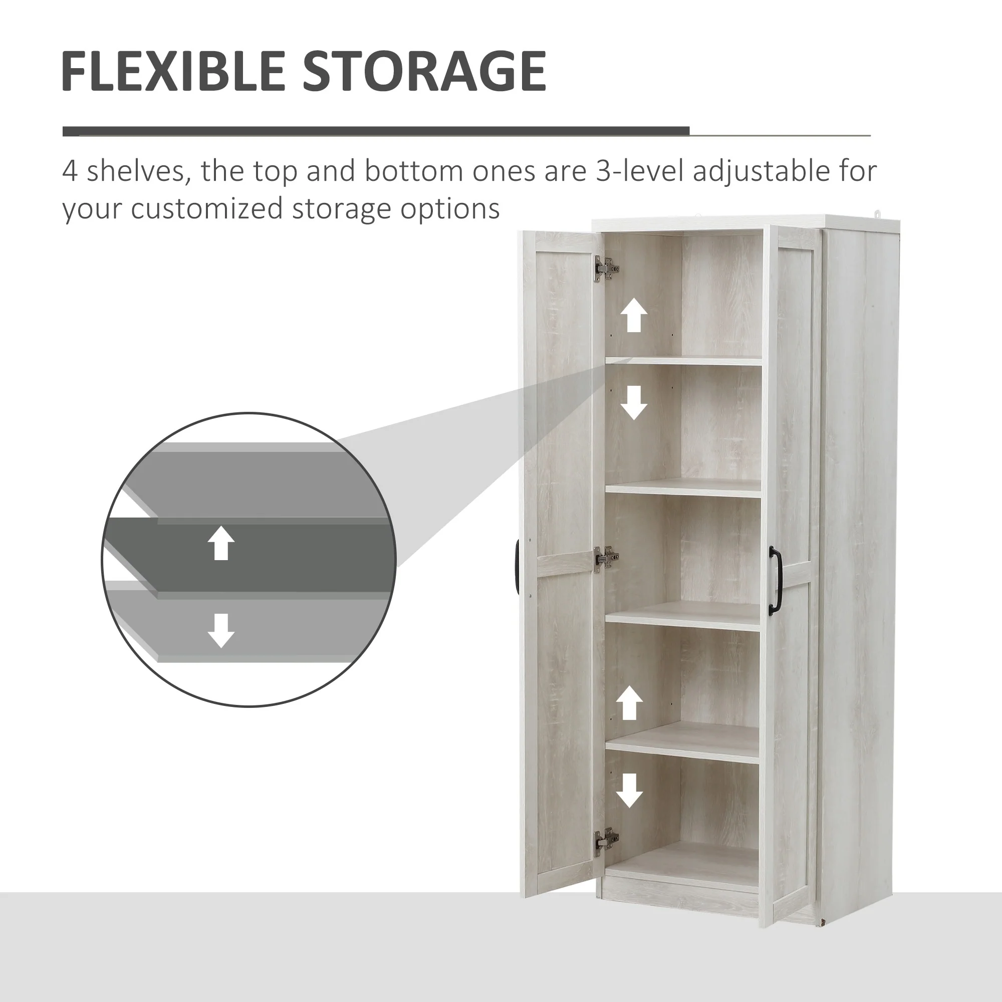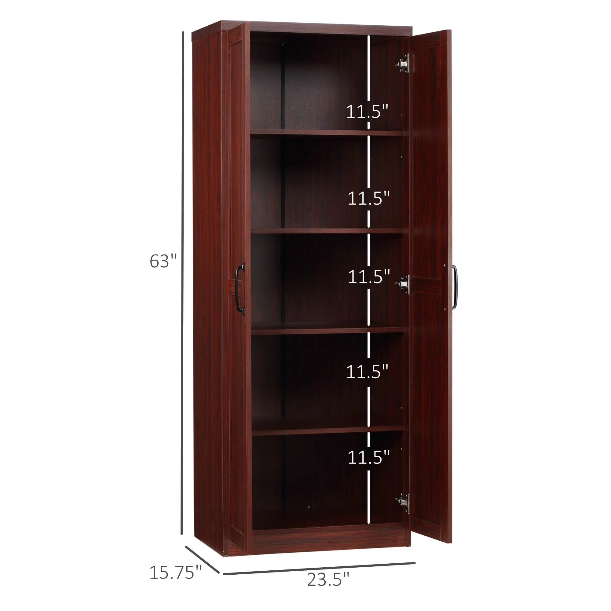 HOMCOM 63" 2-Door Kitchen Pantry, Freestanding Storage Cabinet with 2 Adjustable Shelves for Kitchen or Living Room