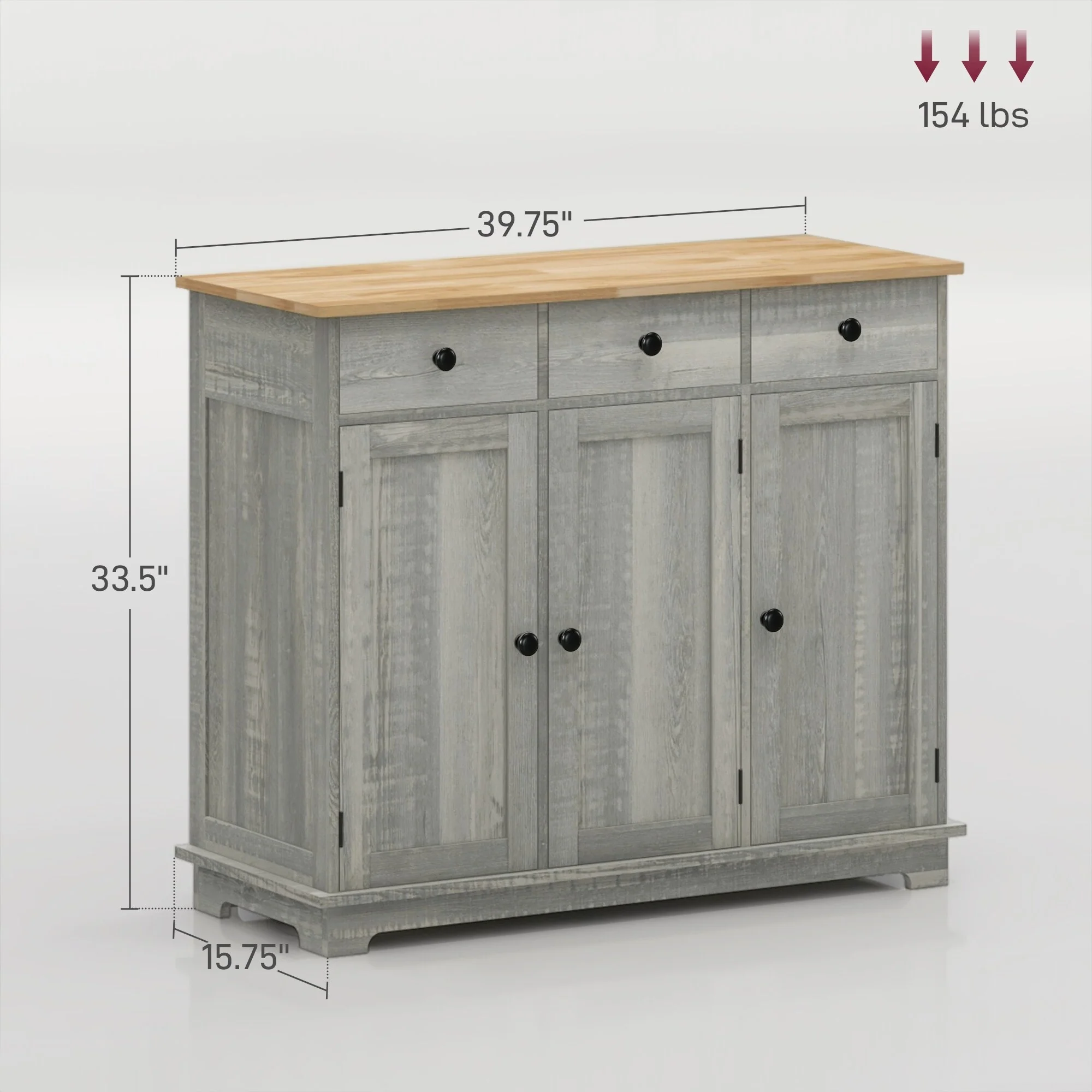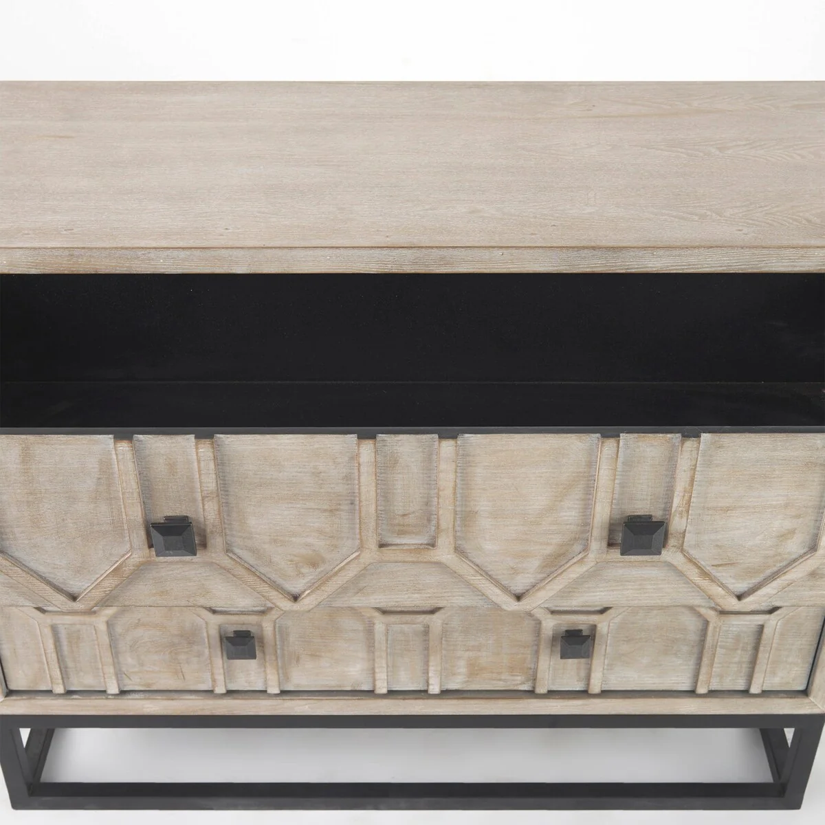 Genevieve I Gray Fir Veneer w/ Iron Frame & 3 Drawer Accent Cabinet - 39.0L x 15.7W x 30.9H