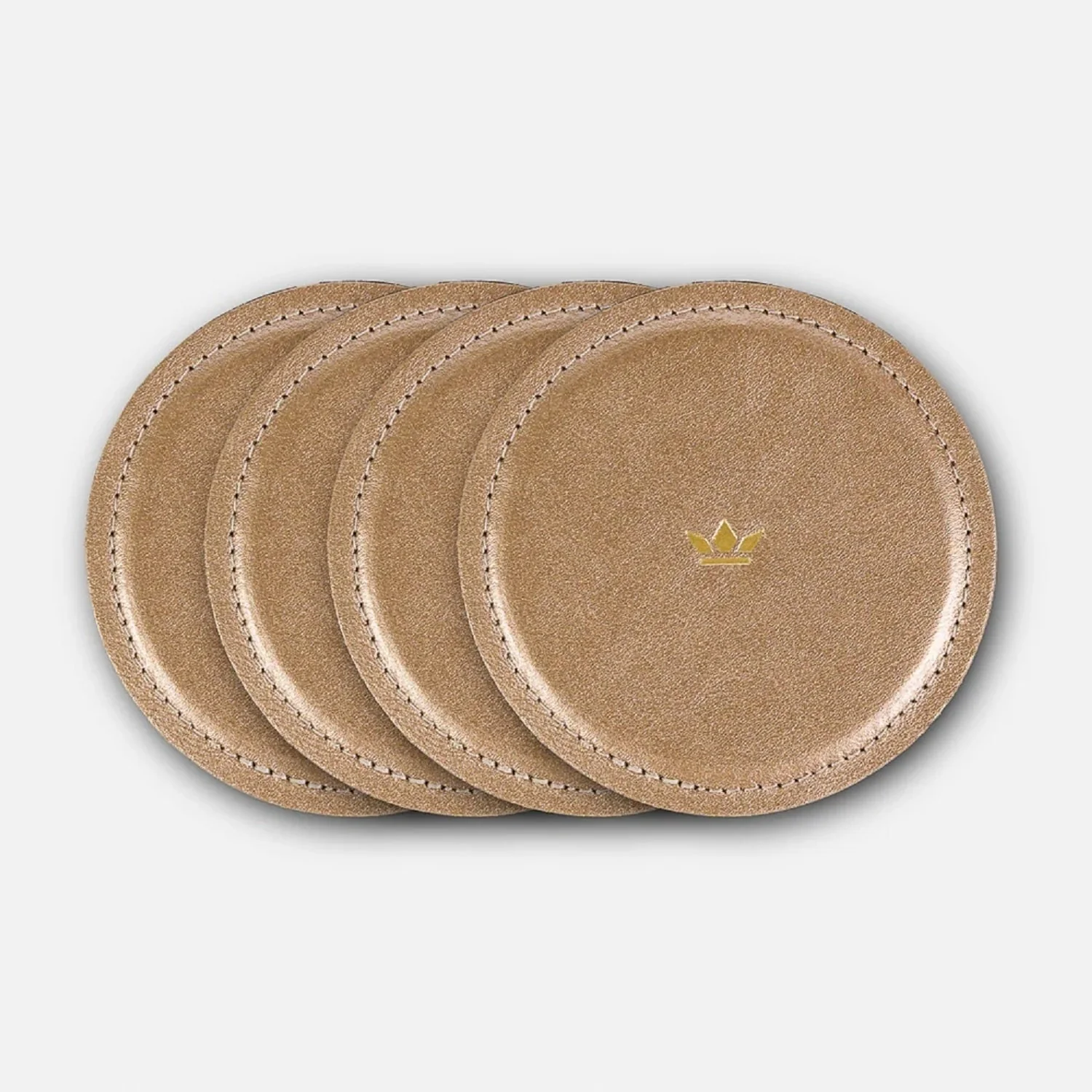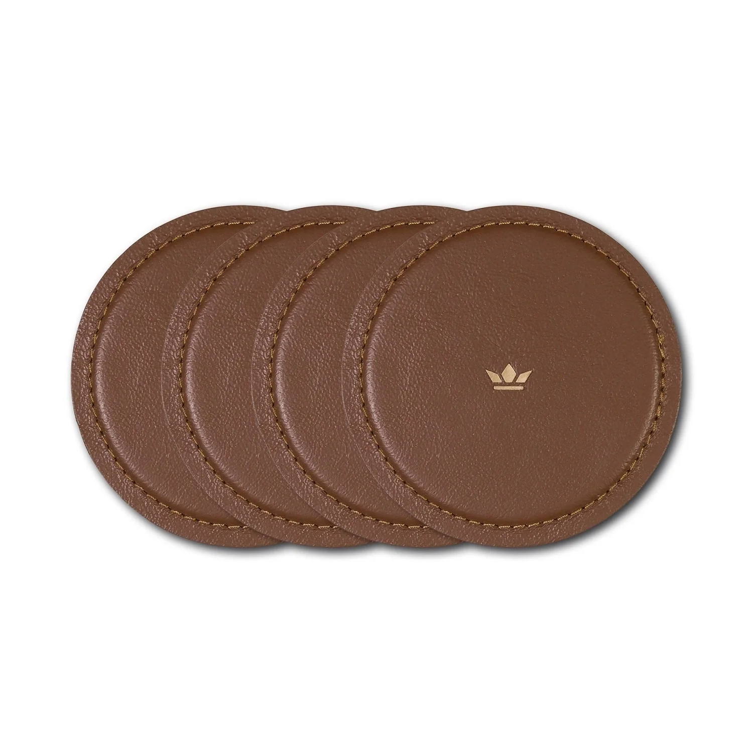 Set of 4 Black Leather Coasters Dia 3.9" - Black