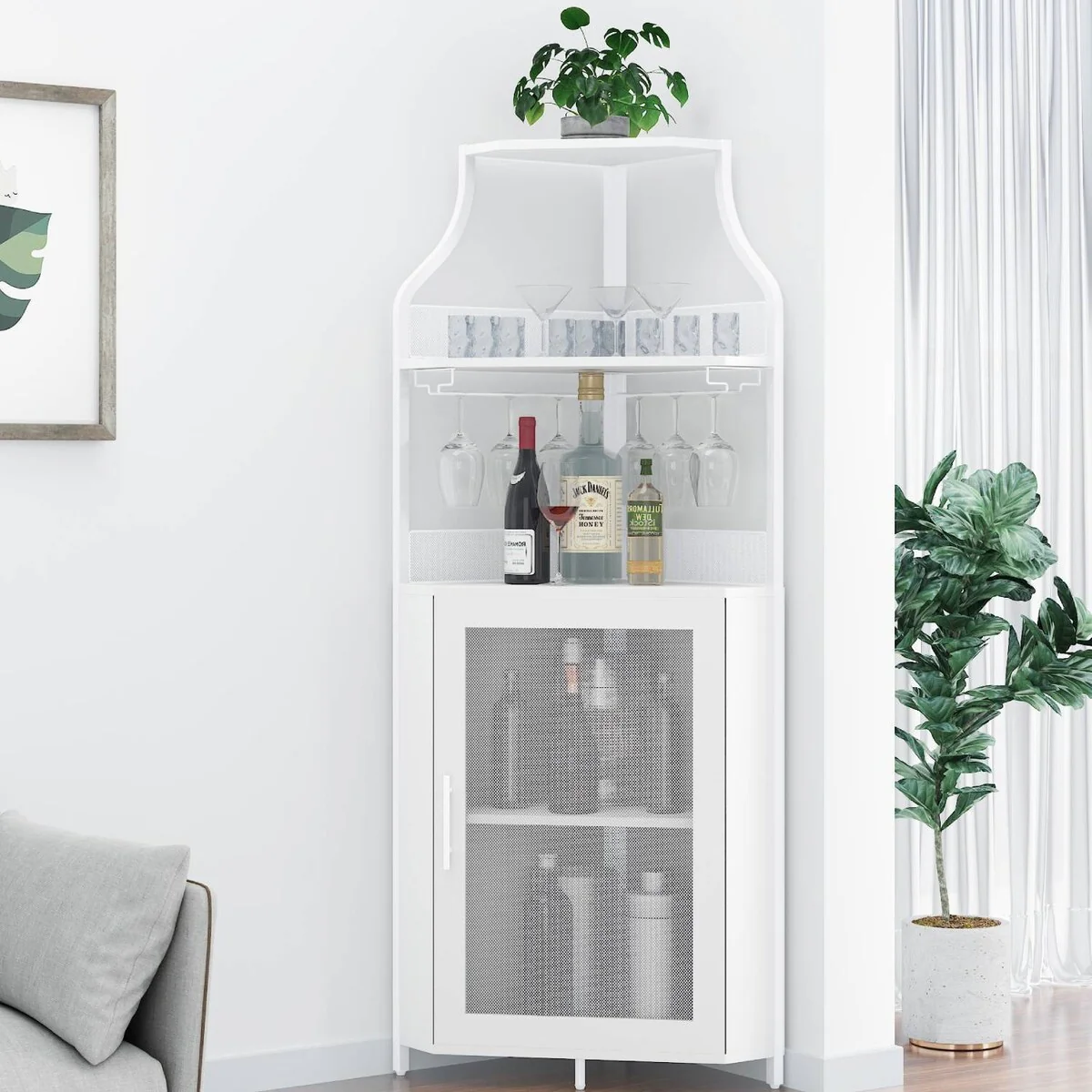 White Corner Wine Cabinet with Detachable Wine Rack - N/A
