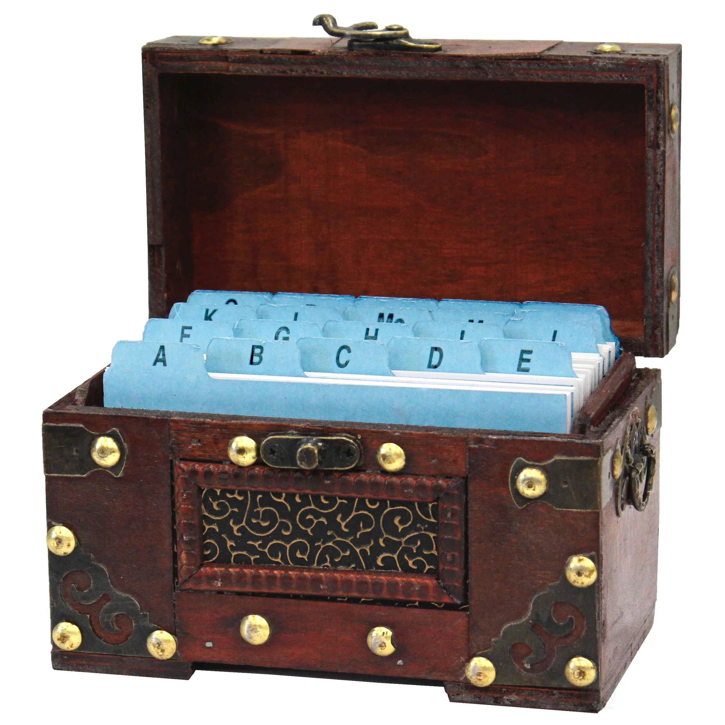 Decorative Vintage Wooden Index and Recipe Card Box – Rustic Organizer, Perfect Gift