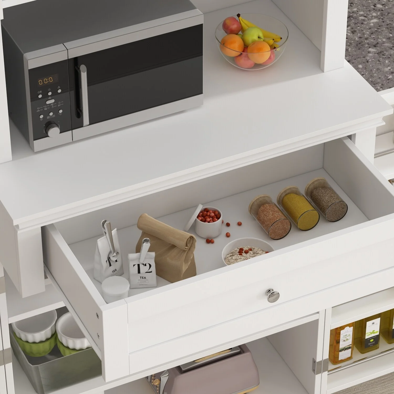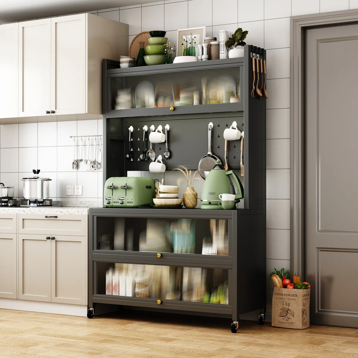 Kitchen Storage Cabinets with wheels - Bakers Rack Countertop, Microwave Oven Shelf Cabinet, Storage Organizer