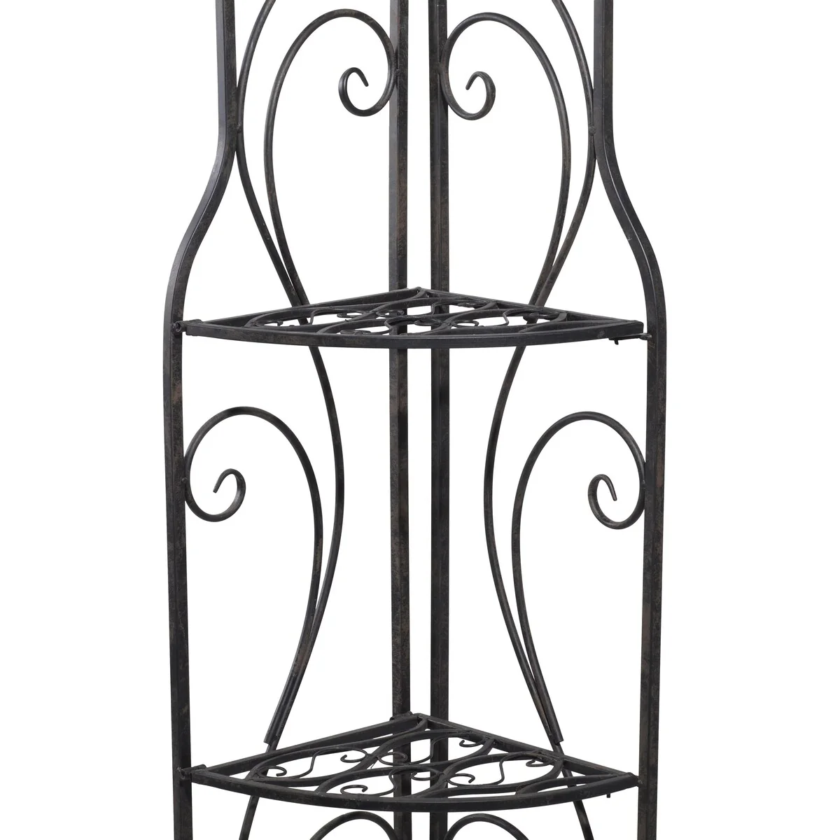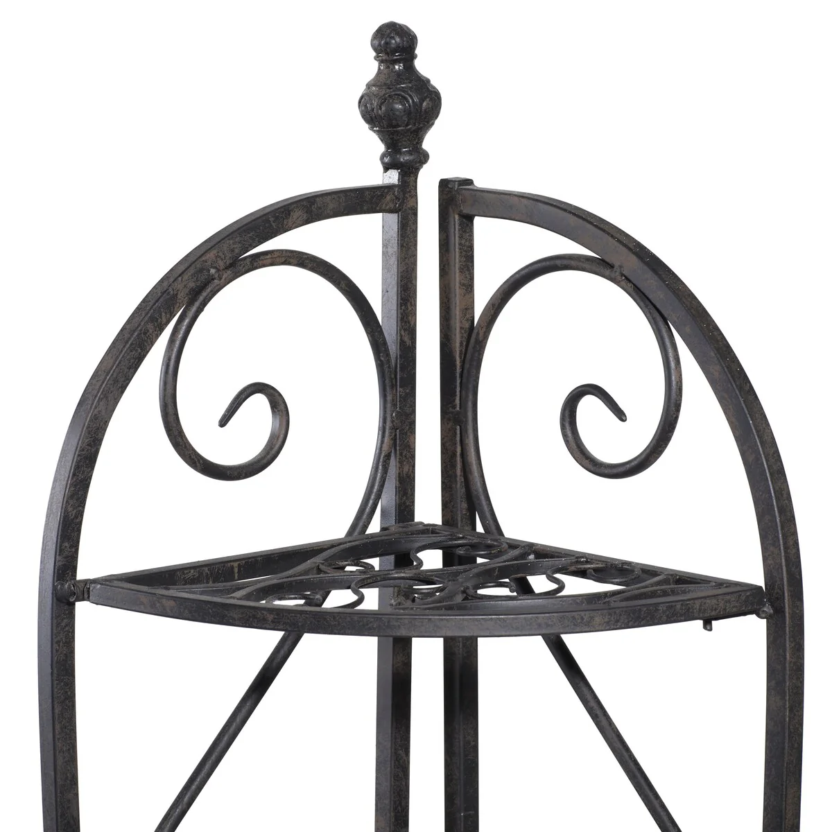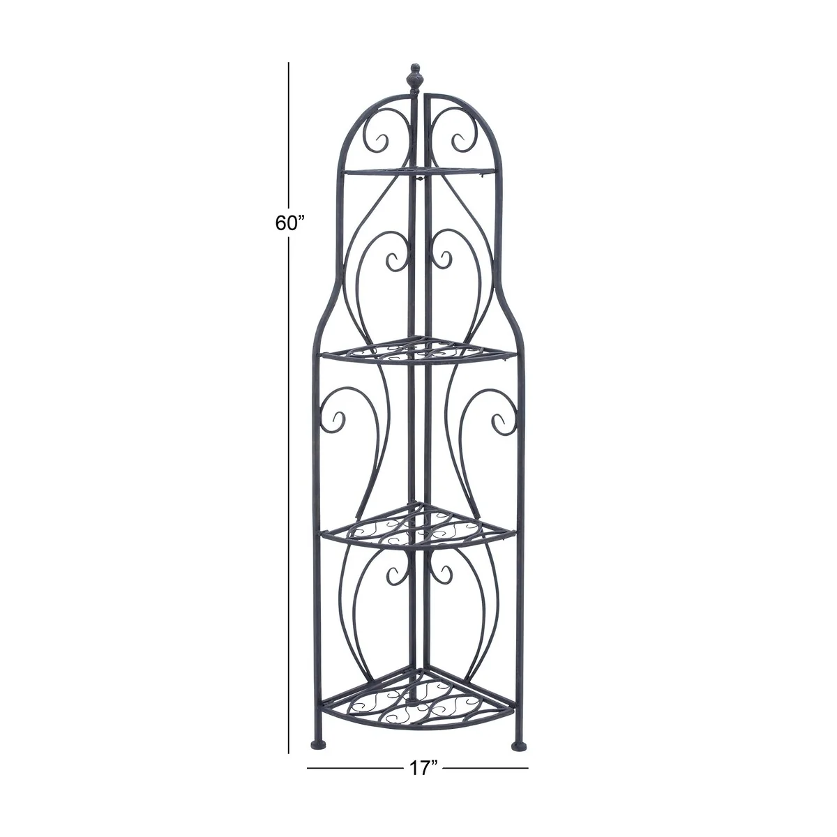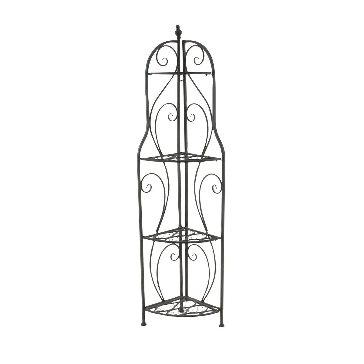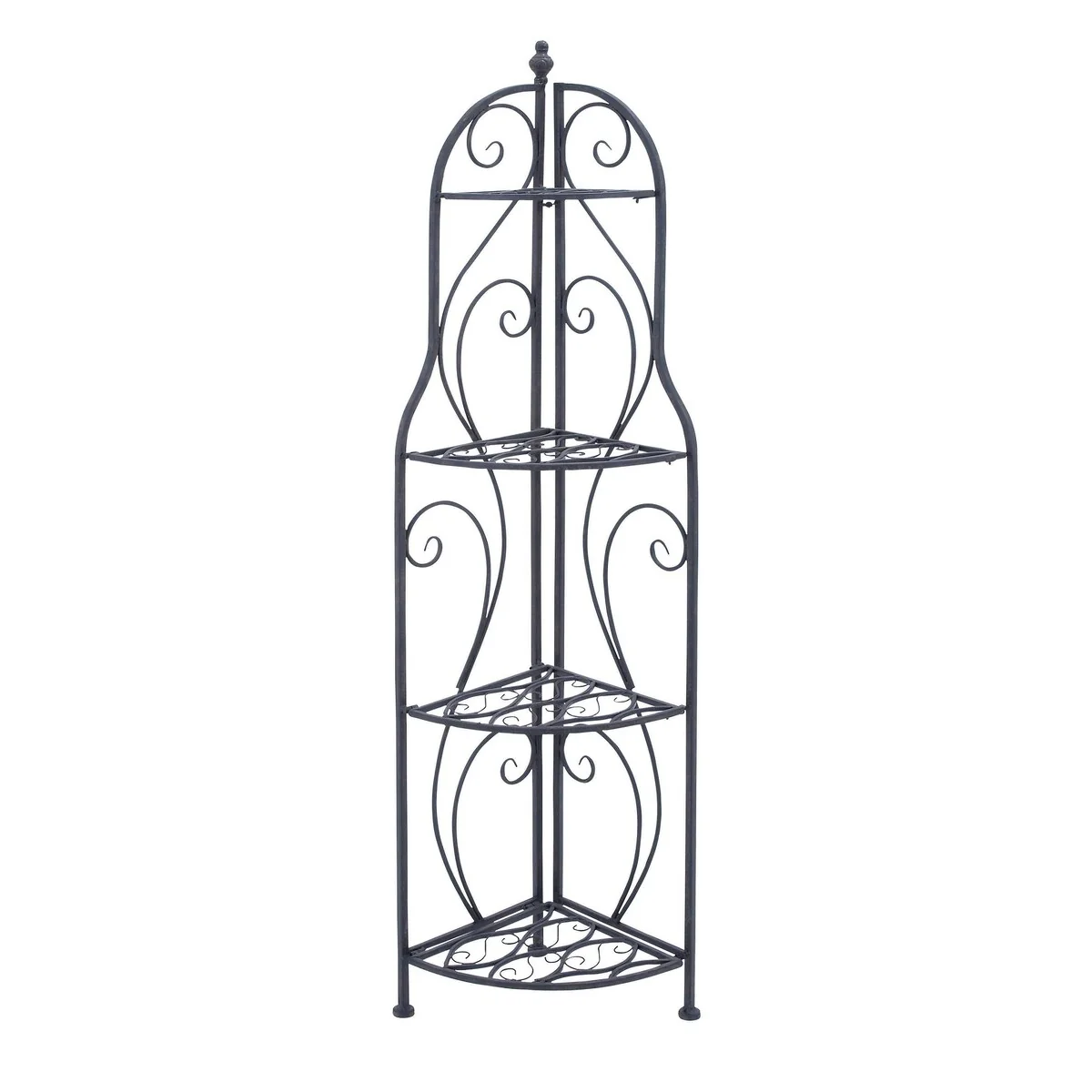 Metal Scroll Indoor Outdoor Arched Tall Folding Corner 4 Shelf Bakers Rack - Black - Roche River Decor