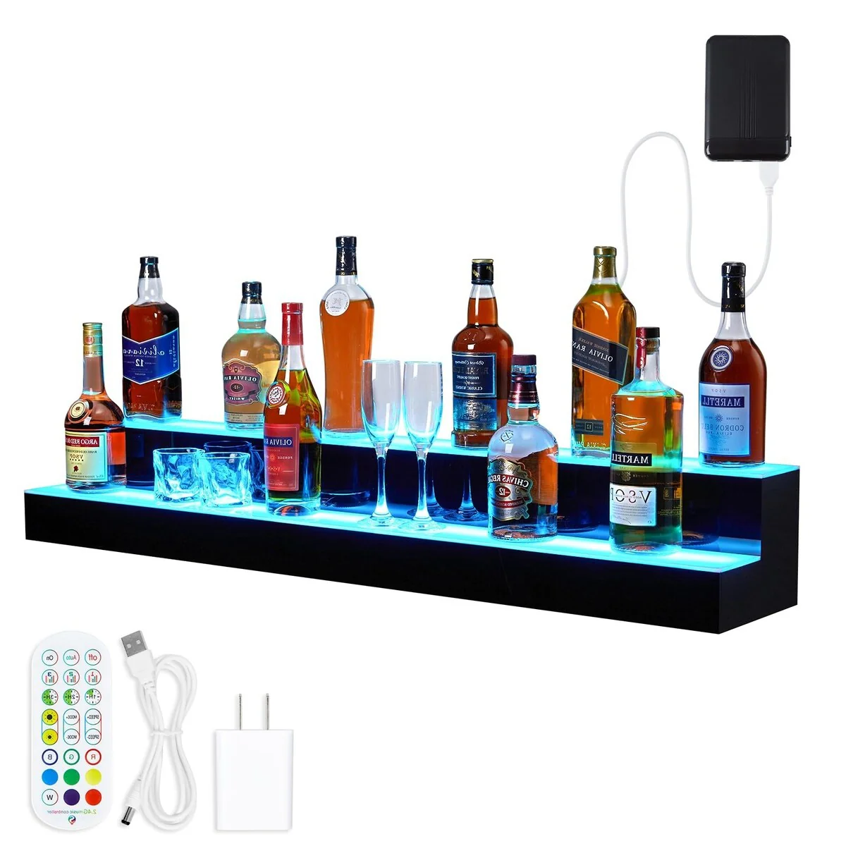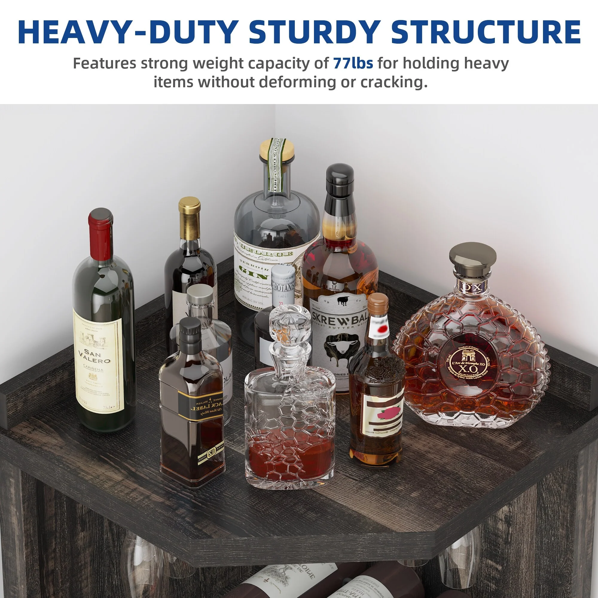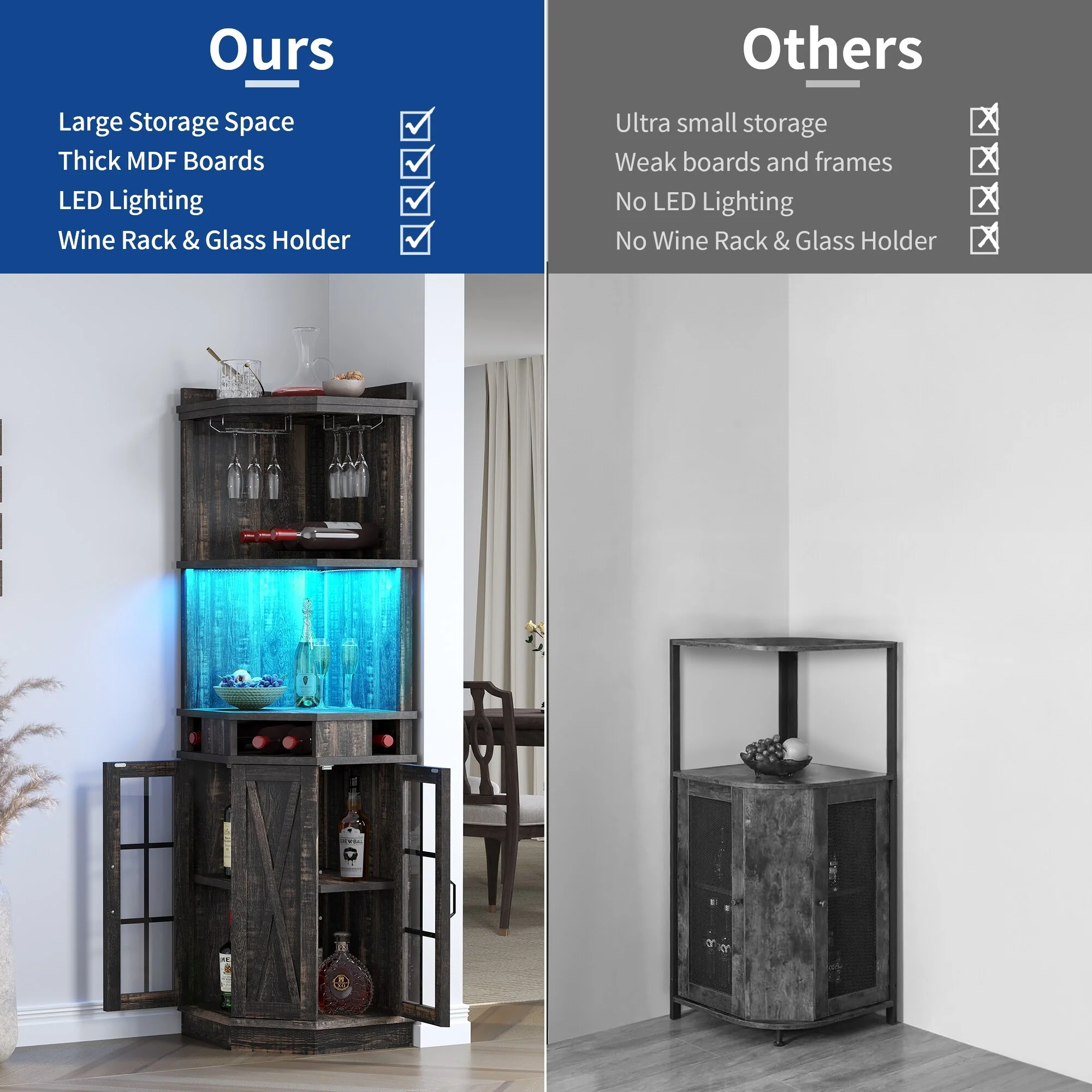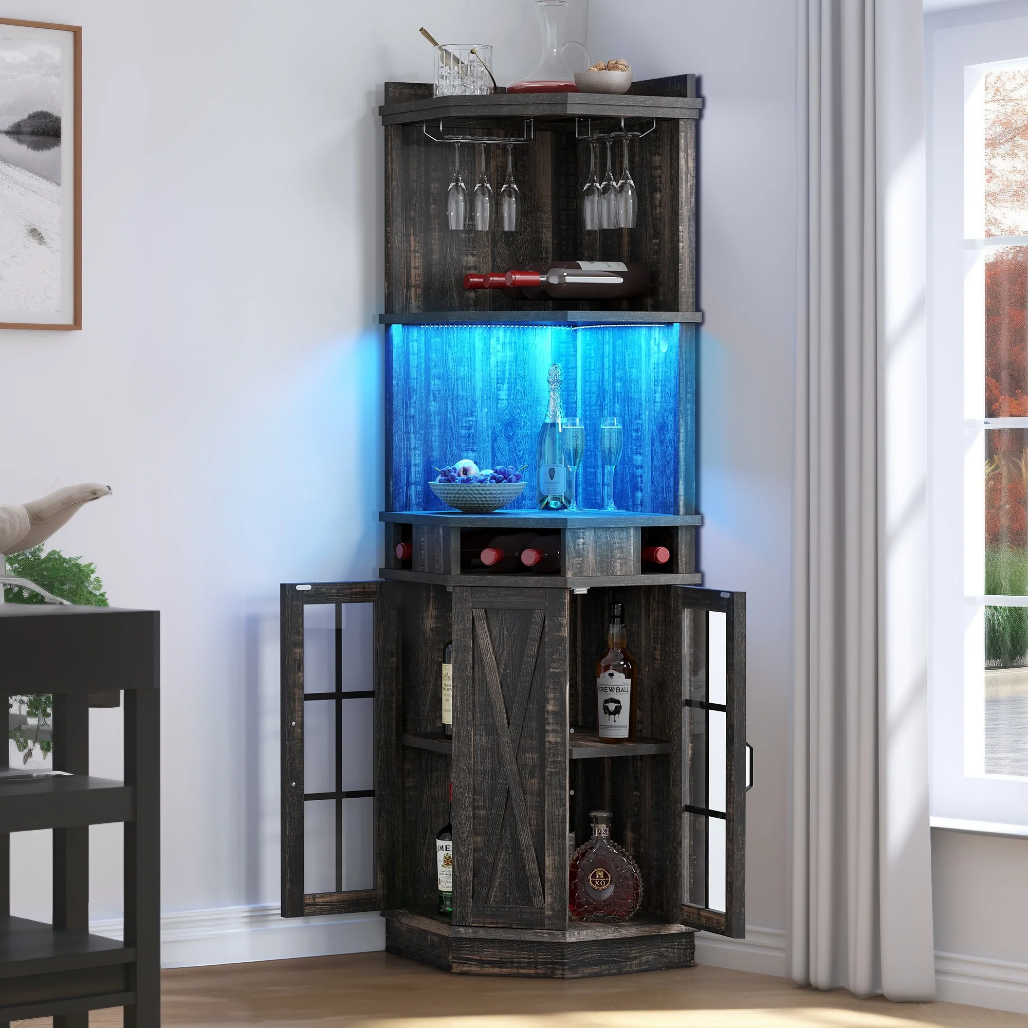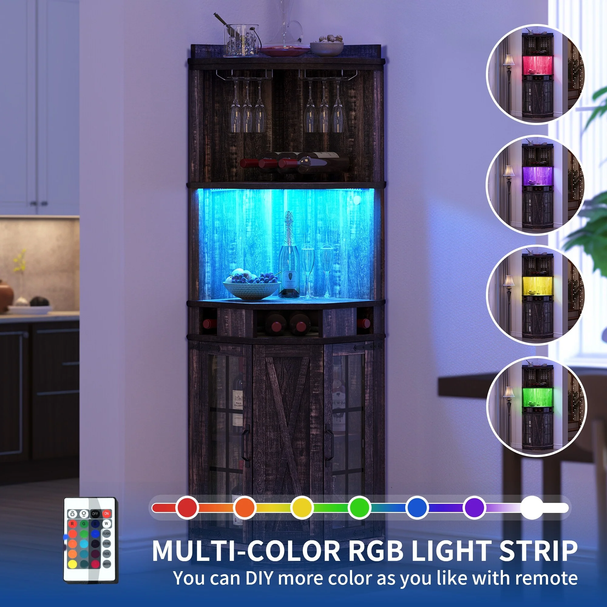 Moasis Corner Bar Cabinet Wine Rack Display Shelves with RGB Lights and Glass Holder