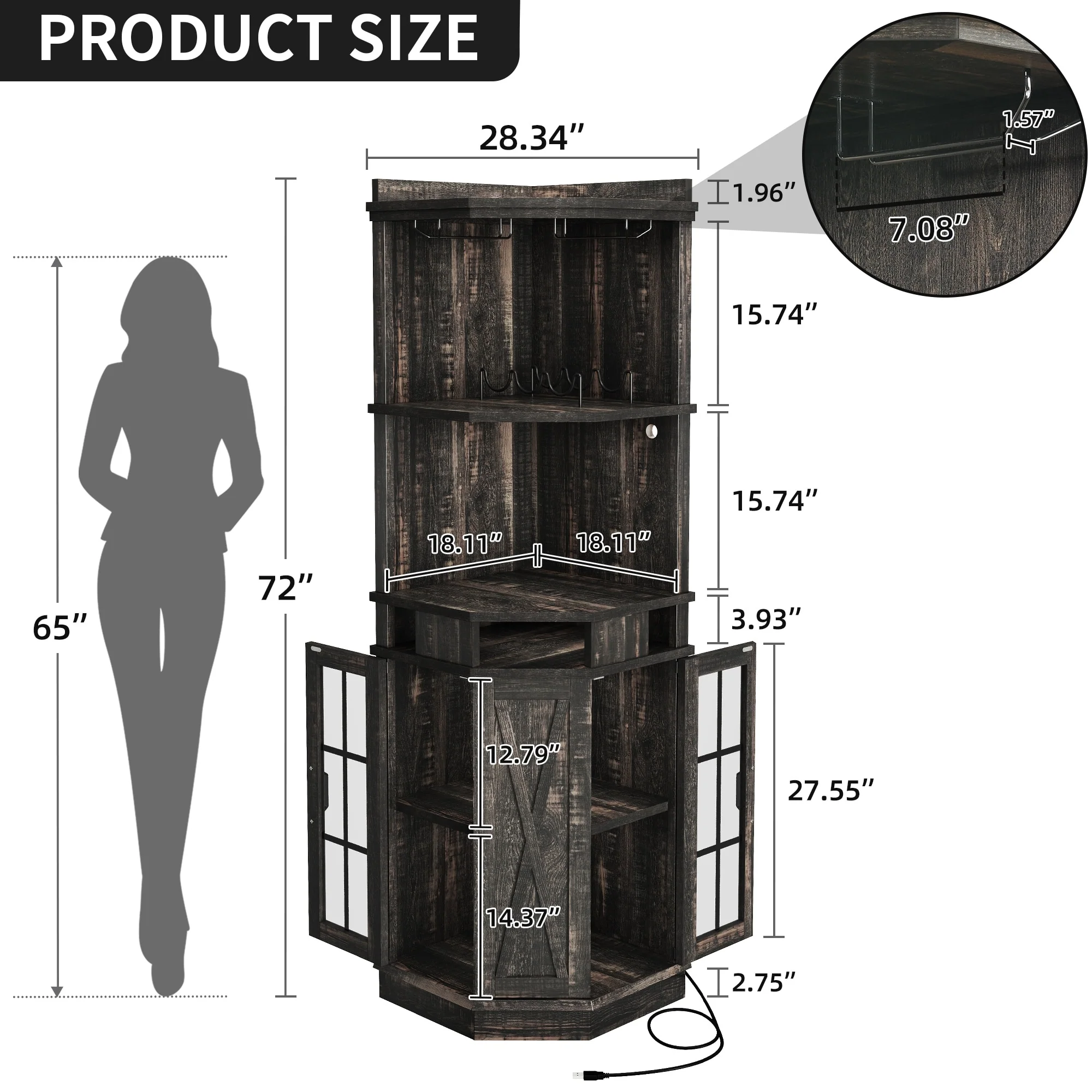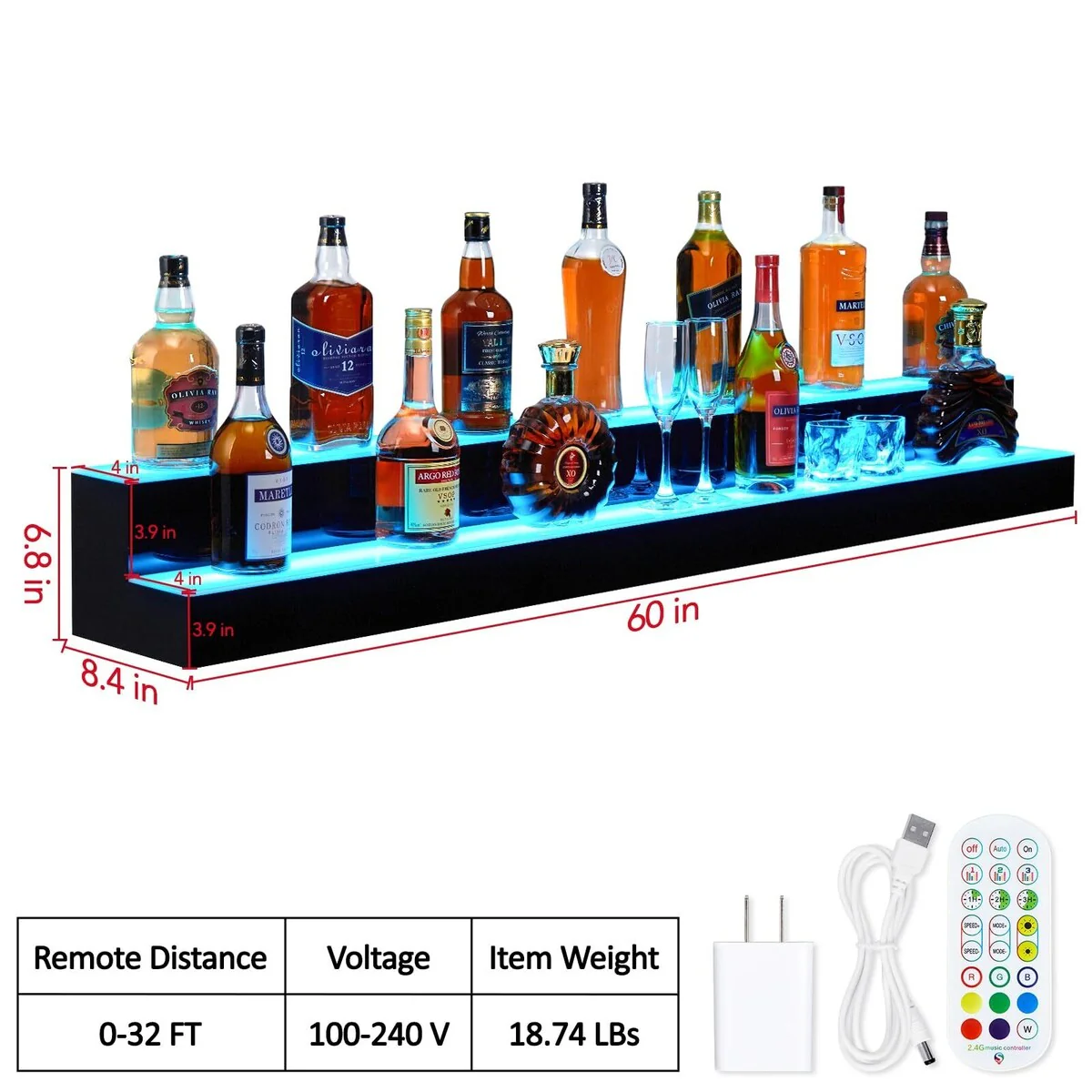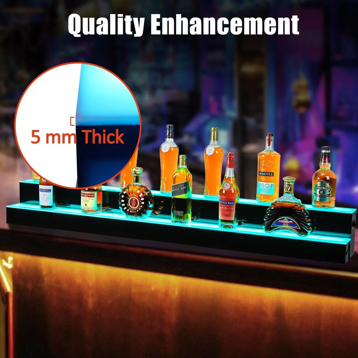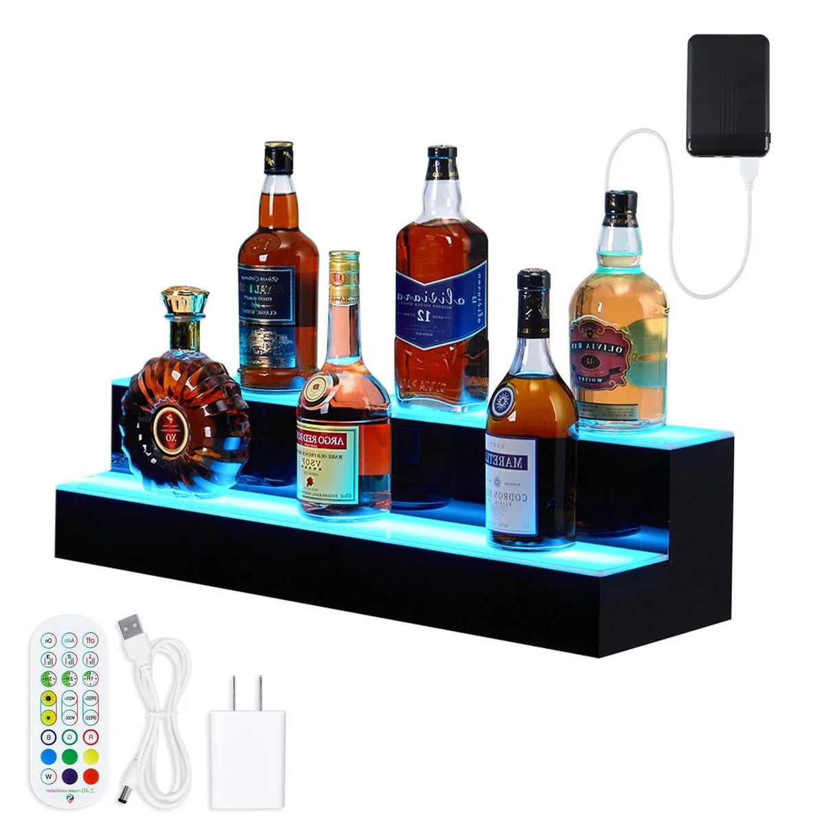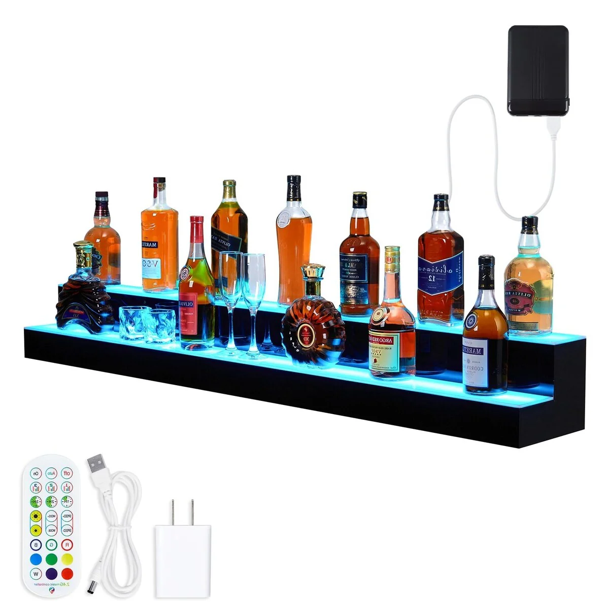 Moasis Corner Bar Cabinet Wine Rack Display Shelves with RGB Lights and Glass Holder