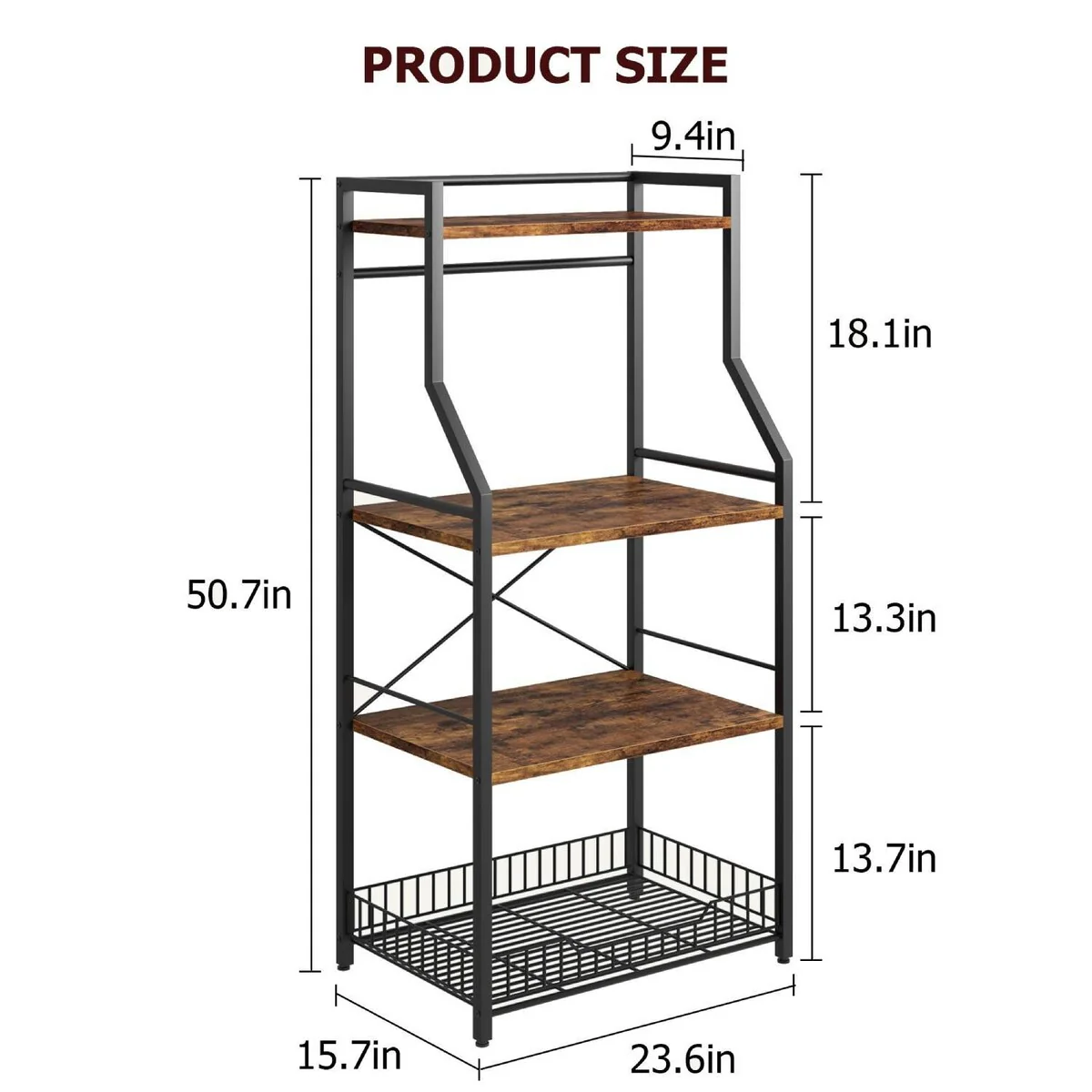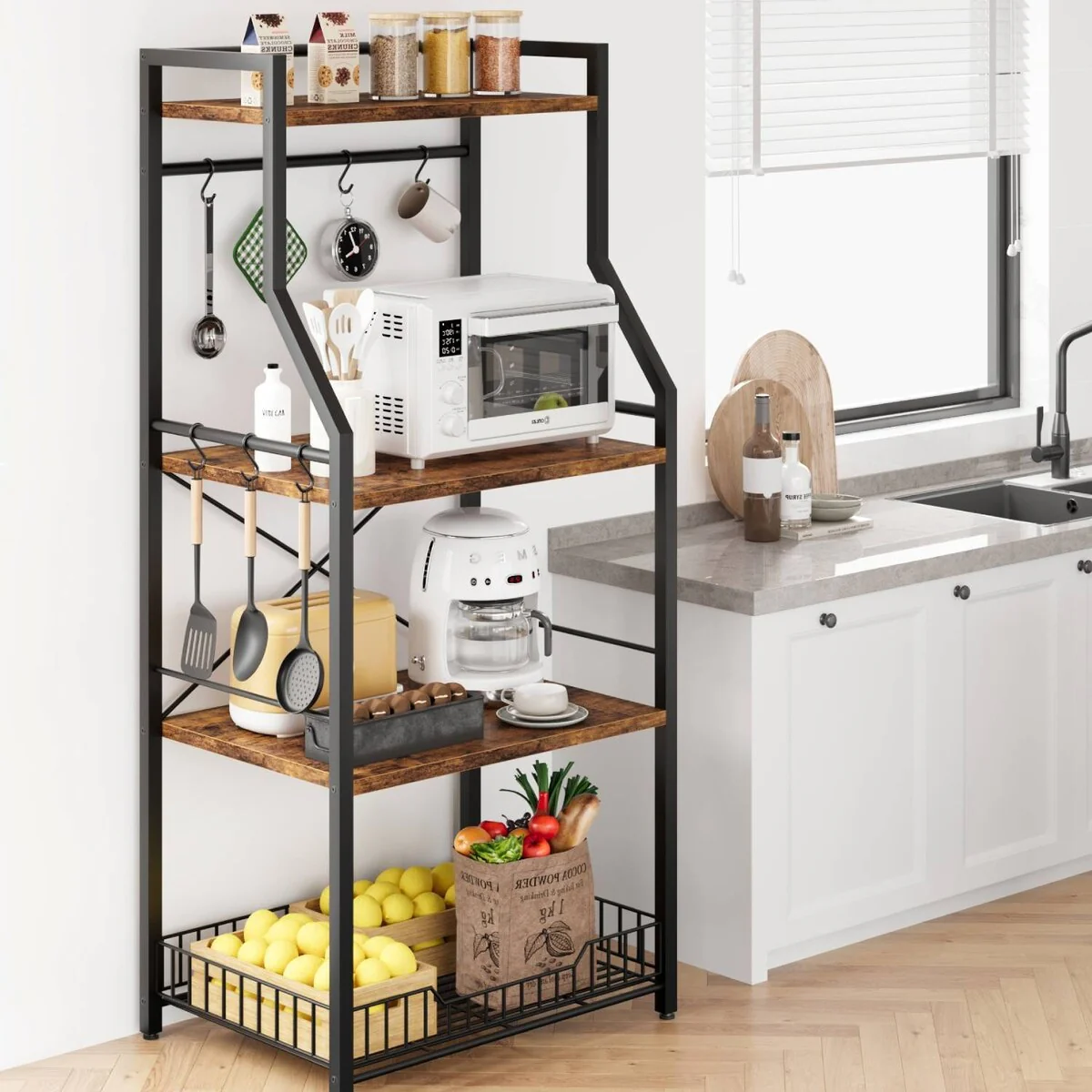 4-Tier Kitchen Bakers Rack with Wire Basket