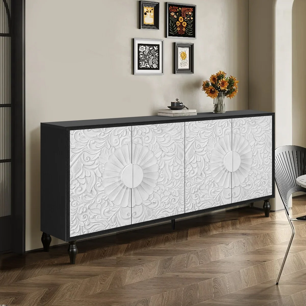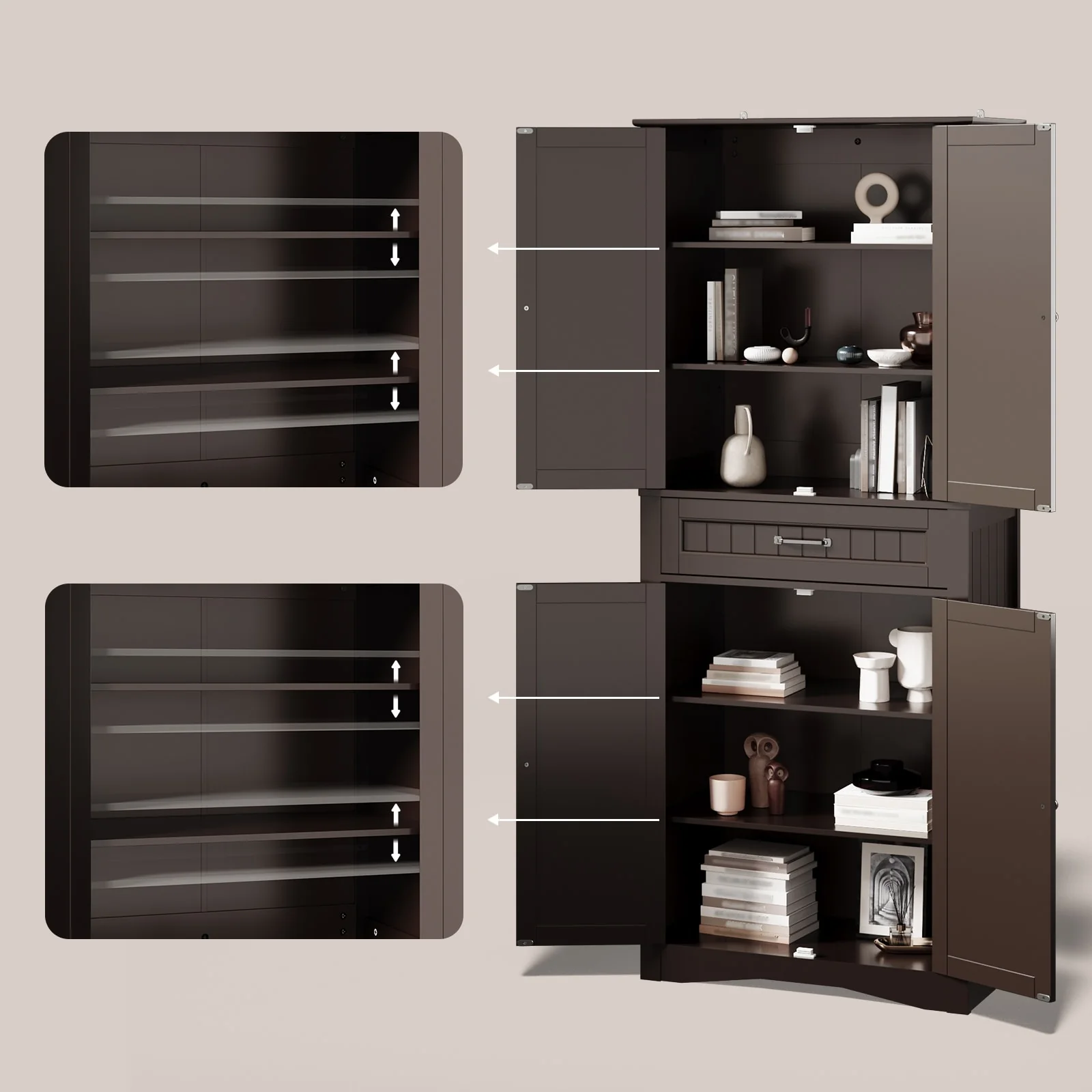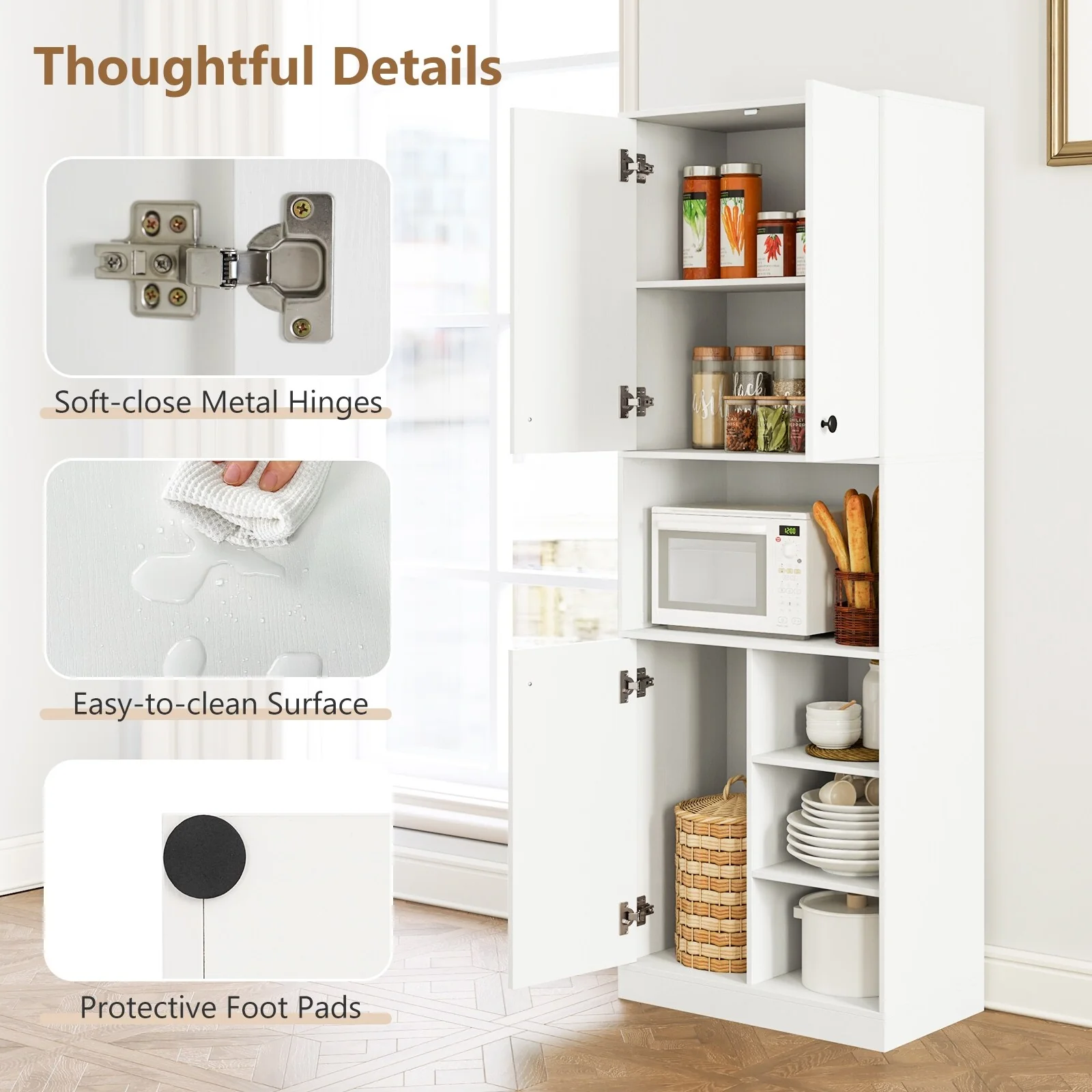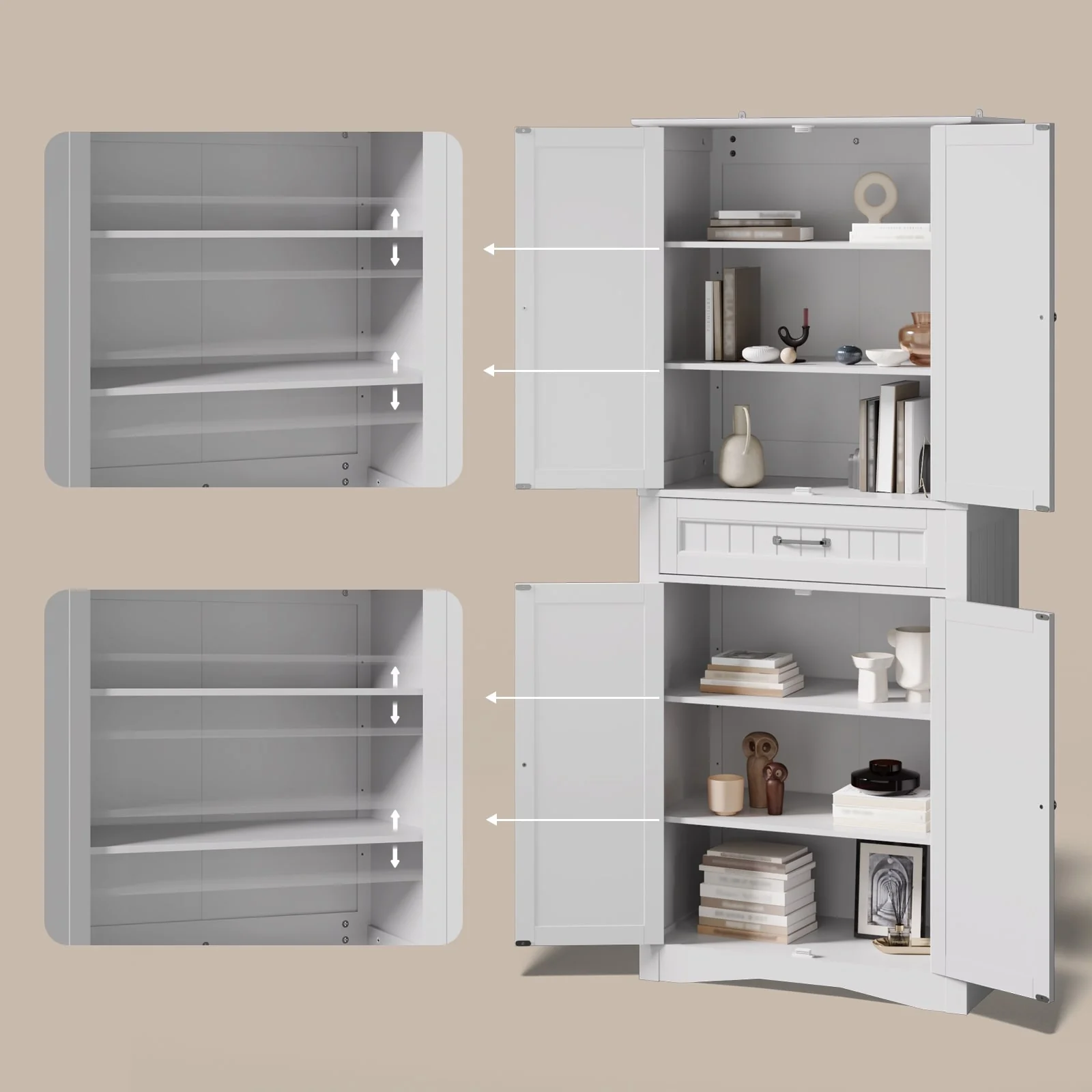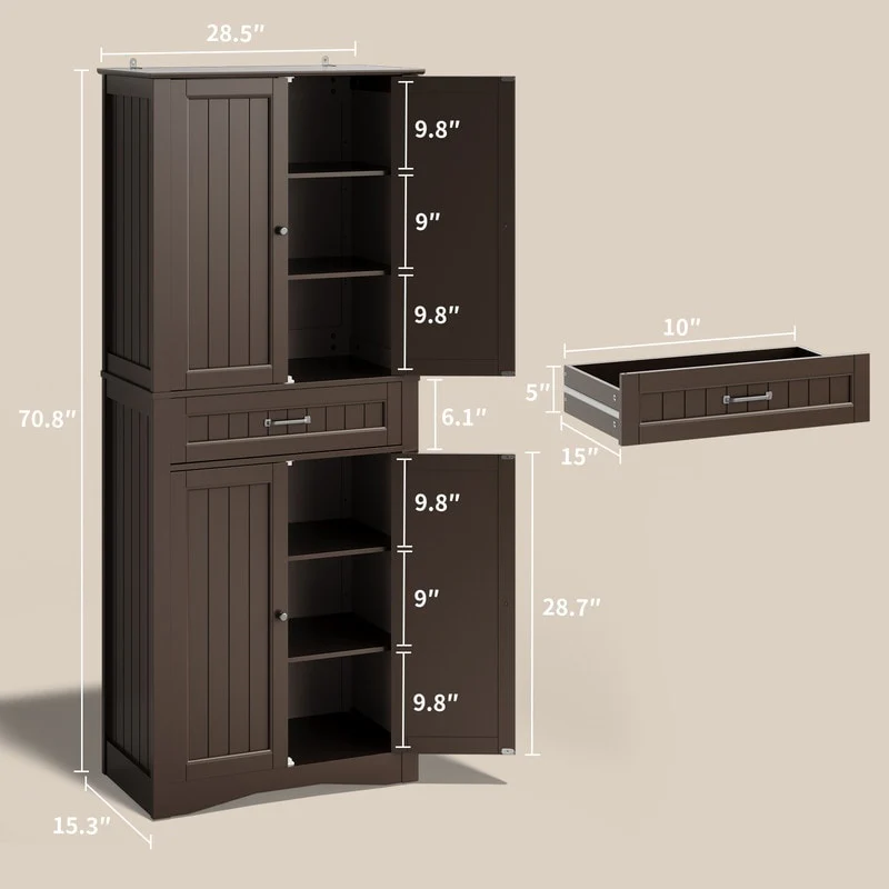 71''Kitchen Pantry Storage Cabinet, Storage Cabinet Buffet, Freestanding Kitchen Storage Cabinet with 4 Adjustable Shelves