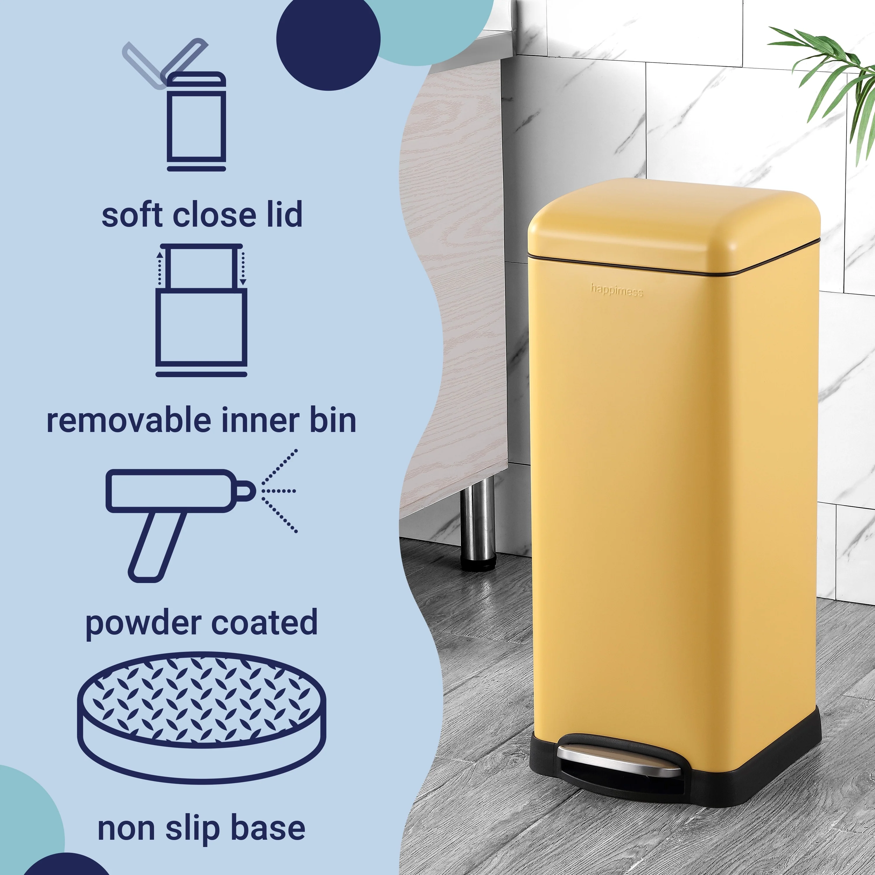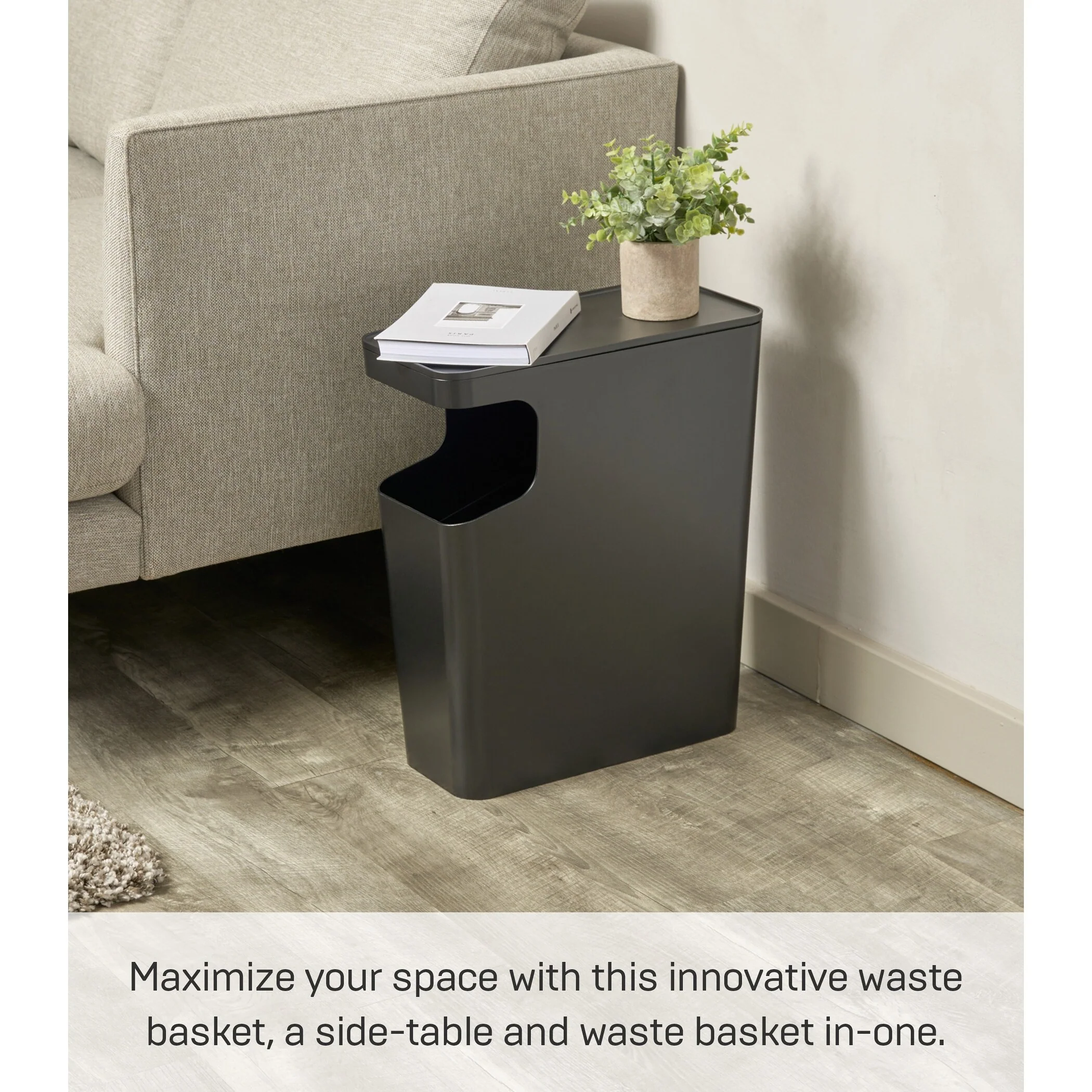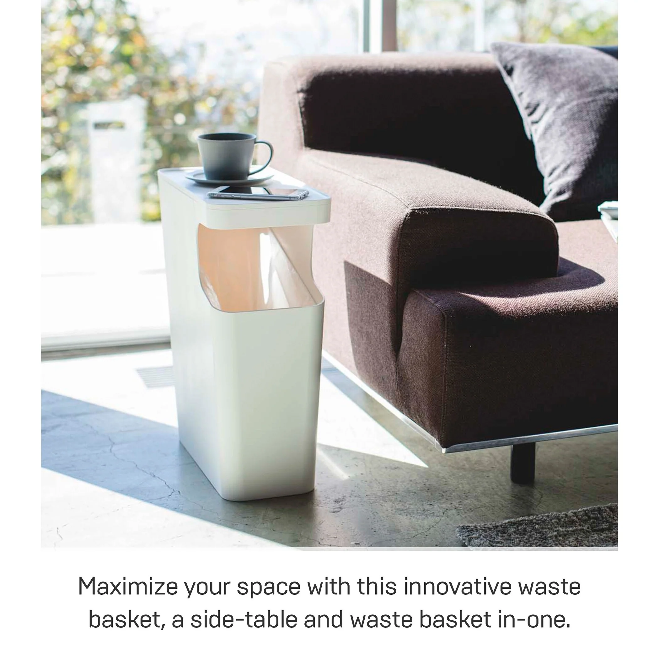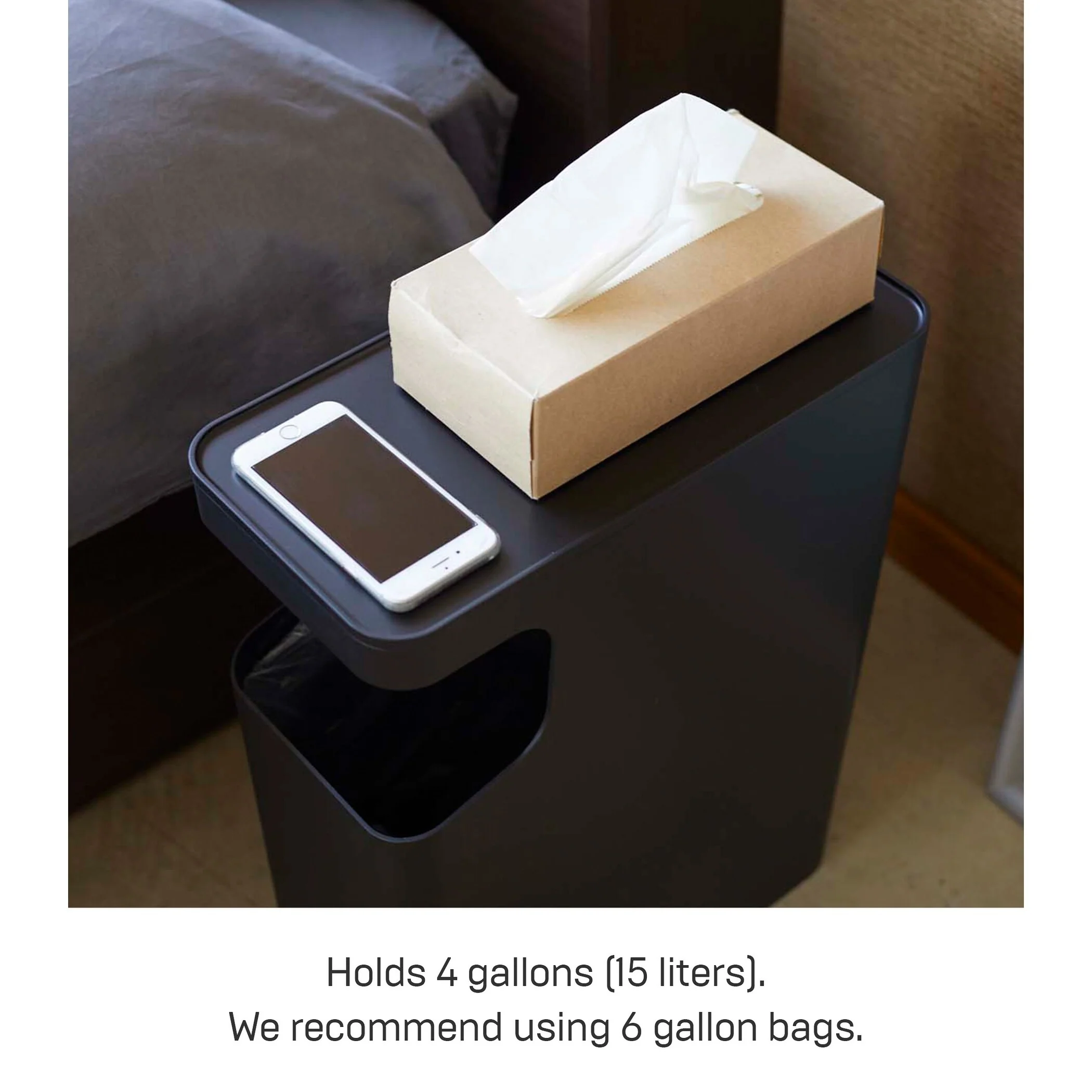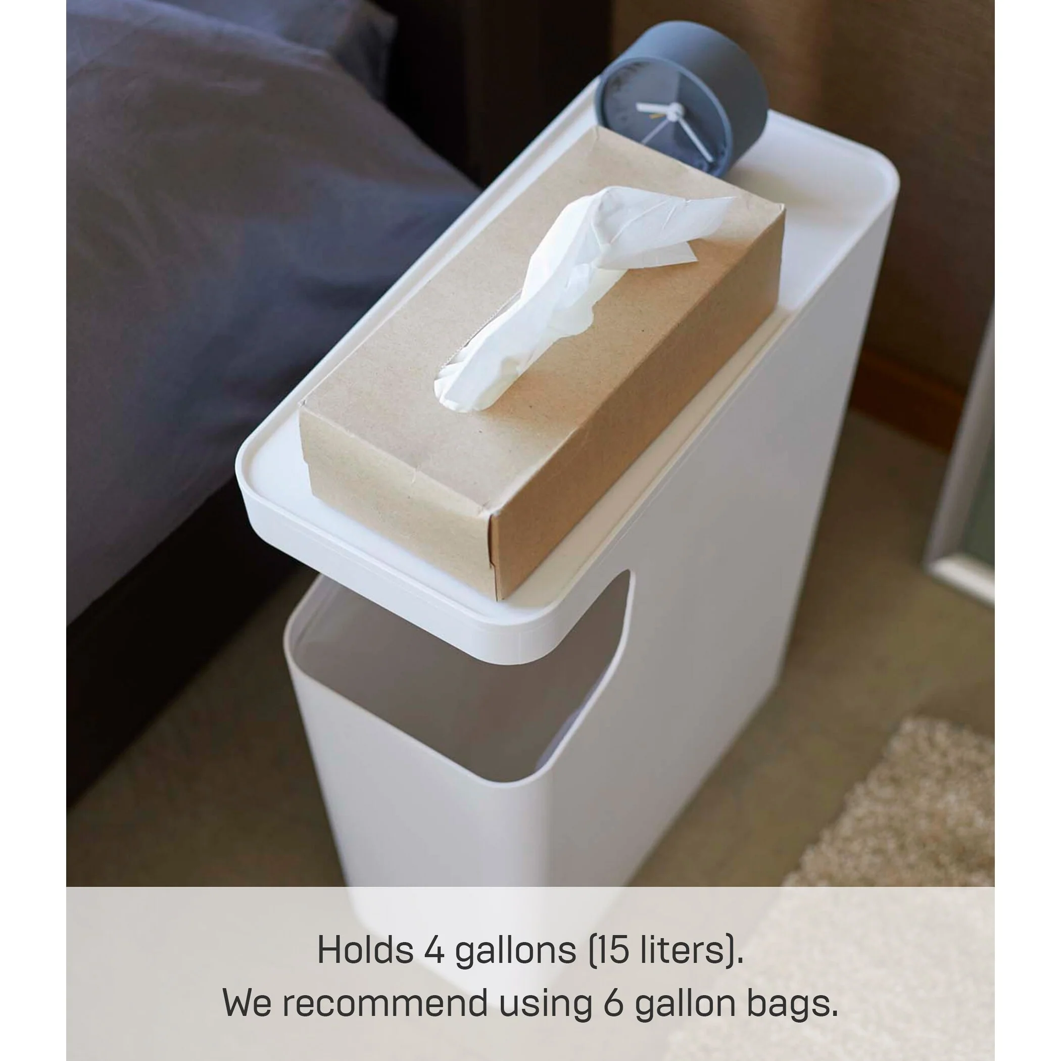 Yamazaki Home Side Table Trash Can, ABS Plastic, 4 gallons, 15 liters