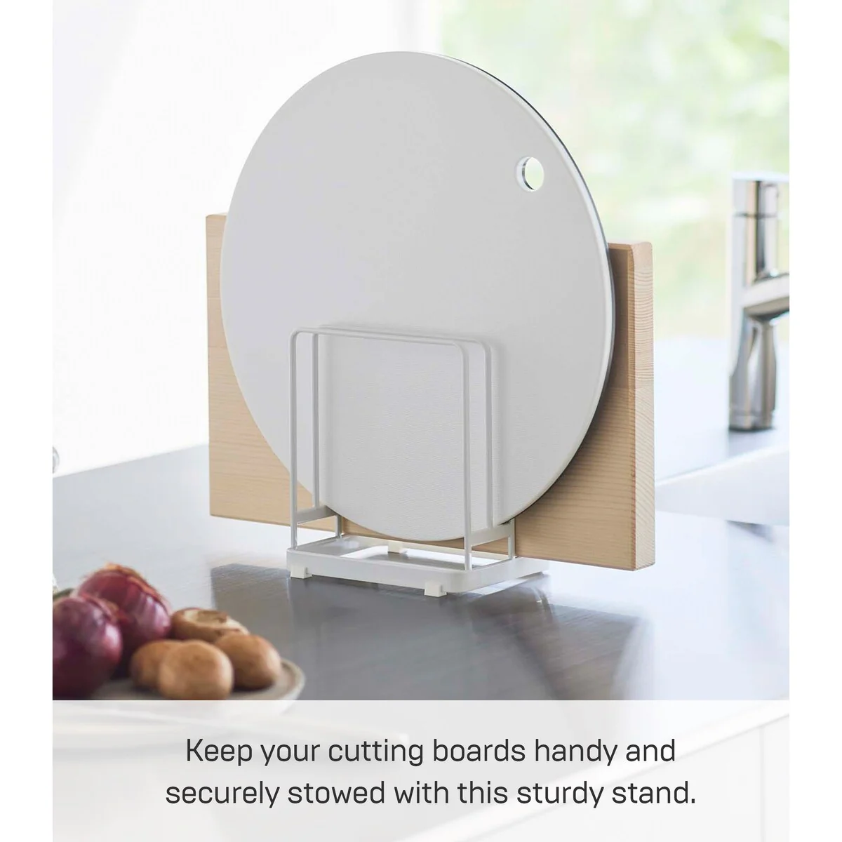 Yamazaki Home Round Cutting Board Stand, Steel - L 4.65 x W 6.3 x H 6.89 inches
