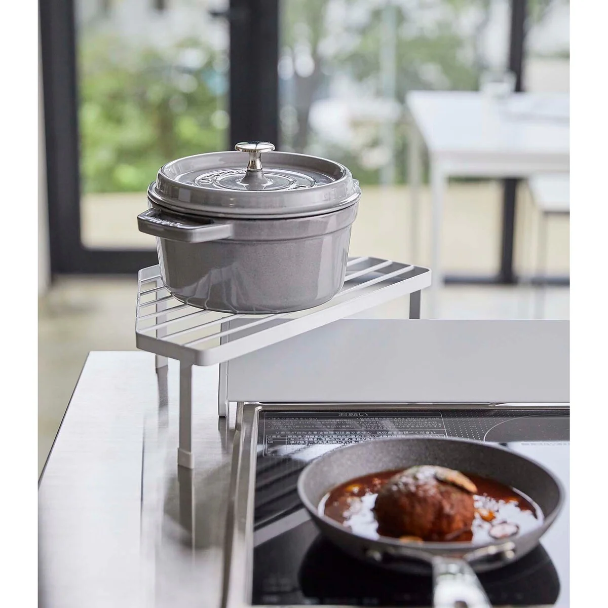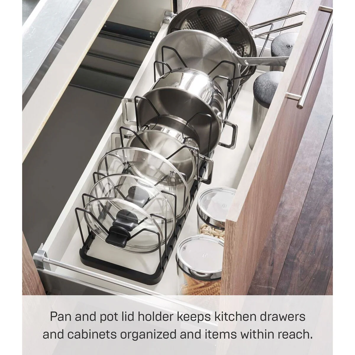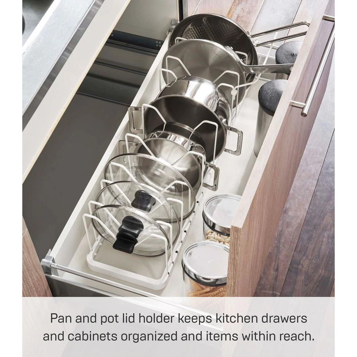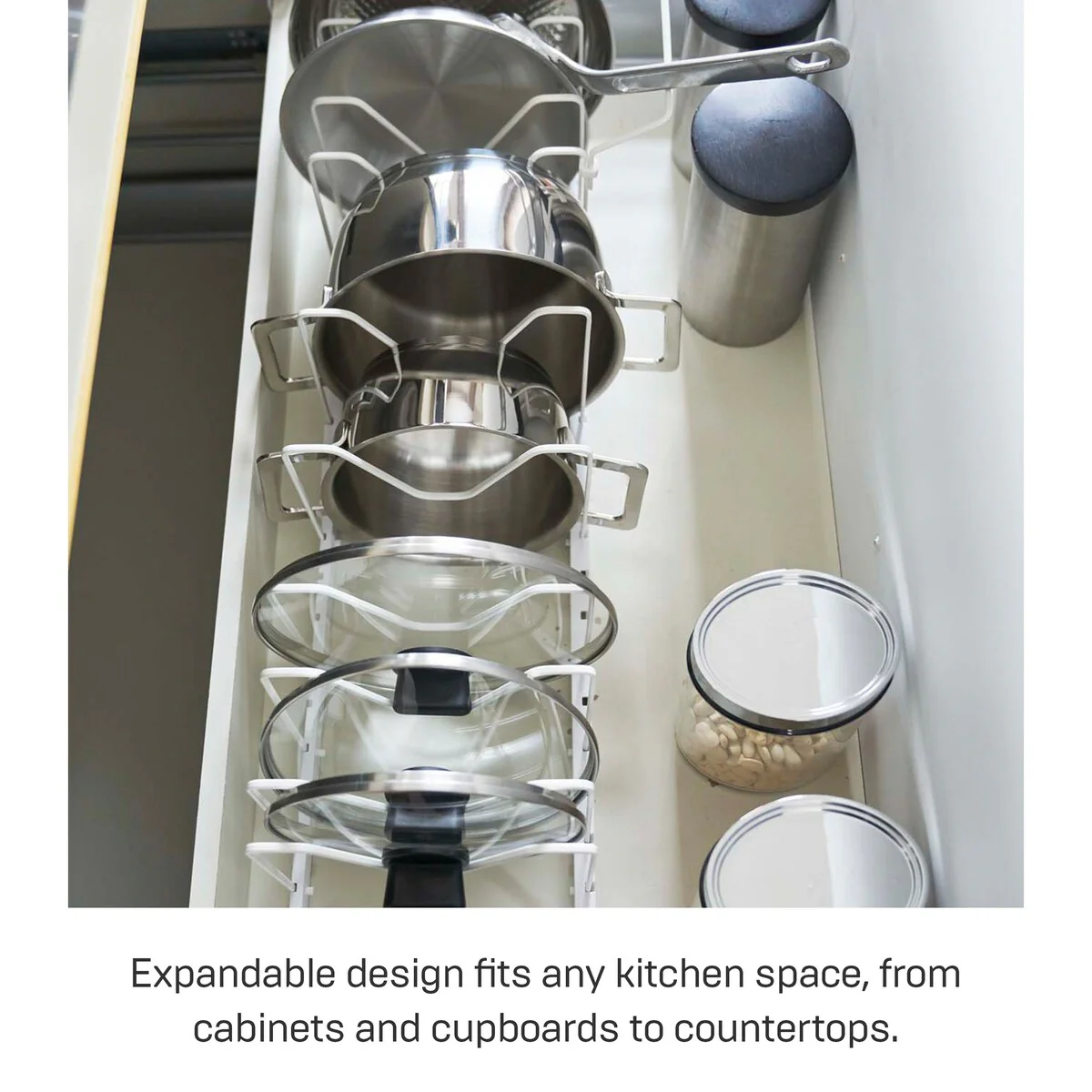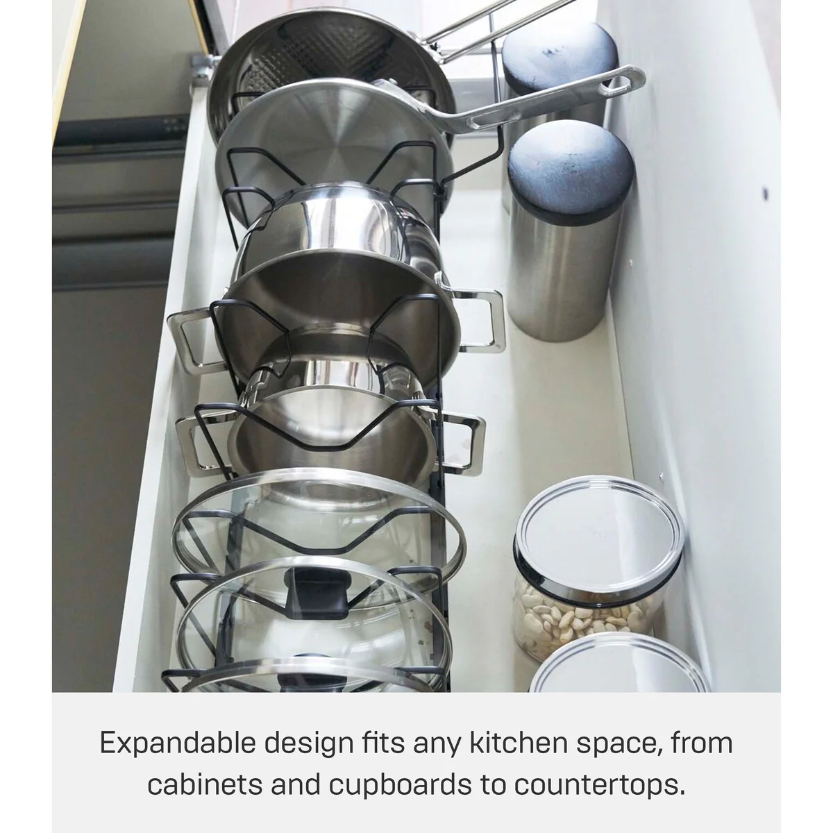 Yamazaki Home Adjustable Pot Lid Organizer, Steel - L 7.87 x W 17.72 x H 6.89 inches