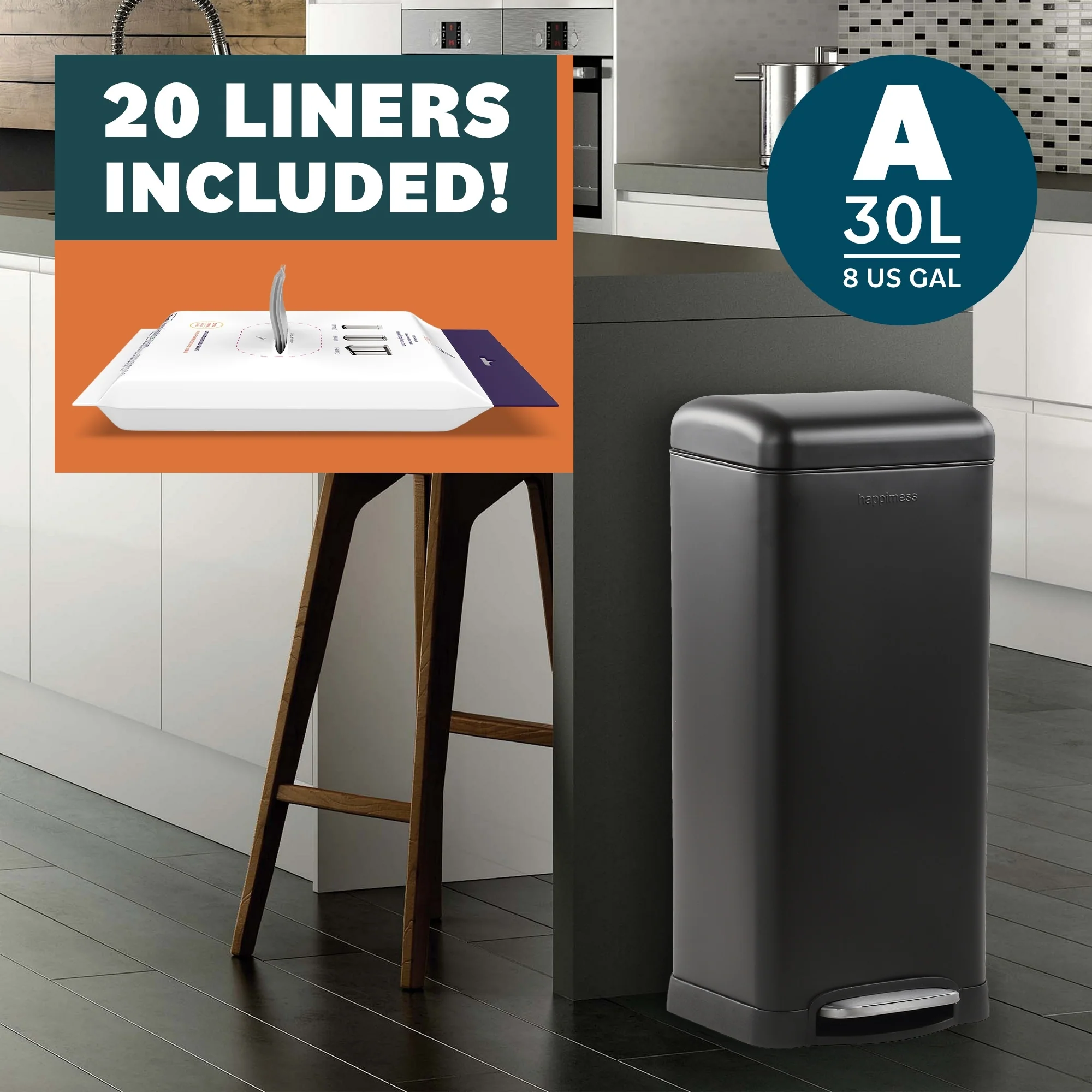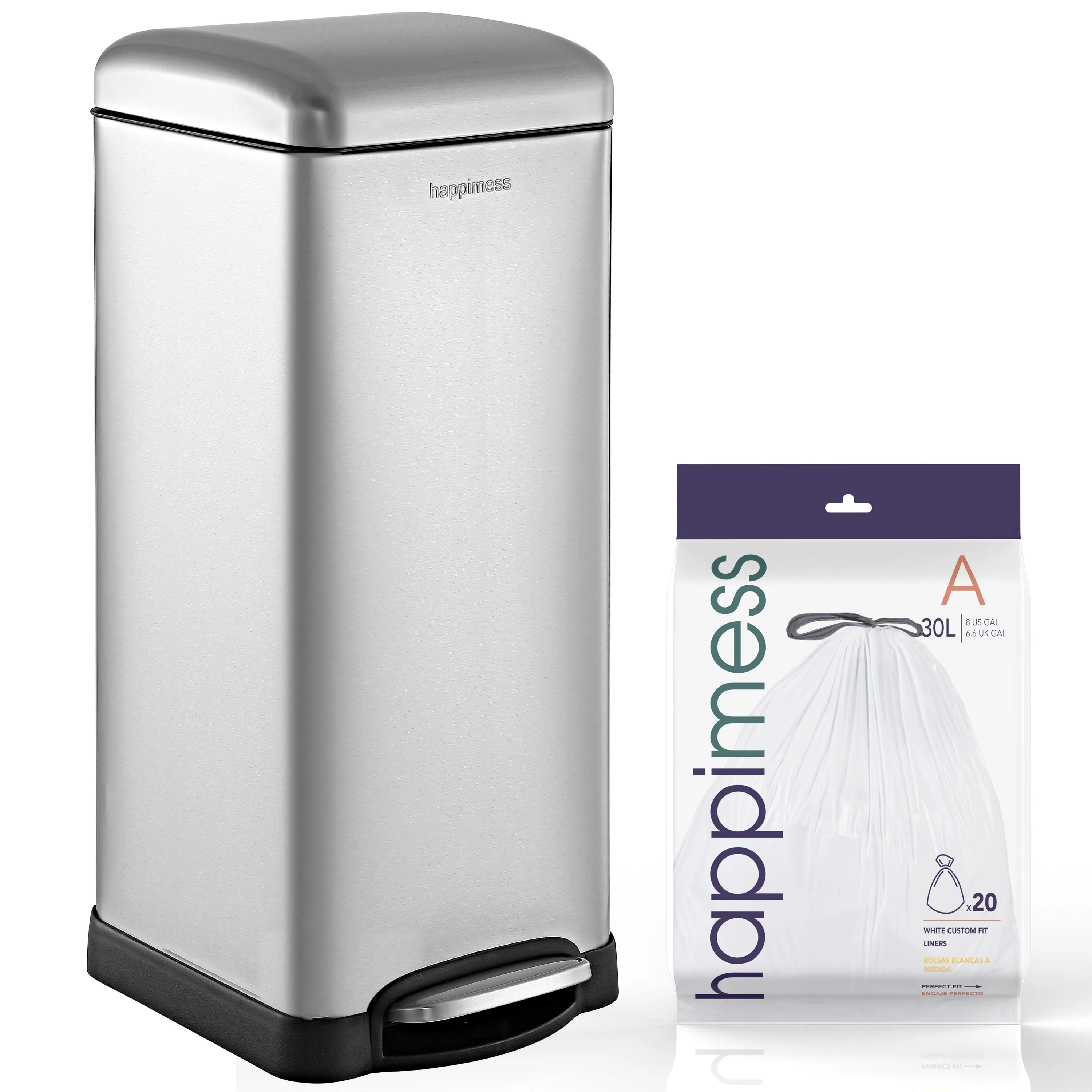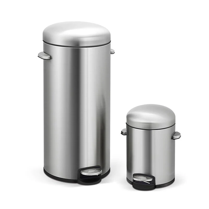 INNOVAZE 8 Gal./30-Liter and 1.3 Gal./5-Liter fingerprint free brushed stainless steel trash can set (Retro)
