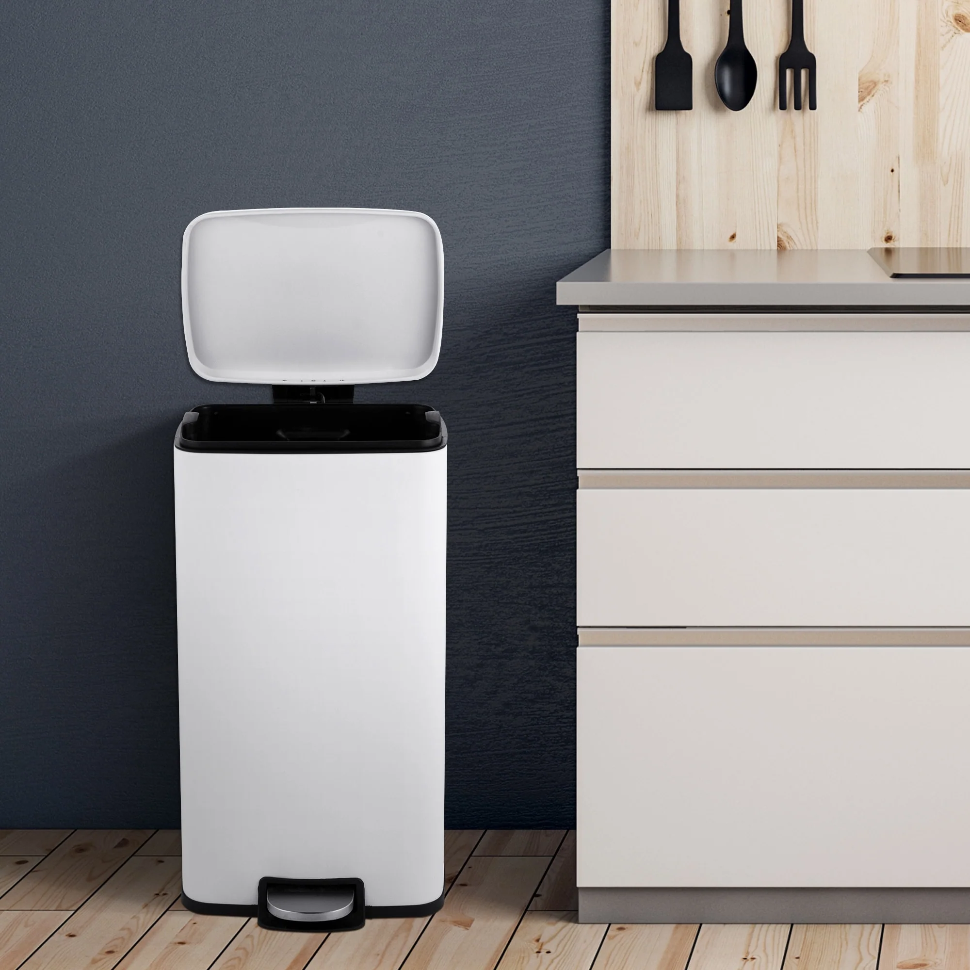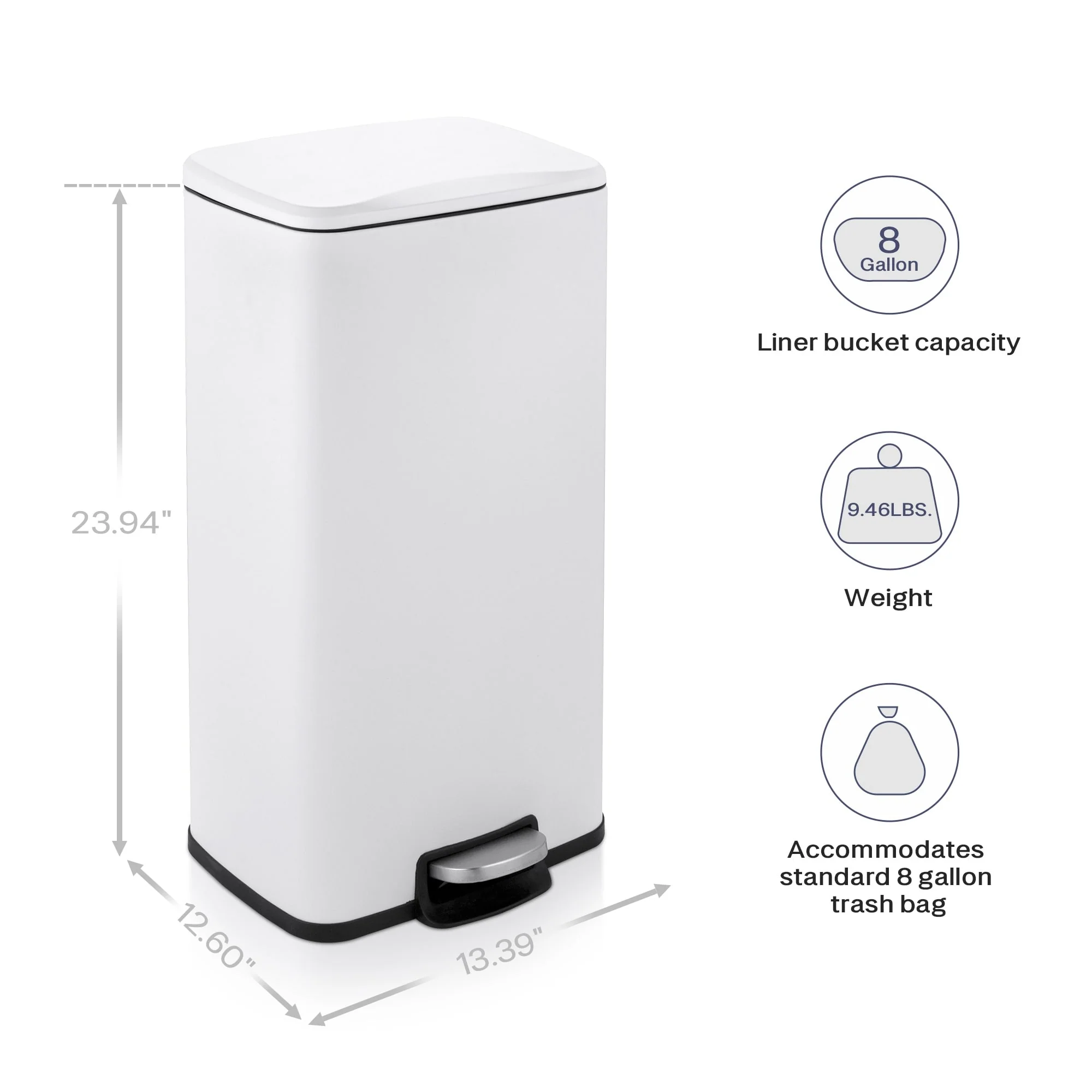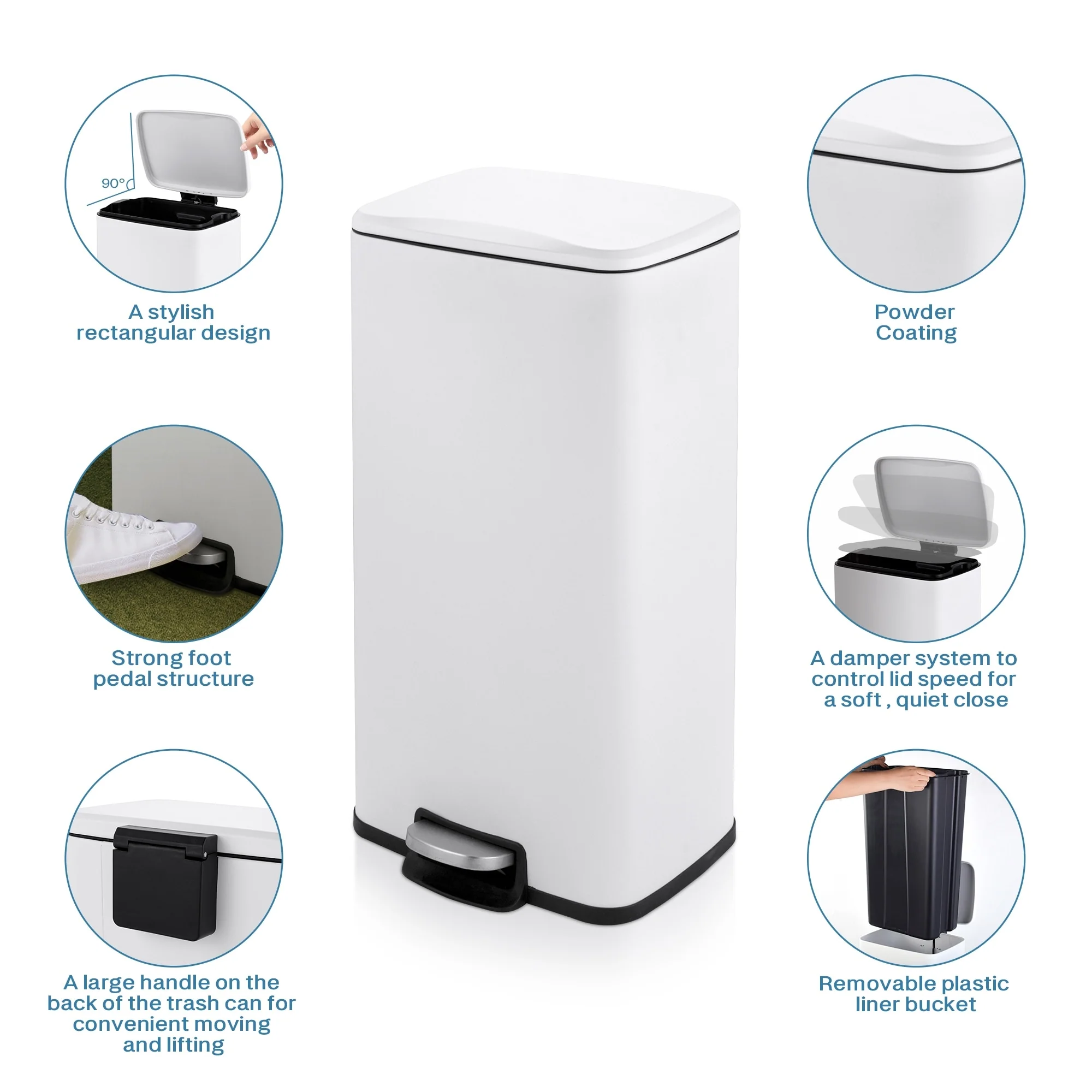Innovaze 8 Gal./30 Liter Rectangular Matt White step-on Trash Can for kitchen