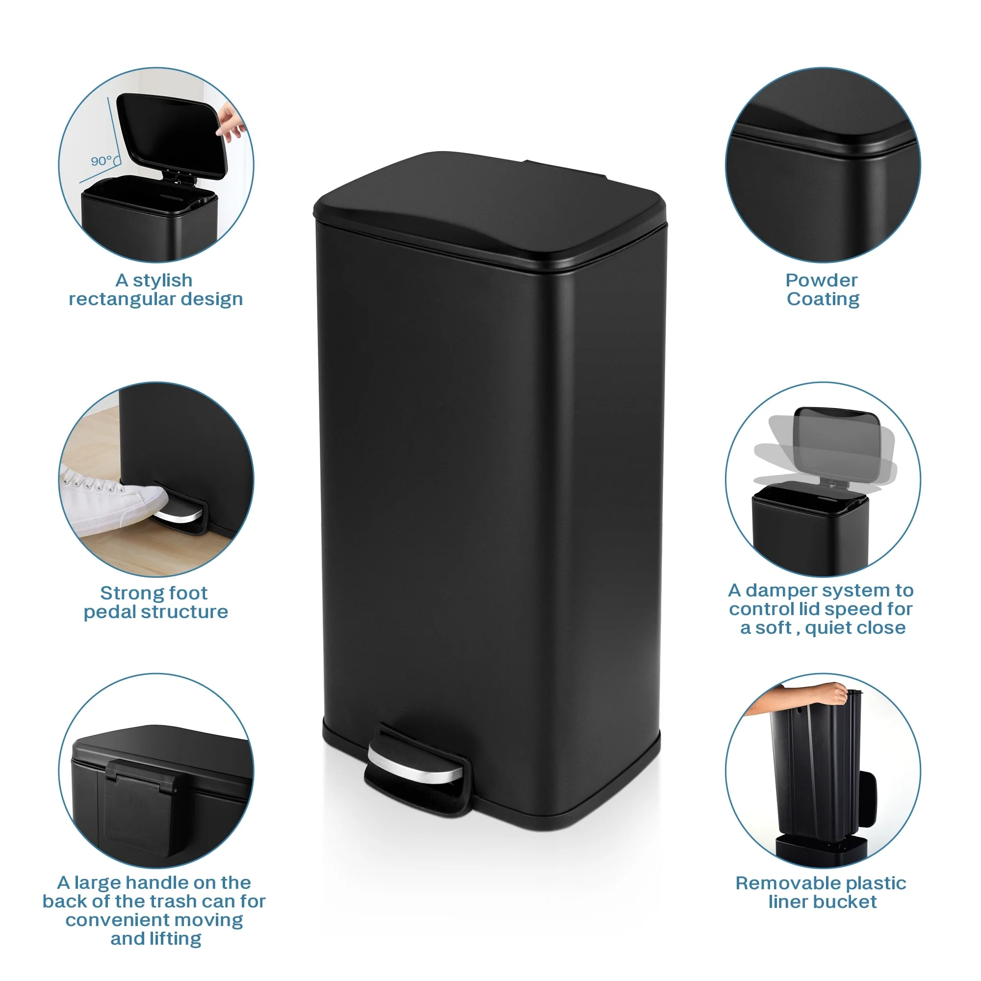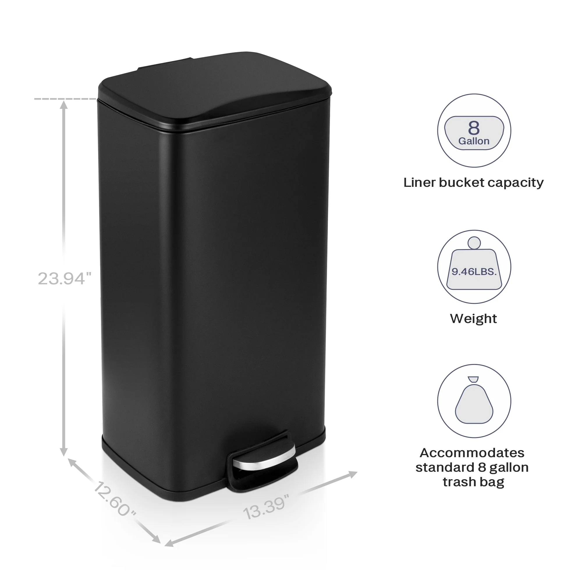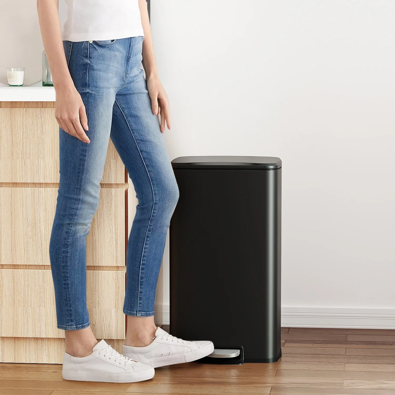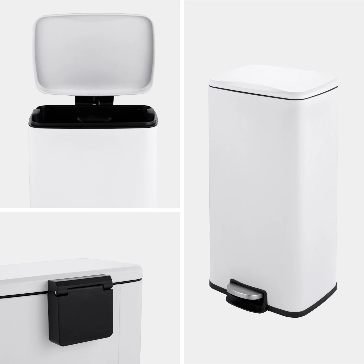 Innovaze 8 Gal./30 Liter Rectangular Matt White step-on Trash Can for kitchen