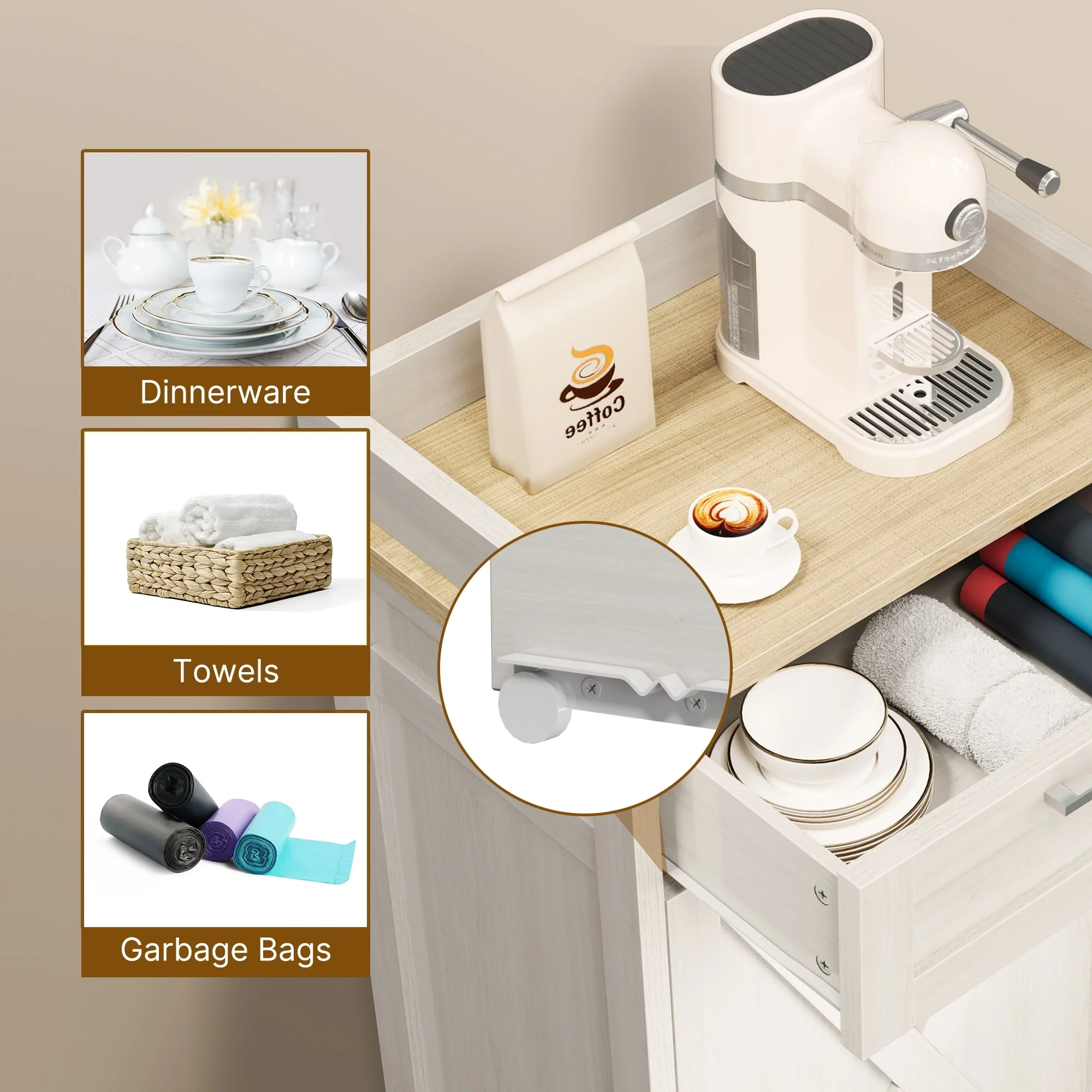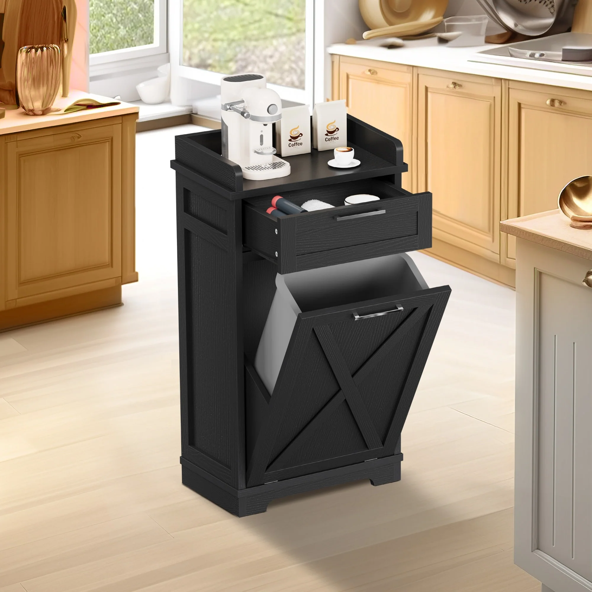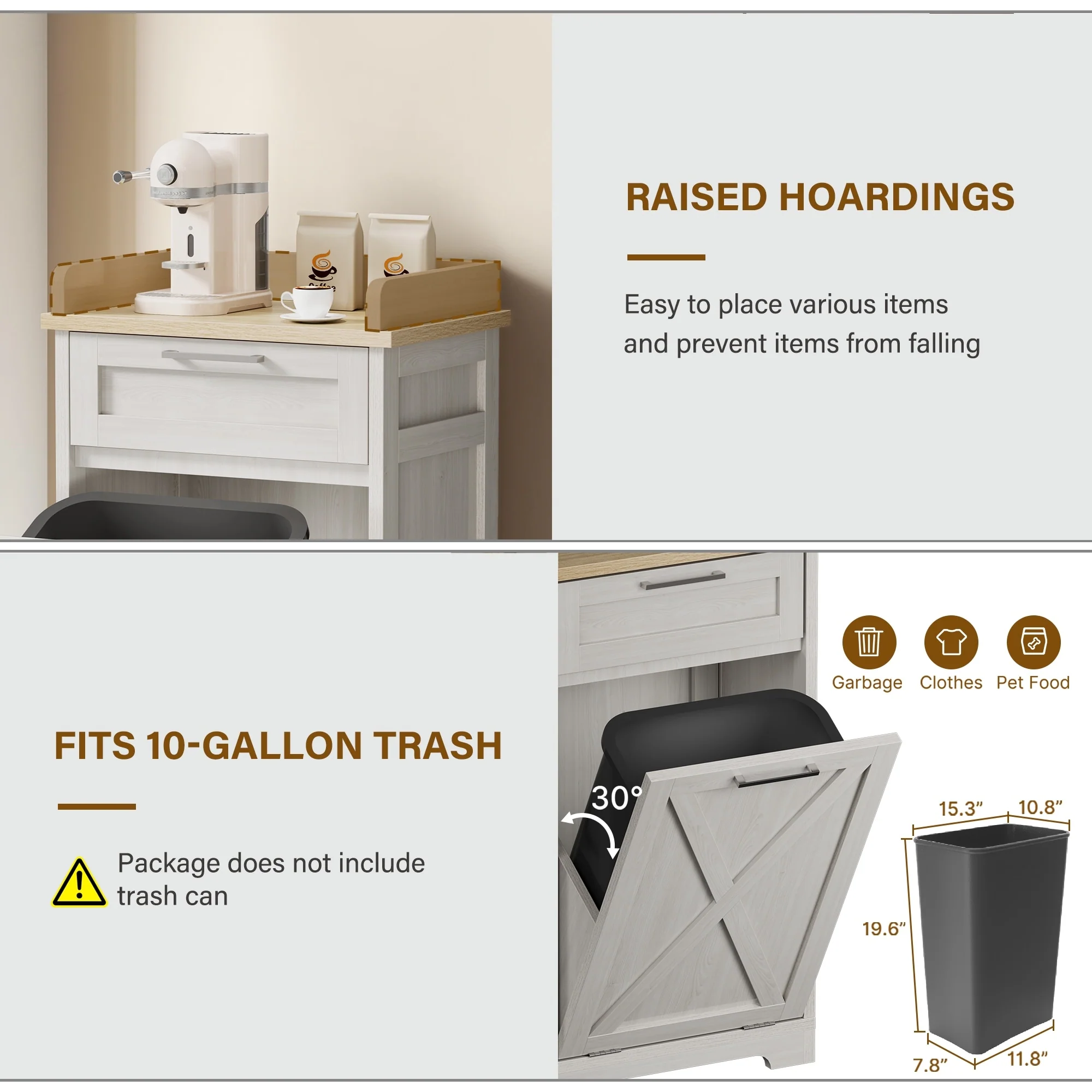 Kitchen Wooden Tilt Out Trash Can Cabinet Freestanding Trash Bin Holder