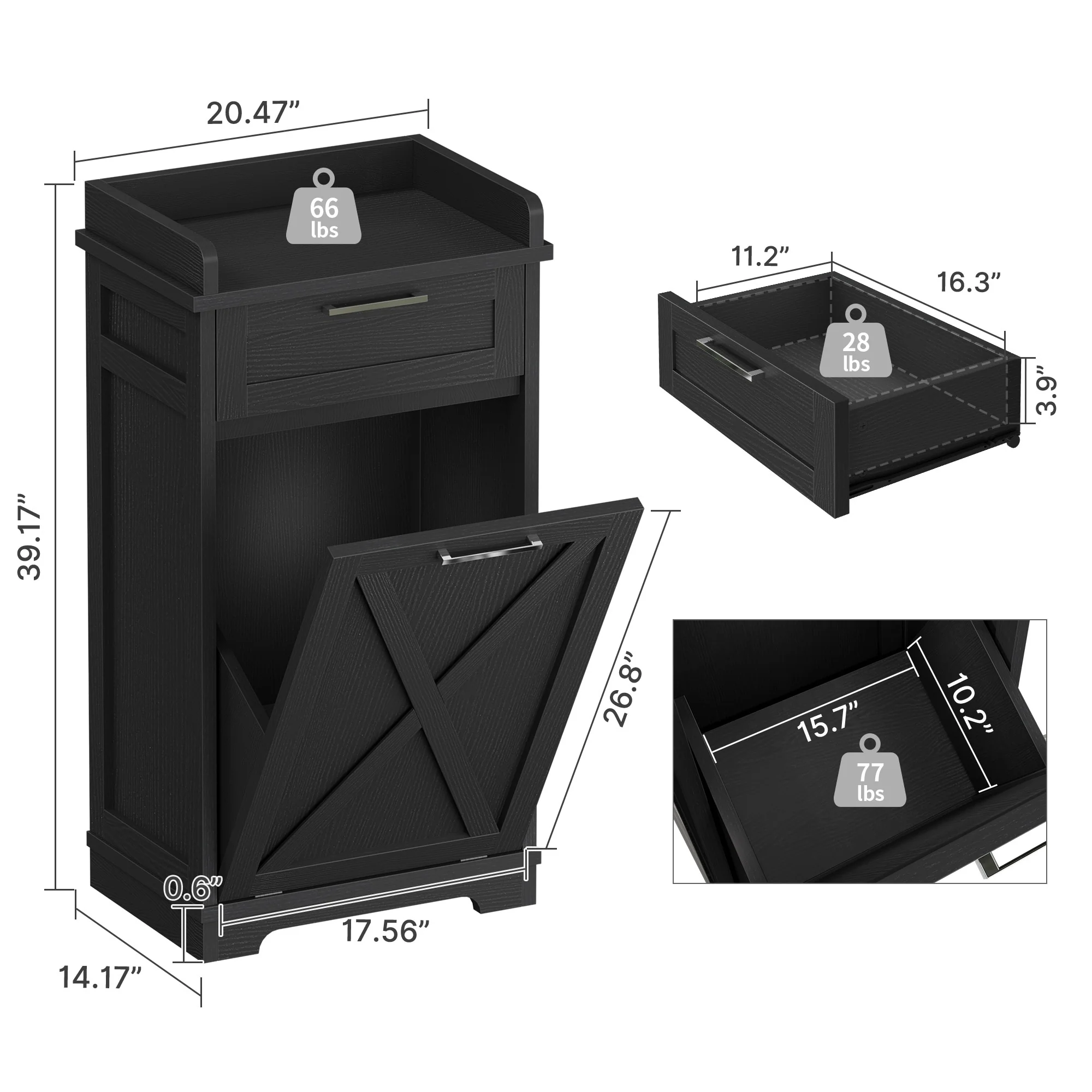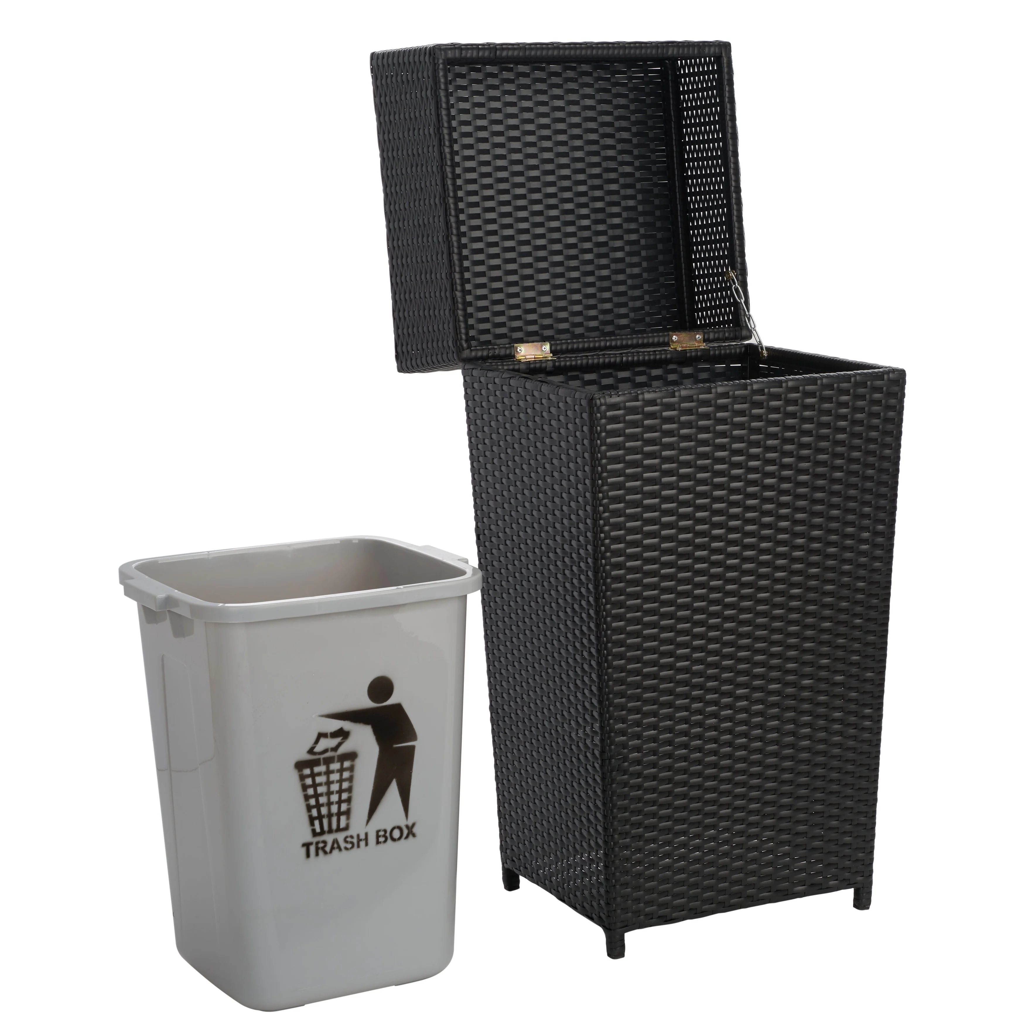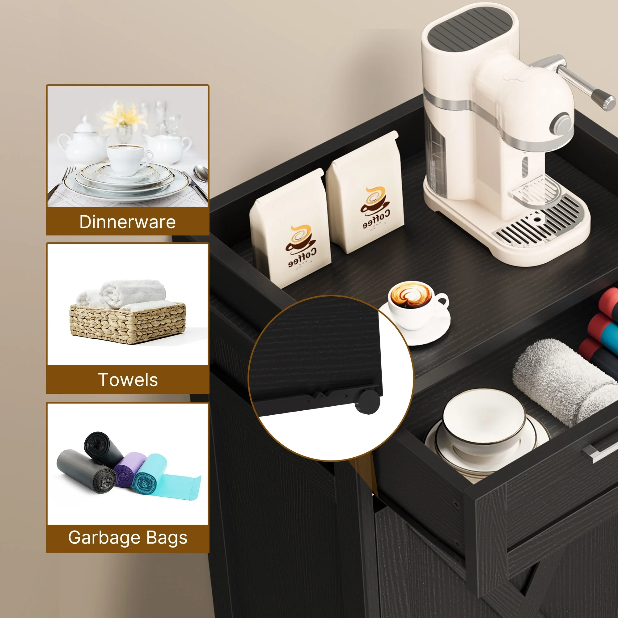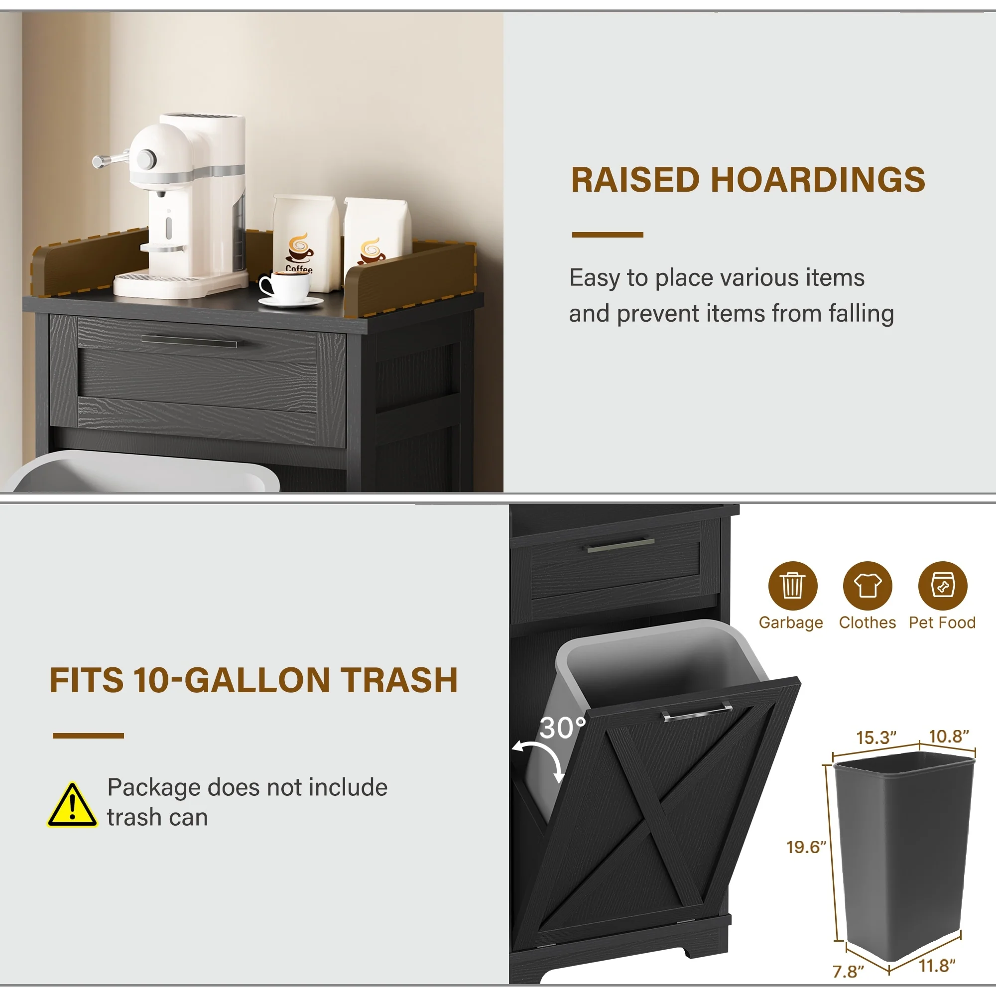 Kitchen Wooden Tilt Out Trash Can Cabinet Freestanding Trash Bin Holder