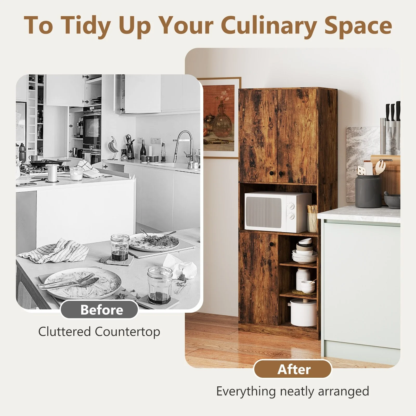 Costway Kitchen Pantry Storage Cabinet 65.5" Tall Modern Hutch Cabinet - See Details