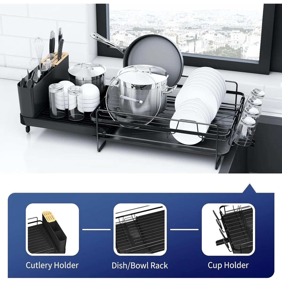 Counter Dish Drying Rack with Utensil Holder